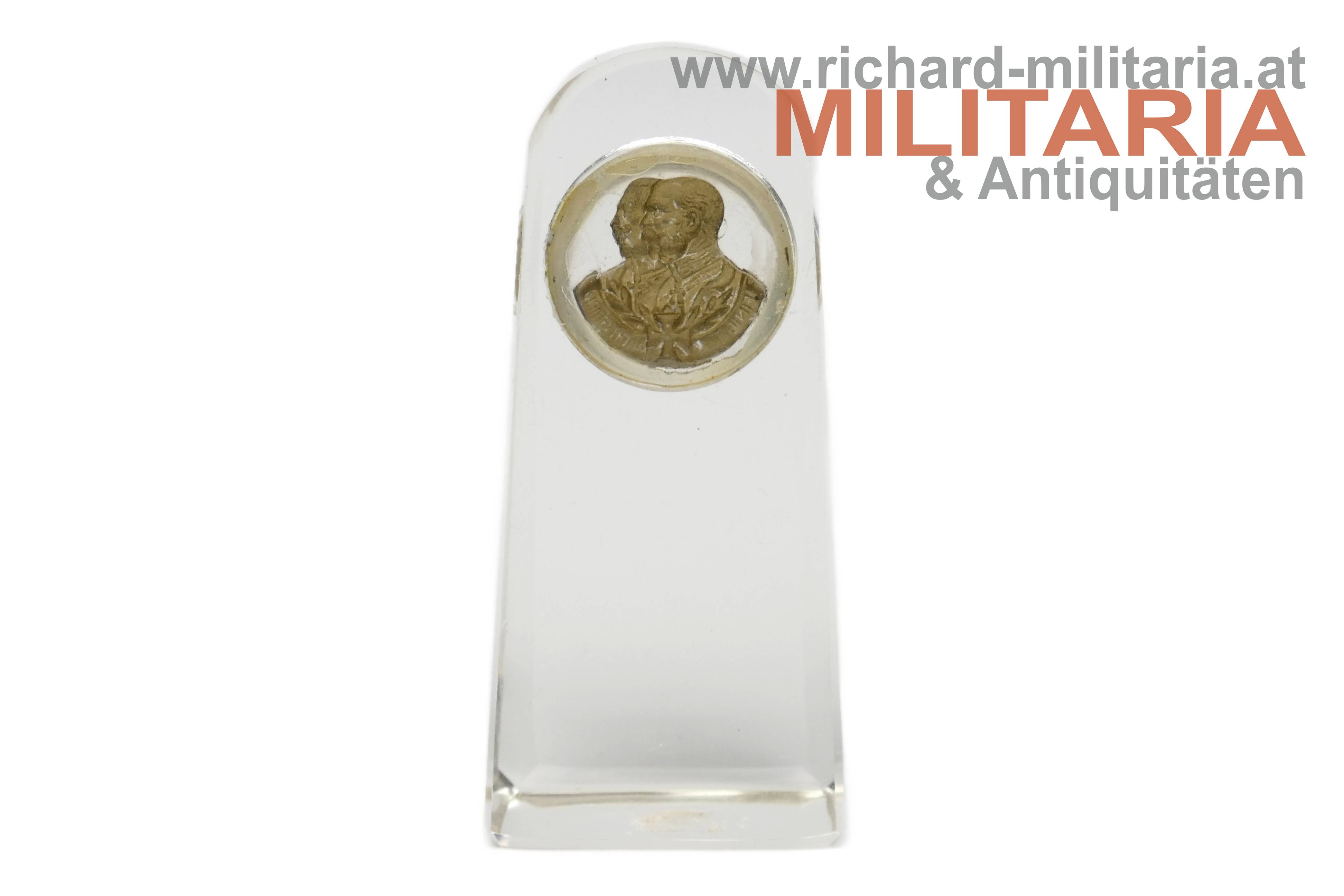 k.u.k. patriotische Glassäule mit Darstellung von Kaiser Franz Josef und Kaiser Wilhelm; vergoldet;