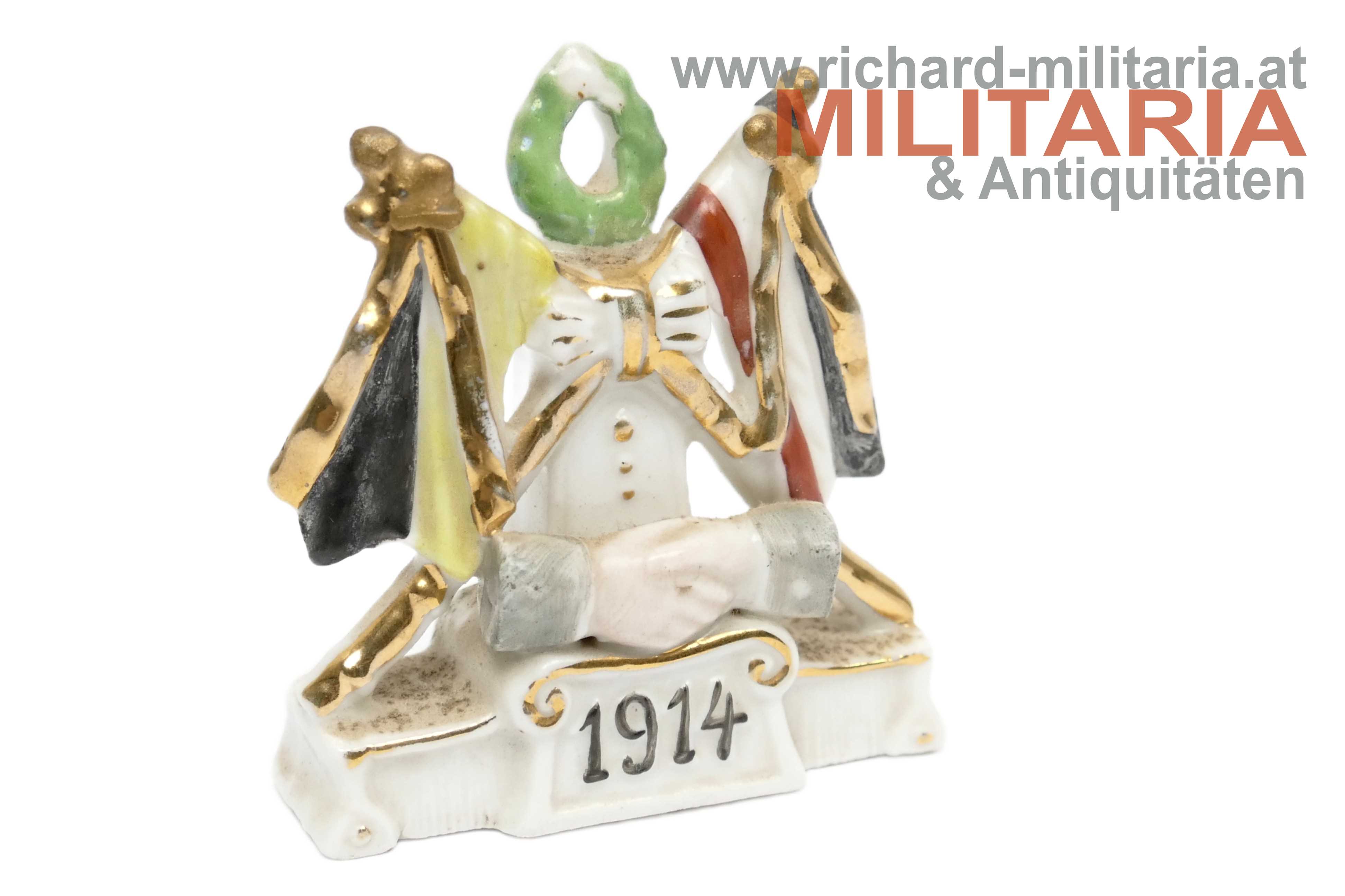 k.u.k. patriotische Porzellandekoration - Deutschland und Österreich; Porzellanteilweise farbig; deutschland und Österreich reichen sich symbolisch die Hand; Jahreszahl "1914"; revers die Nummer" 7926"; etwas angeschmutz - unbeschädigt;