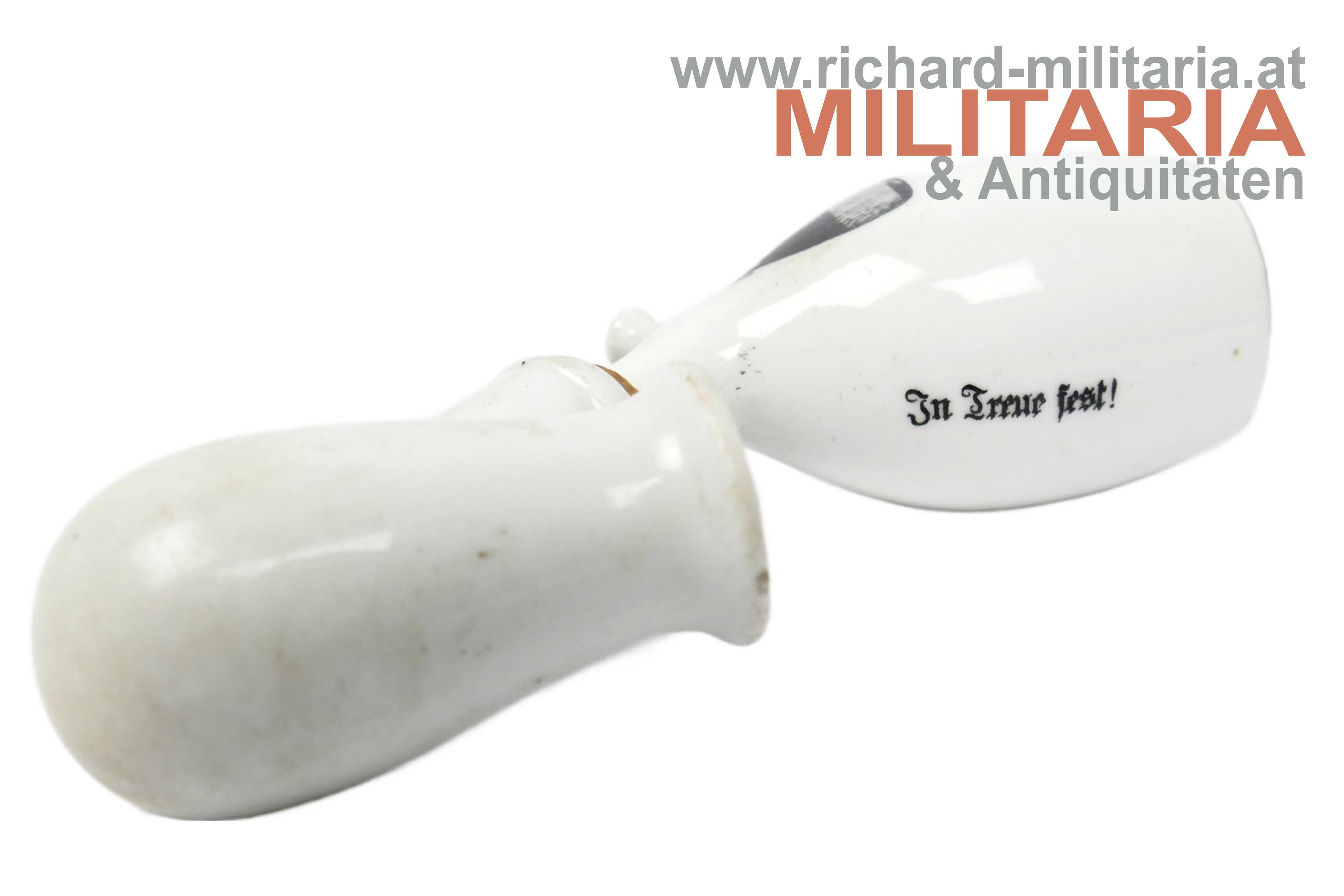 k.u.k. patriotische Reservistenpfeife mit einer Abbildung von Kaiser Karl und Kaiser Wilhelm; außerdem beschriftet mit "In Treue fest!"; unbeschädigt; SELTEN!