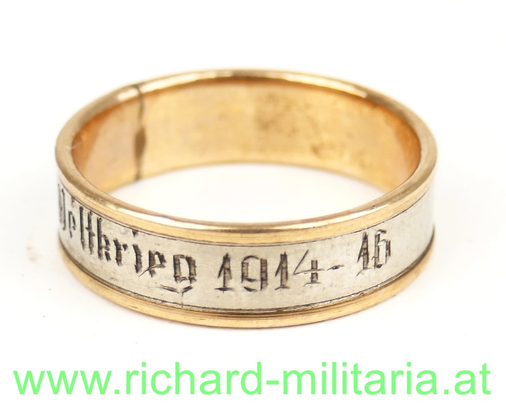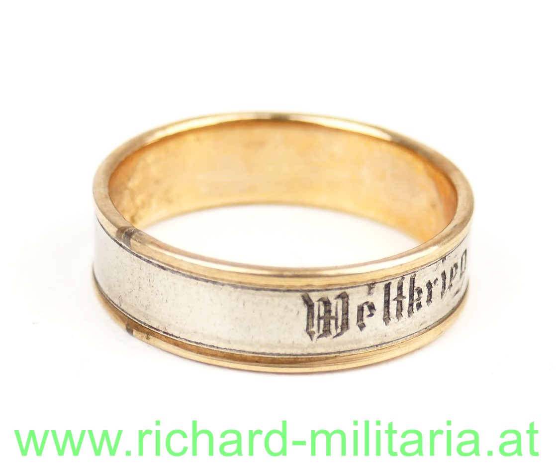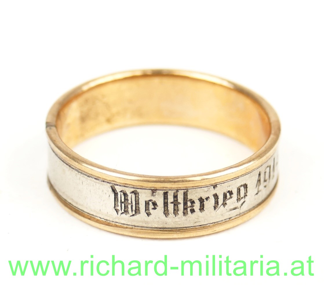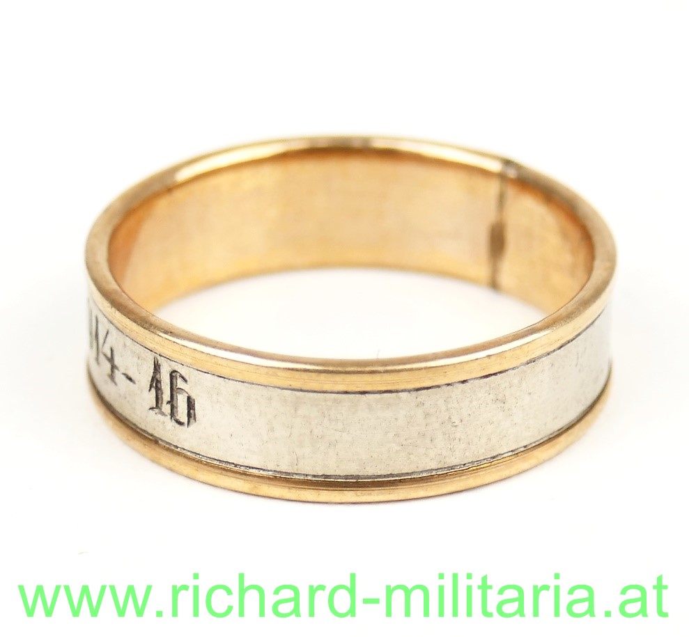 k.u.k. patriotischer Ring - "Weltkrieg 1914 -16", Innendurchmesser: 21 mm, Ring aus Eisen mit GOLD-Einlage,