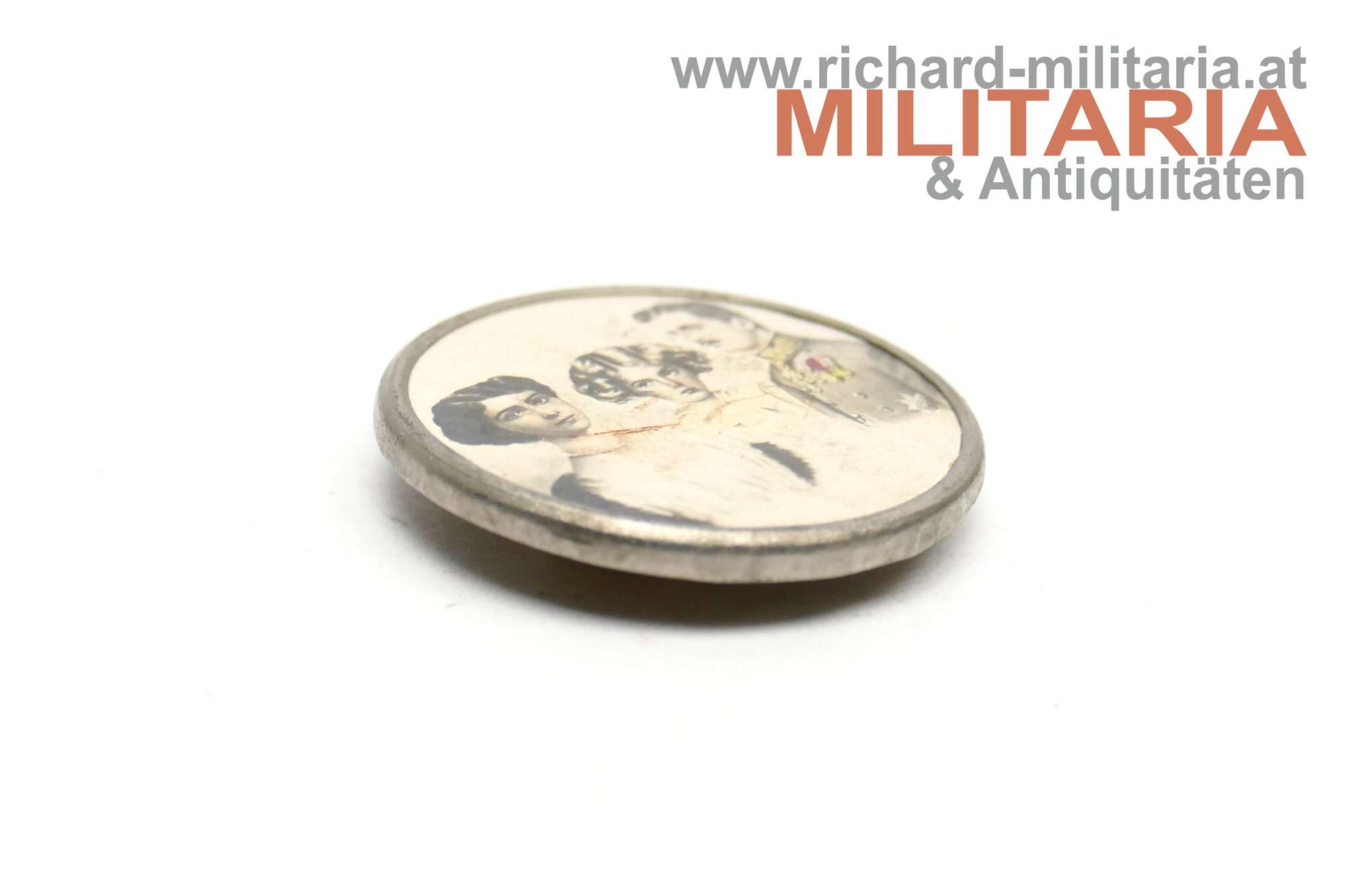 k.u.k. patriotischer Anstecker - Kaiser Karl - Kaiserin Zita - Kronprinz Otto; Kaiser Karl teilweise koloriert;eingefasst in einen Eisenrahmen; revers mit Tragenadel;