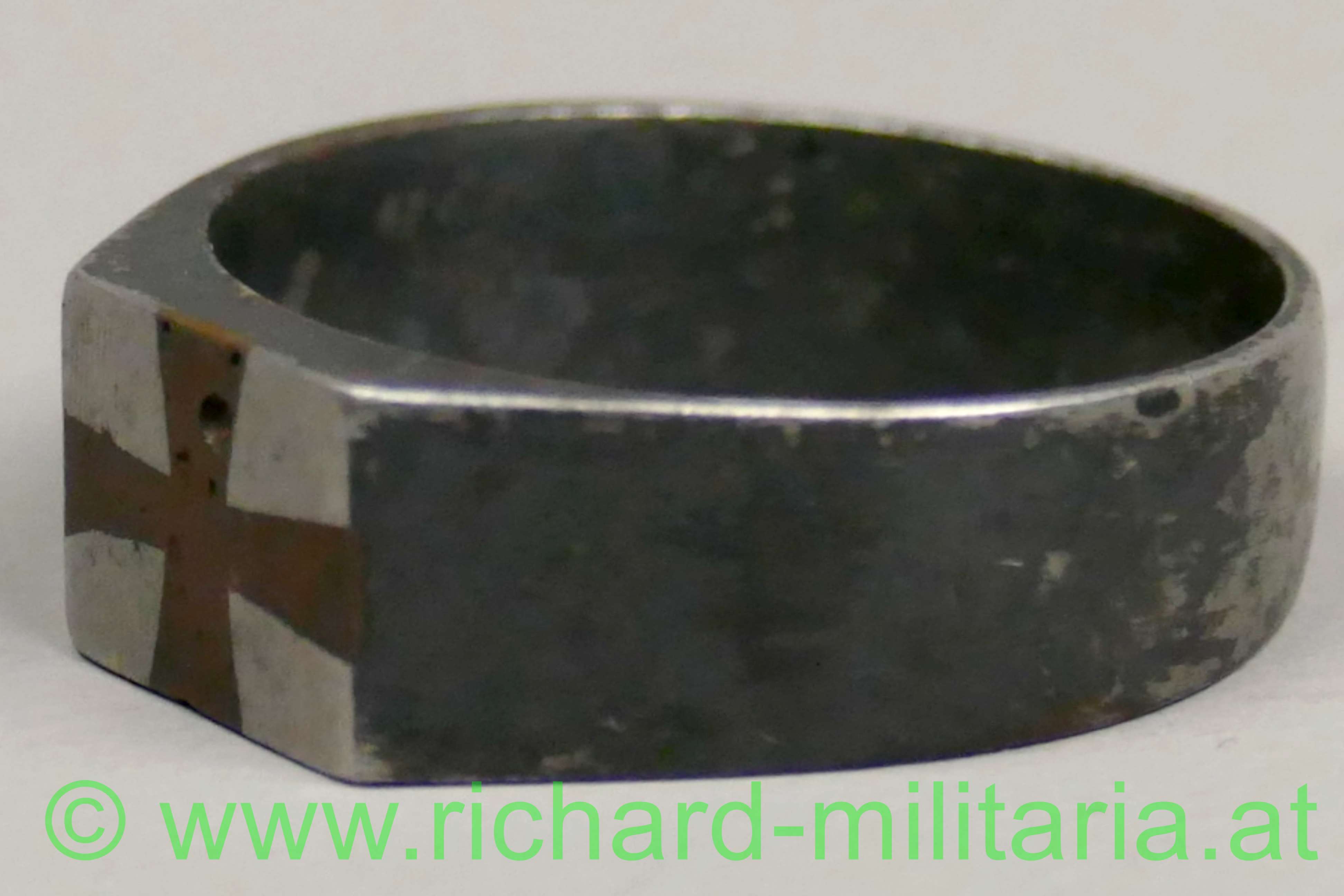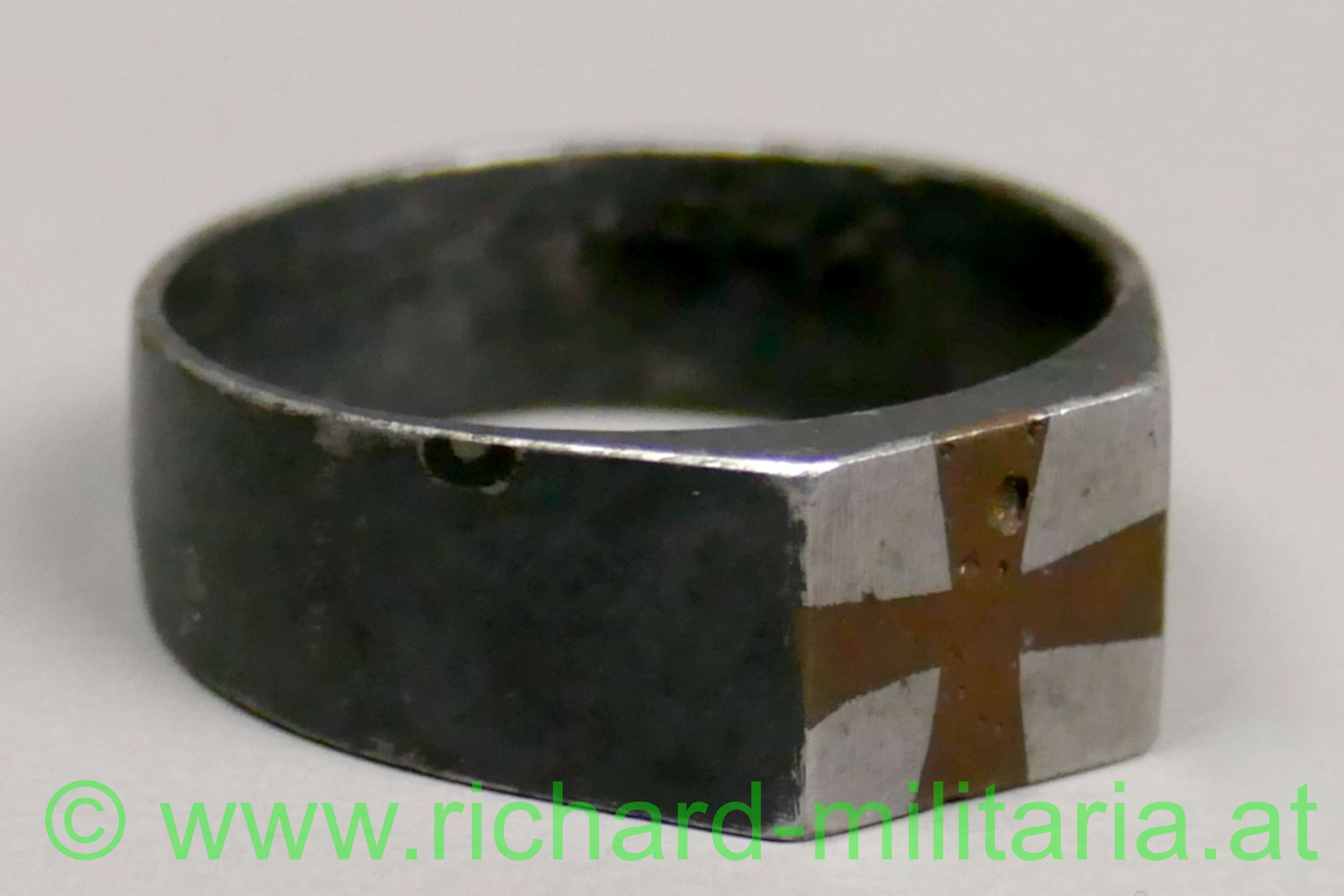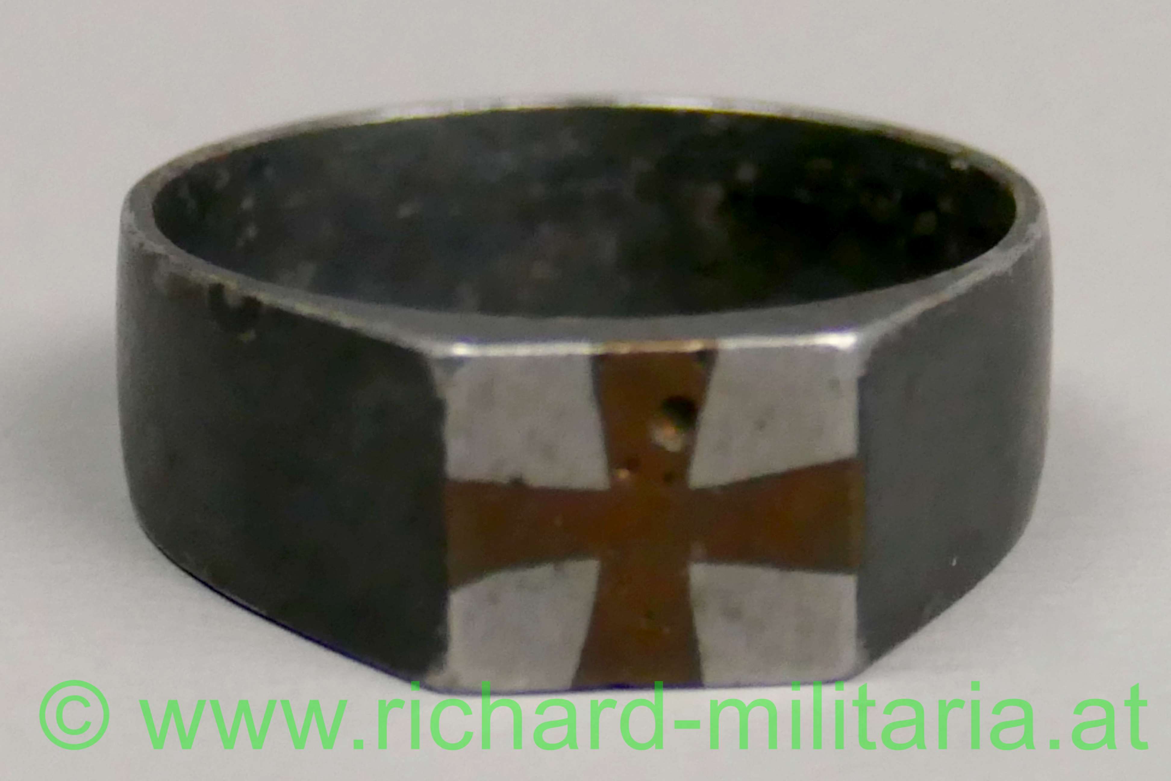 k.u.k. patriotischer Ring, Eisen geschwärzt, frontseitig eingelassenes Kreuz aus Kupfer, Innendurchmesser ca.: 19 mm;