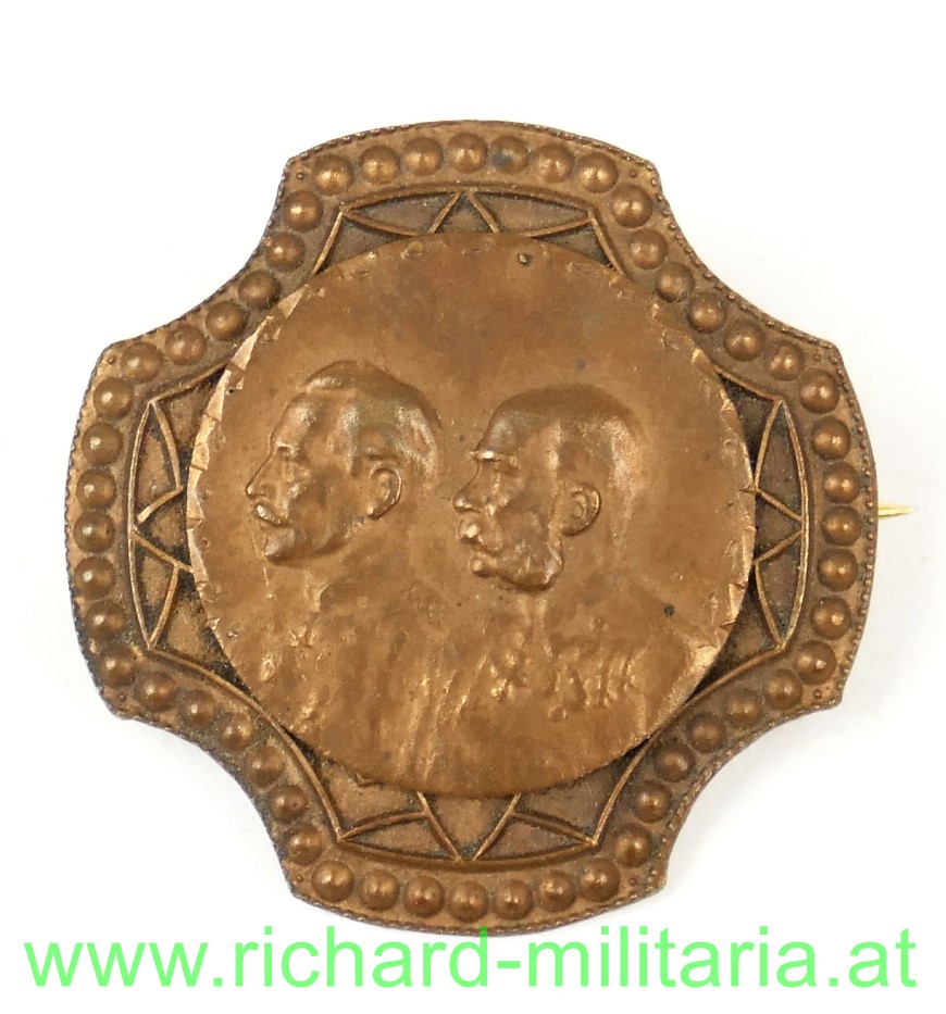 k.u.k. patriotisches Abzeichen - Kaiser Franz Josef u. Wilhelm; Bronze, originales Nadelsystem;
