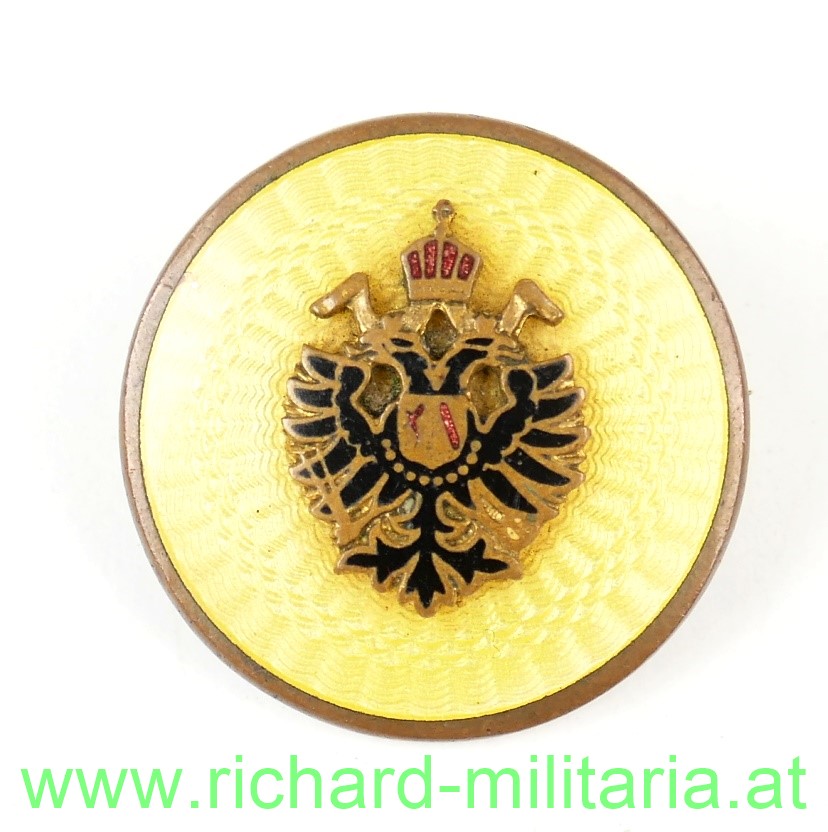 k.u.k. patriotisches Abzeichen - emailliert mit aufgesetztem emaillierten Doppeladler, Email unbeschädigt; originales Nadelsystem;