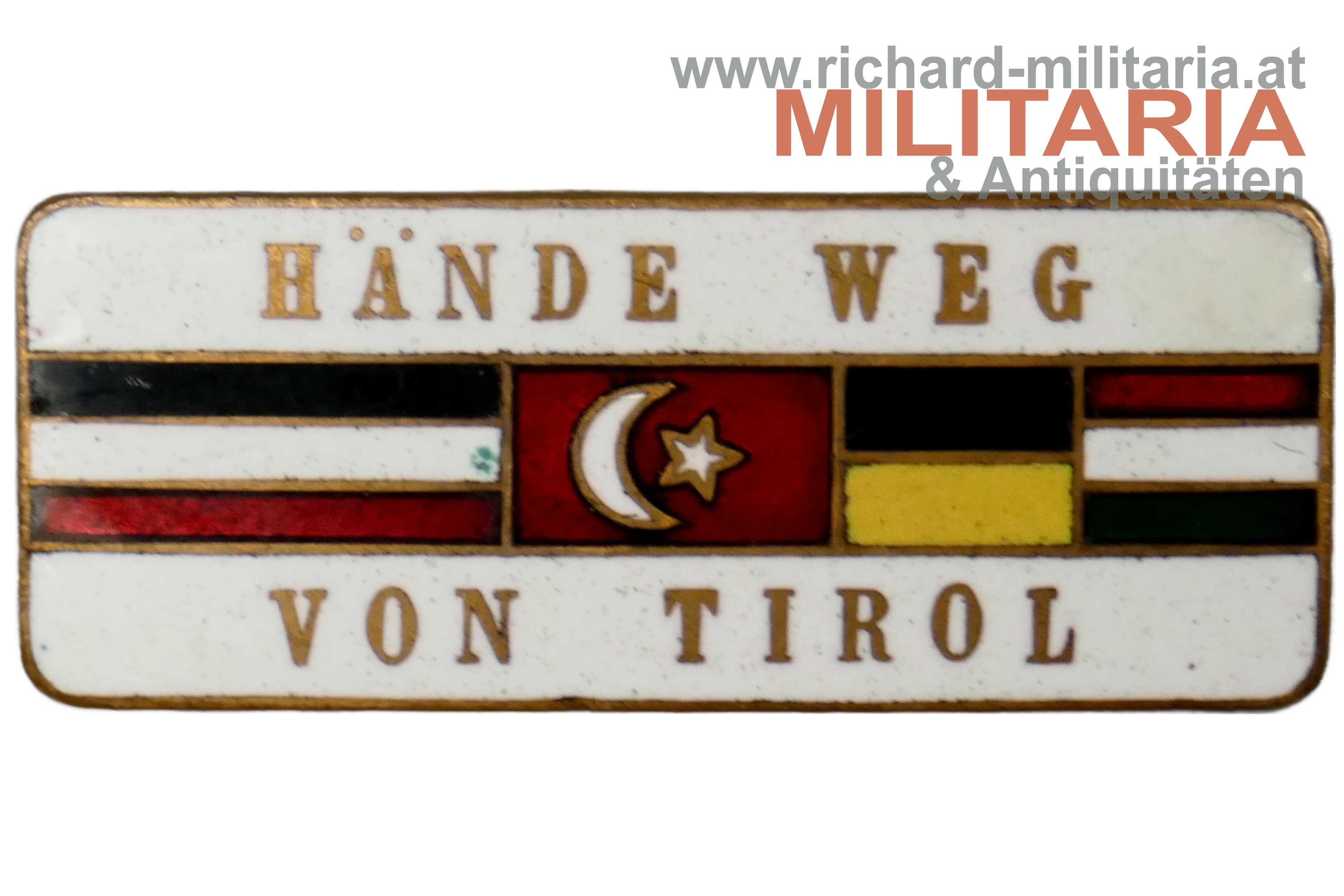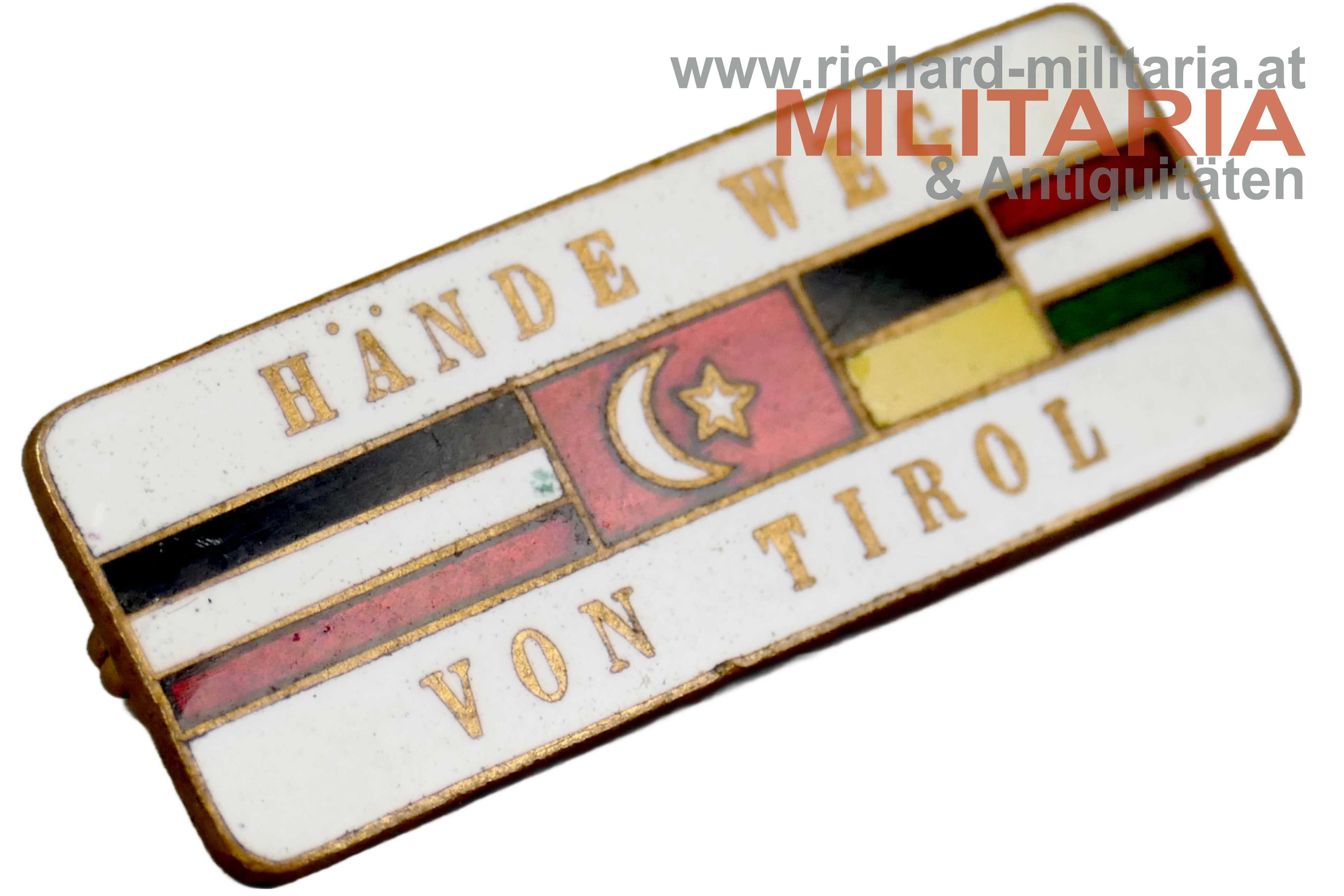 k.u.k. patriotisches Abzeichen "Hände weg von Tirol" - VARIANTE IN WEISS