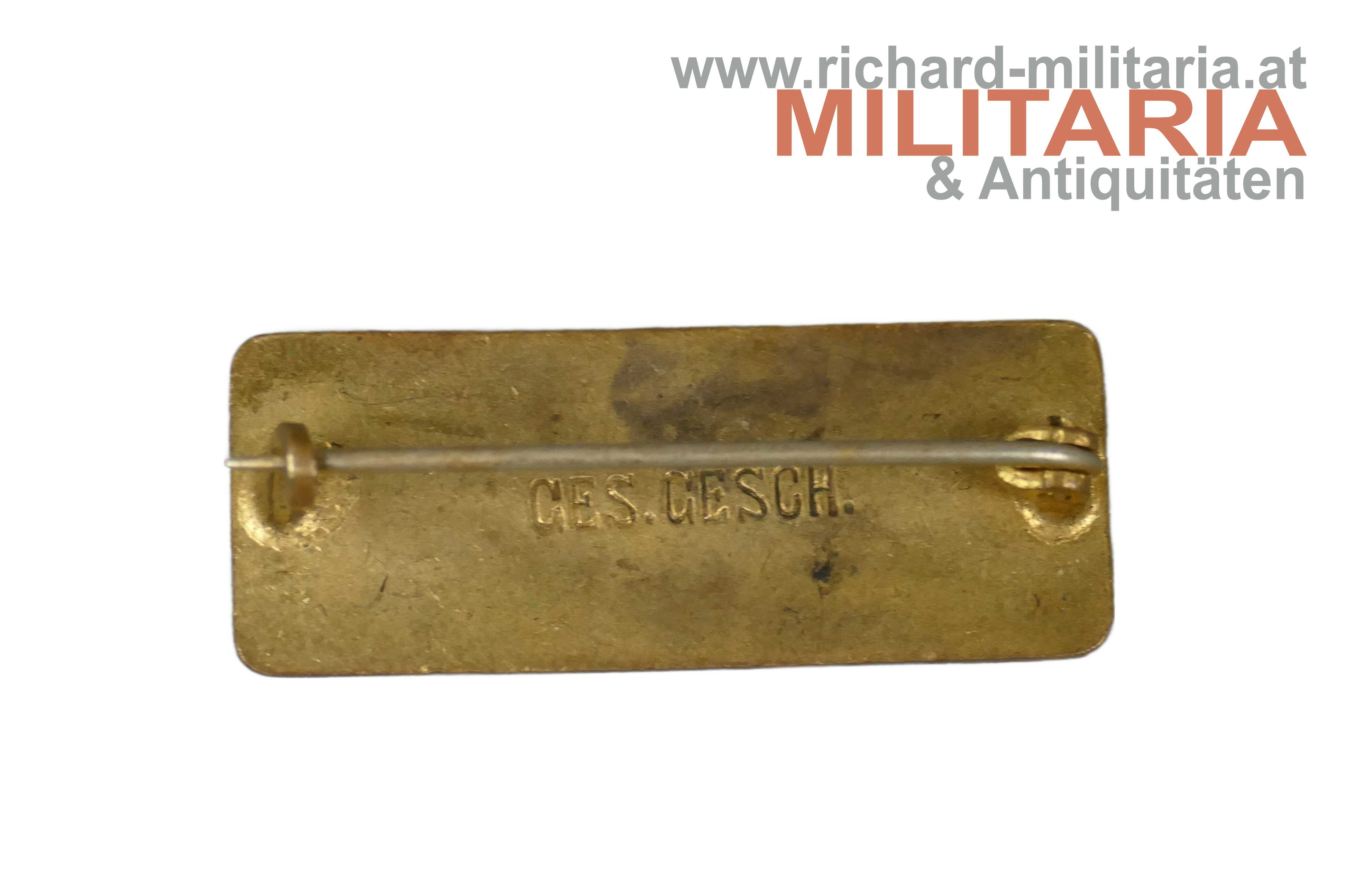 k.u.k. patriotisches Abzeichen "Hände weg von Tirol" - seltene Variante mit weißem Email; Tombak vergoldet weiß emailliert - kleine Ausbesserung im weißen Email, Rückseite: "Ges. Gesch." mit originalem Nadelsystem;