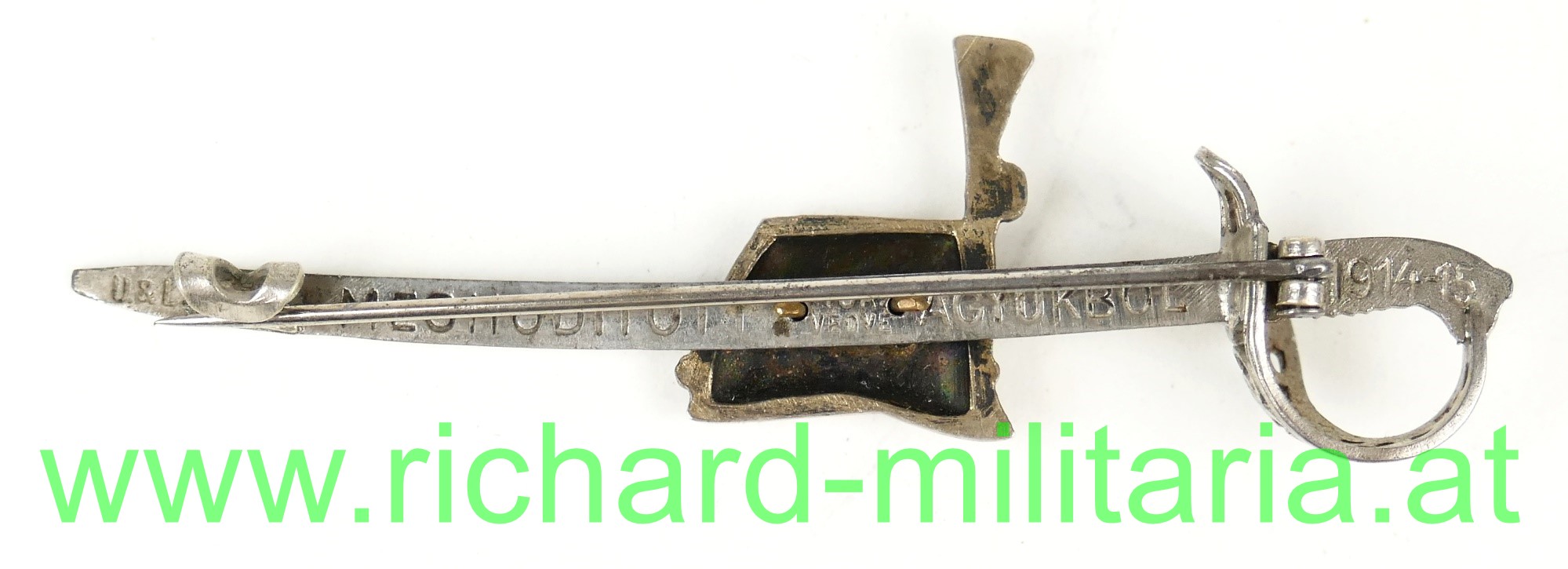 k.u.k. patriotisches Abzeichen HUSAREN, Eisen, mehrteilig; rückseitig "MEGHODITOTT TÖR VEDVE AGYÜKBOL 1914-15"; Breite 7,4 cm