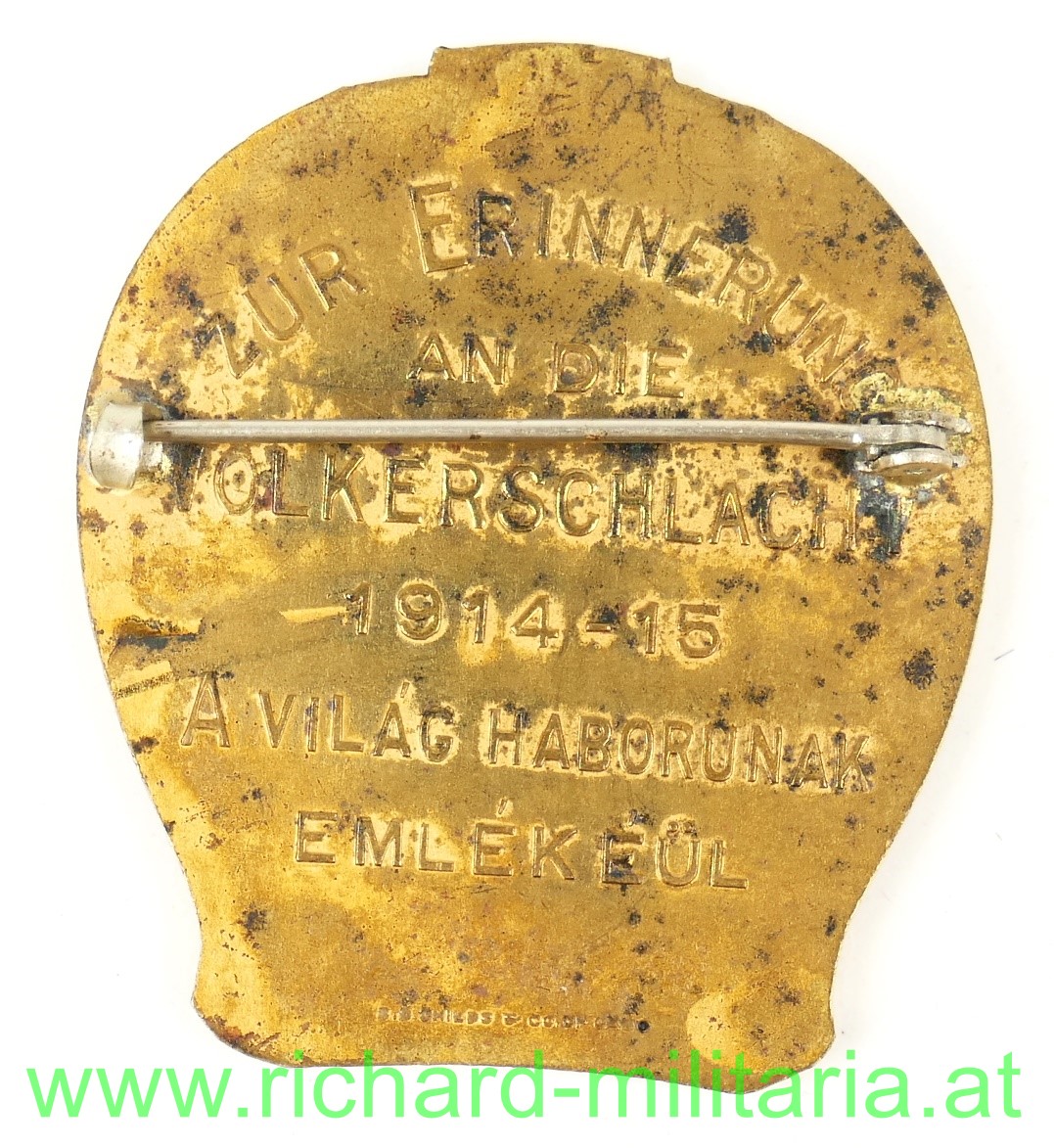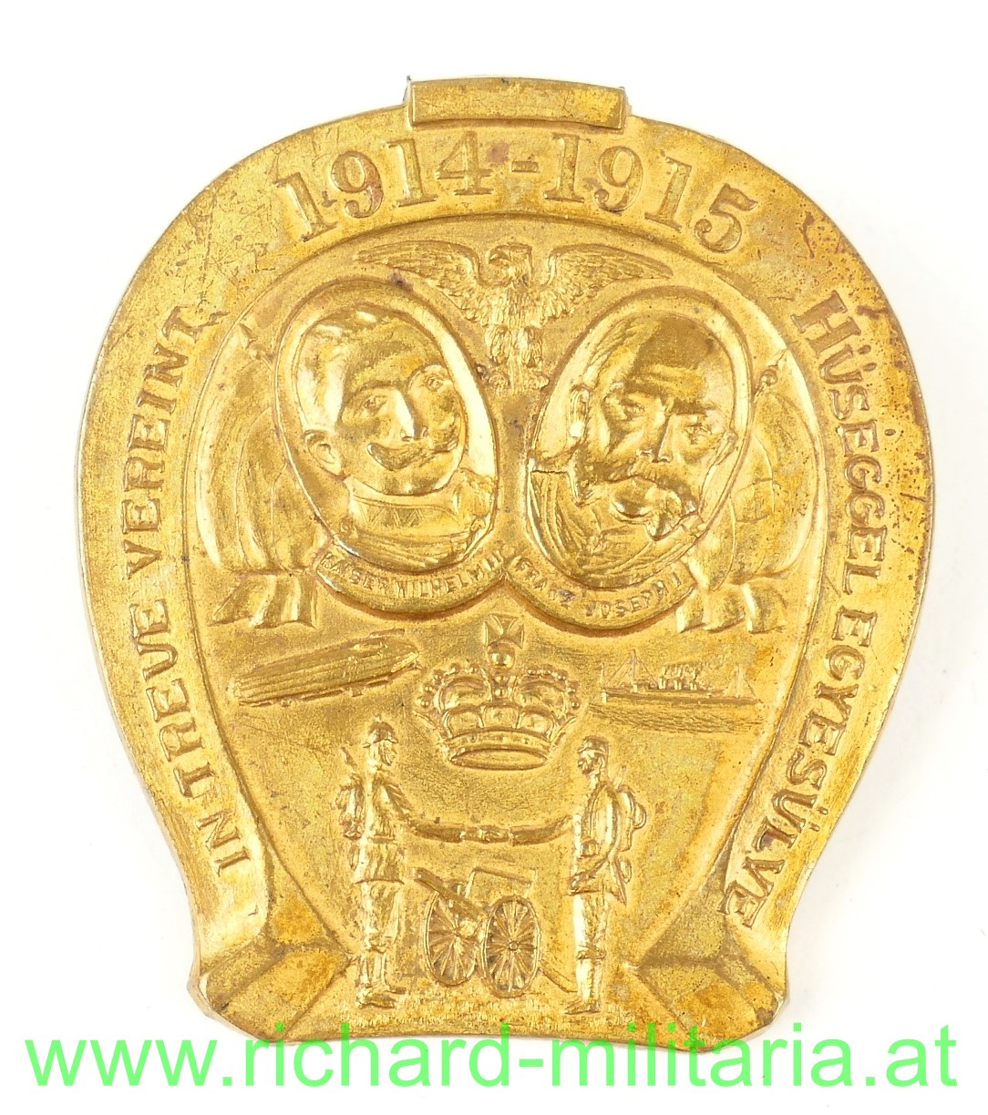 k.u.k. patriotisches Abzeichen - In Treue vereint 1914-1915, Tombak vergoldet; originales Nadelsystem, Rückseite "beschriftet": "Zur Erinnerung an die Völkerschlacht 1914-1915" - ebenso auf ungarisch;
