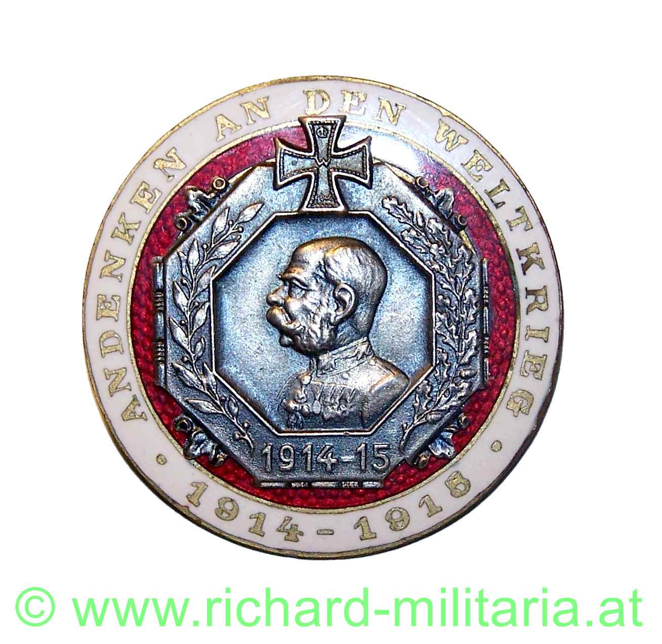 k.u.k. patriotisches Abzeichen Kaiser Franz Josef - Andenken an den Weltkrieg 1914-1915