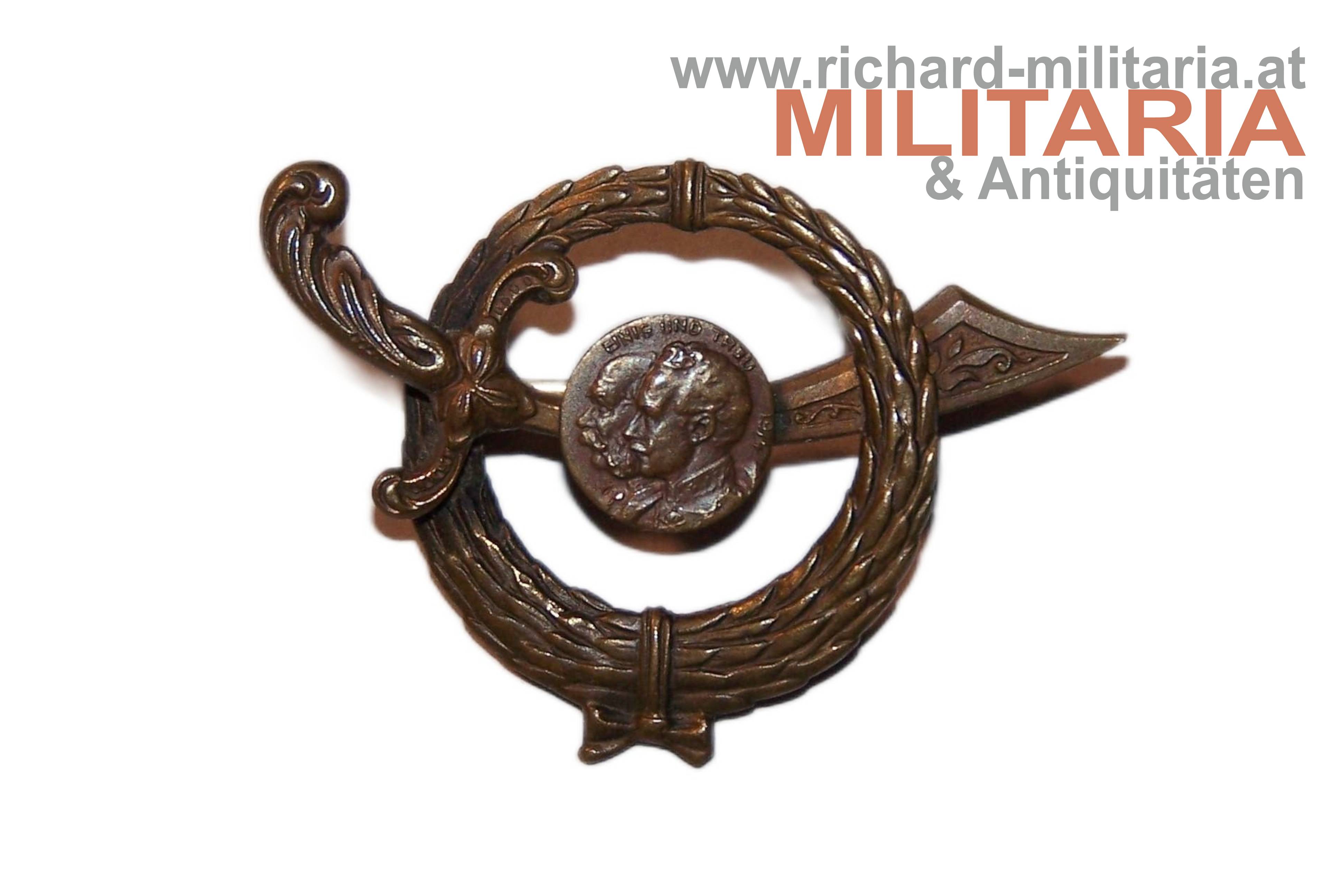 k.u.k. patriotisches Abzeichen - Kaiser Franz Joseph & Wilhelm "Einig und Treu" - osmanischer Kilidsch mit Lorbeerkranz; Tombak; originales Nadelsystem;