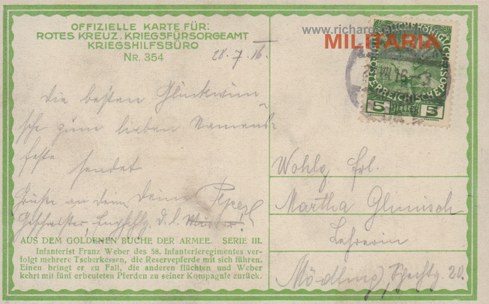 k.u.k. PK "Infantrist Weber - IR 58"; Nr. 354