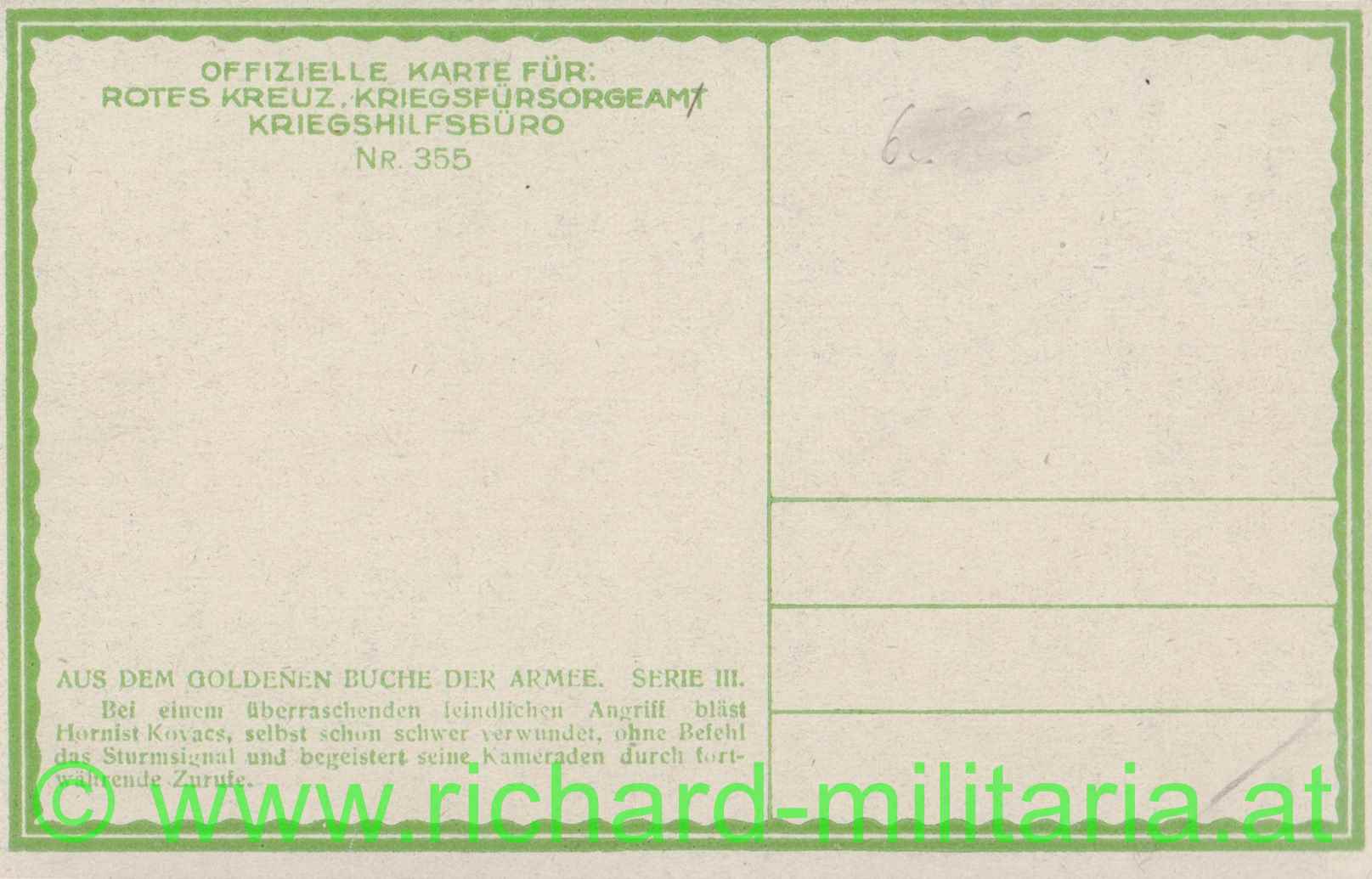 k.u.k. PK - Rotes Kreuz, Kriegsfürsorgeamt, Kriegshilfsbüro Nr. 355