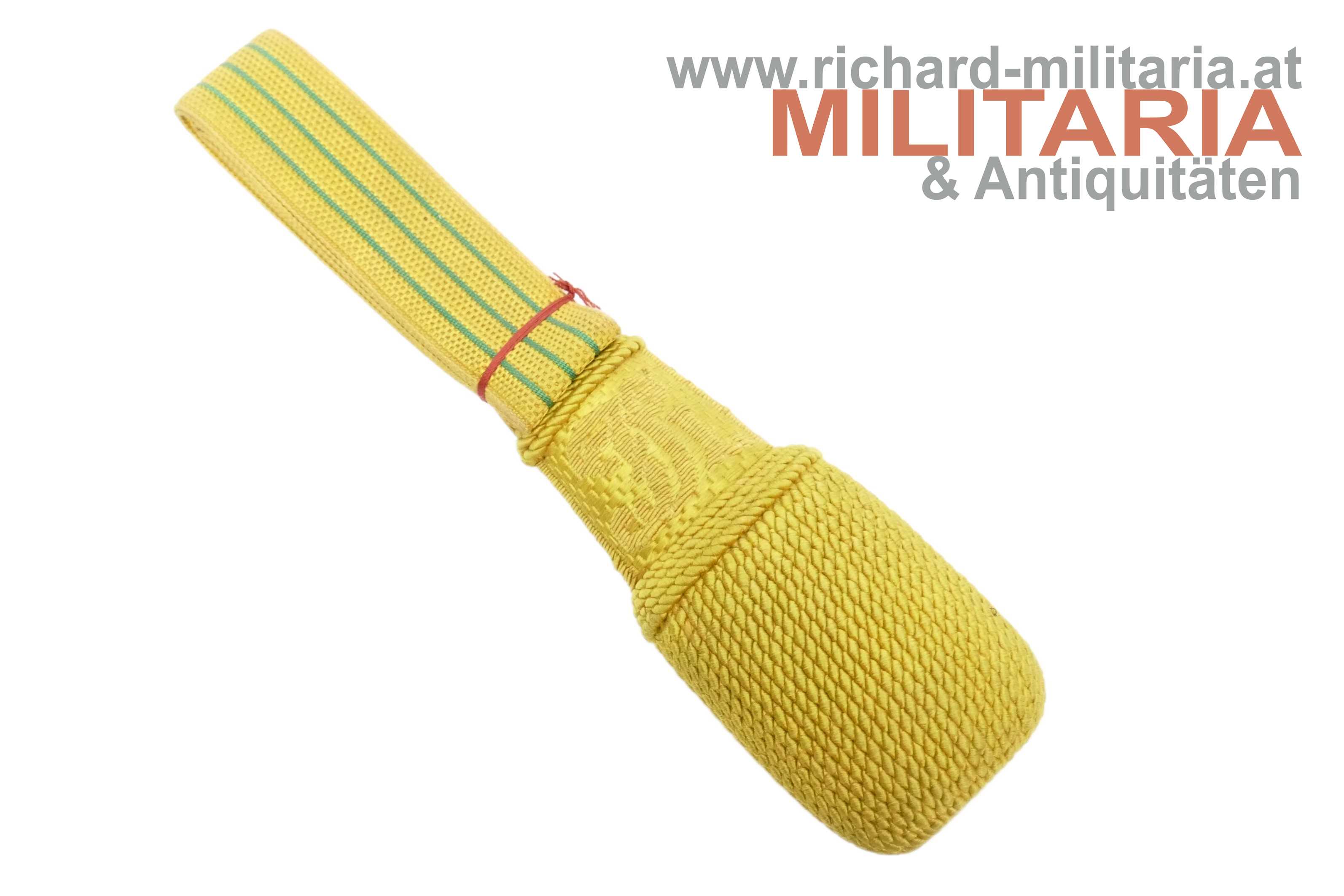 k.u.k. geschlossenes Portepee für Unteroffiziere; VARIANTE mit 3 grünen Durchzügen (Landwehr?); ungetragen und noch original zusammengebunden! Große Ausführung; leicht verstaubt