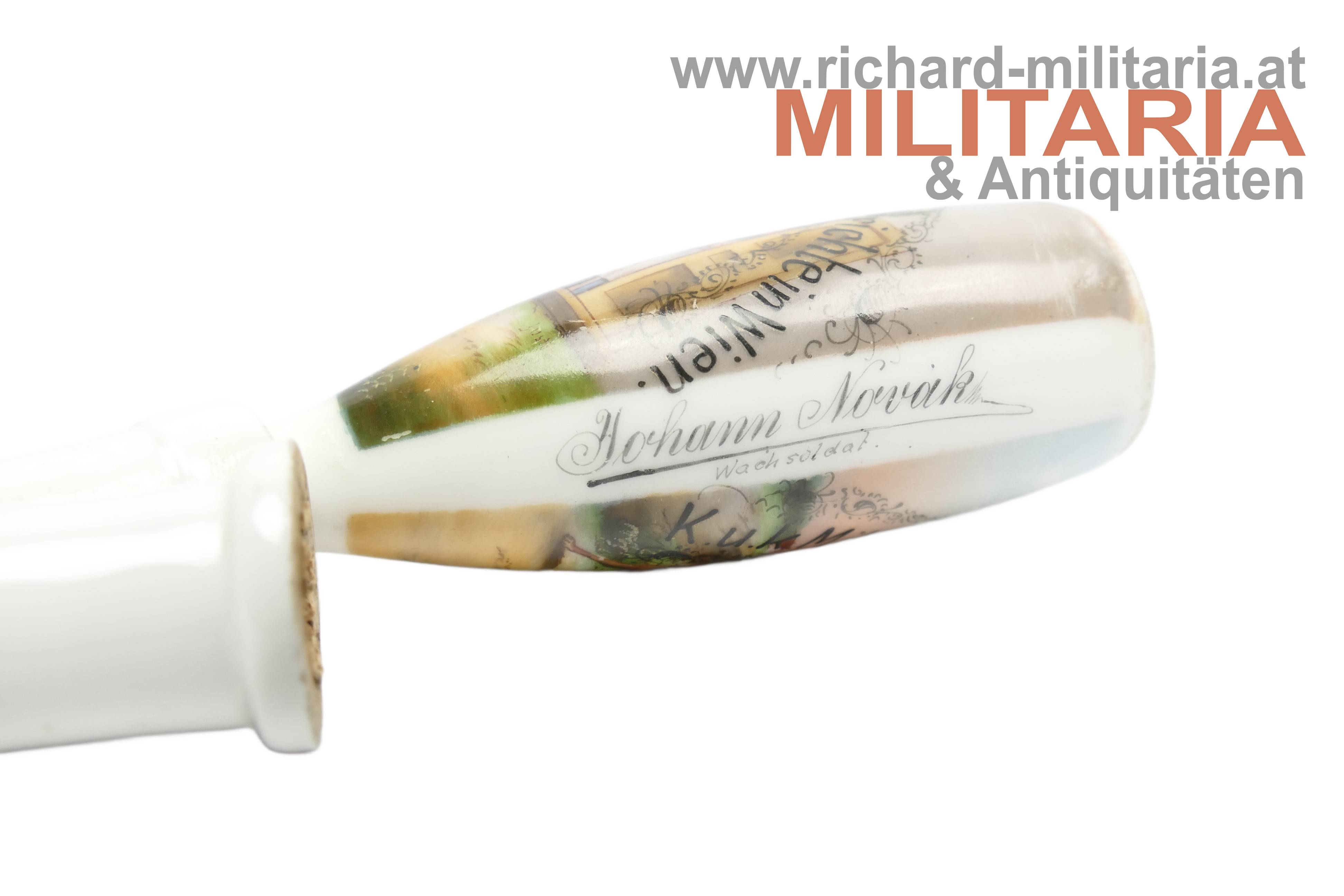 k.u.k. Reservistenpfeife des Johann Novak, Wachsoldat beim Militärwachkorps für die Zivilgerichte in Wien; 1909; neutral gehaltener Wassersack; ohne Holzstiel;