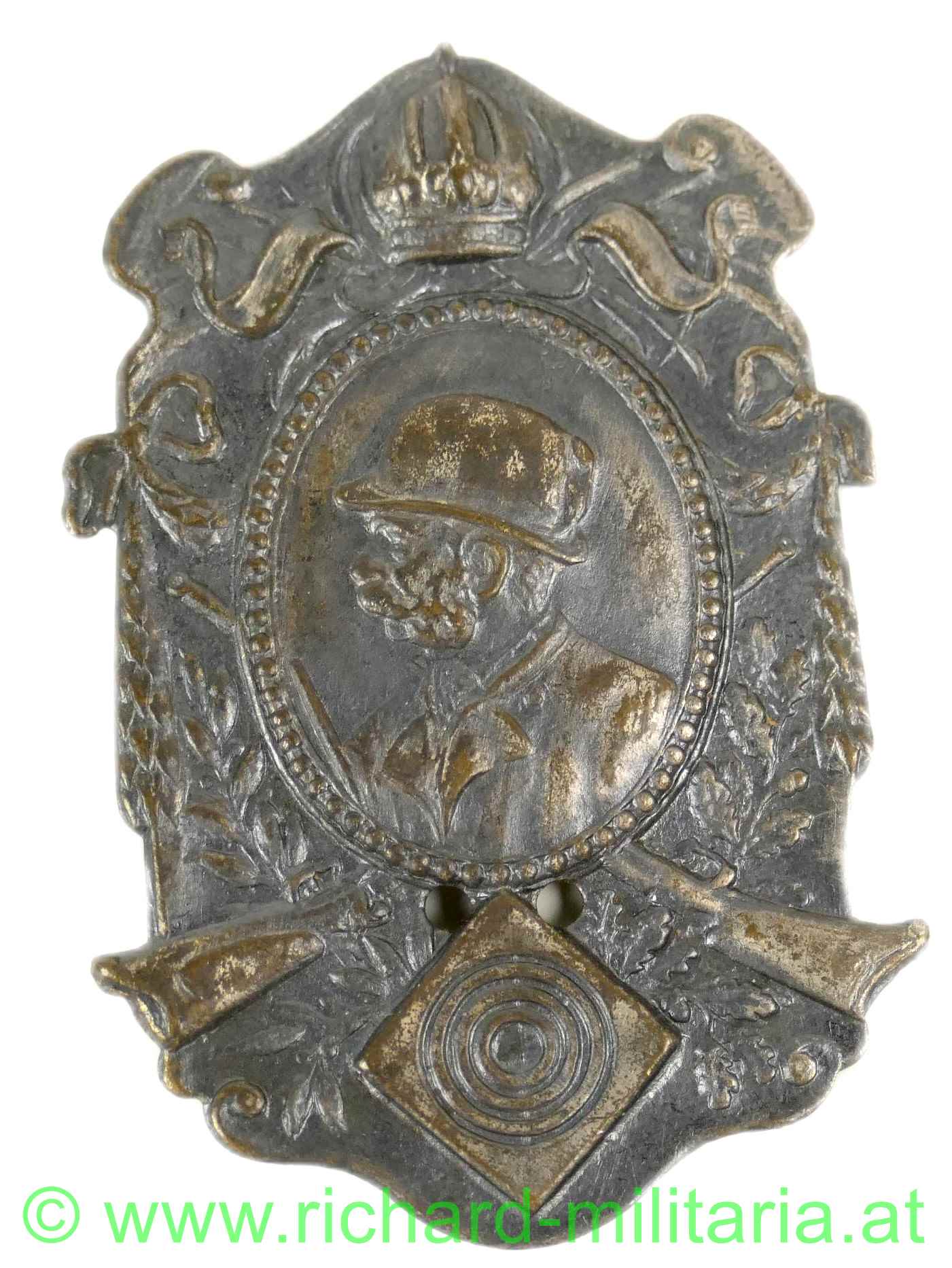 k.u.k. Schützenabzeichen - Franz Josef, Tombak versilbert - 2 Bohrungen und der Rückseite 2 kurze Klammern,