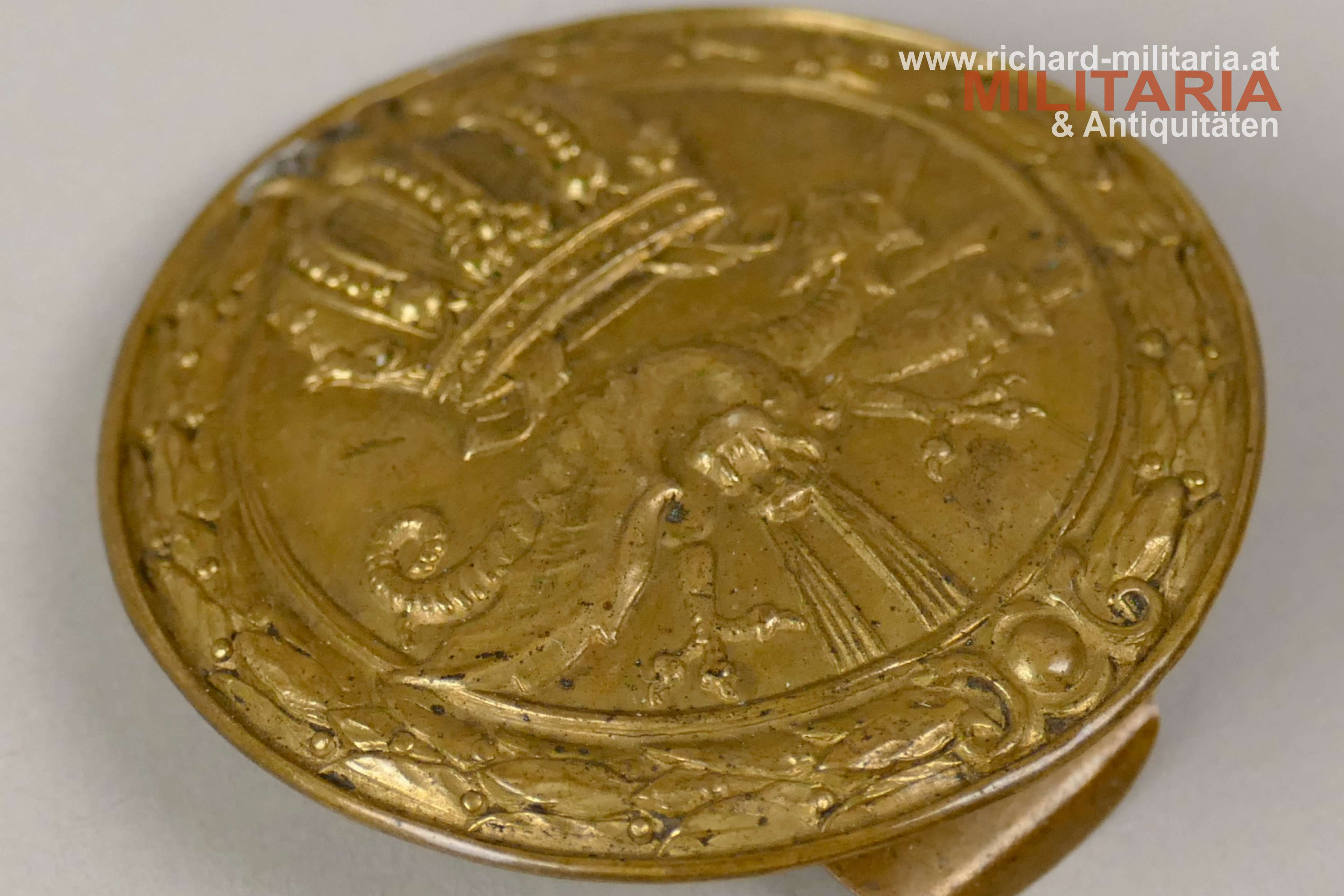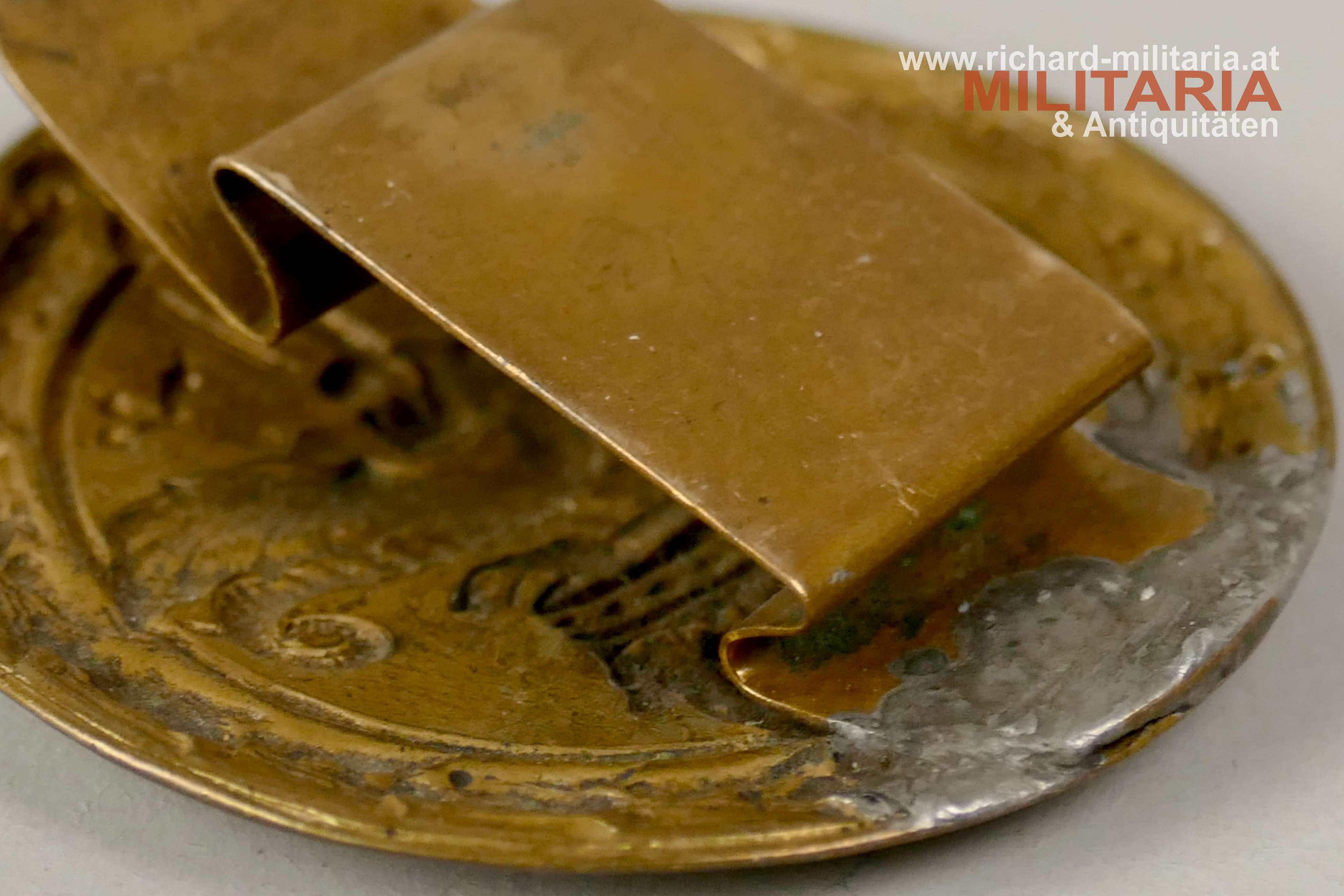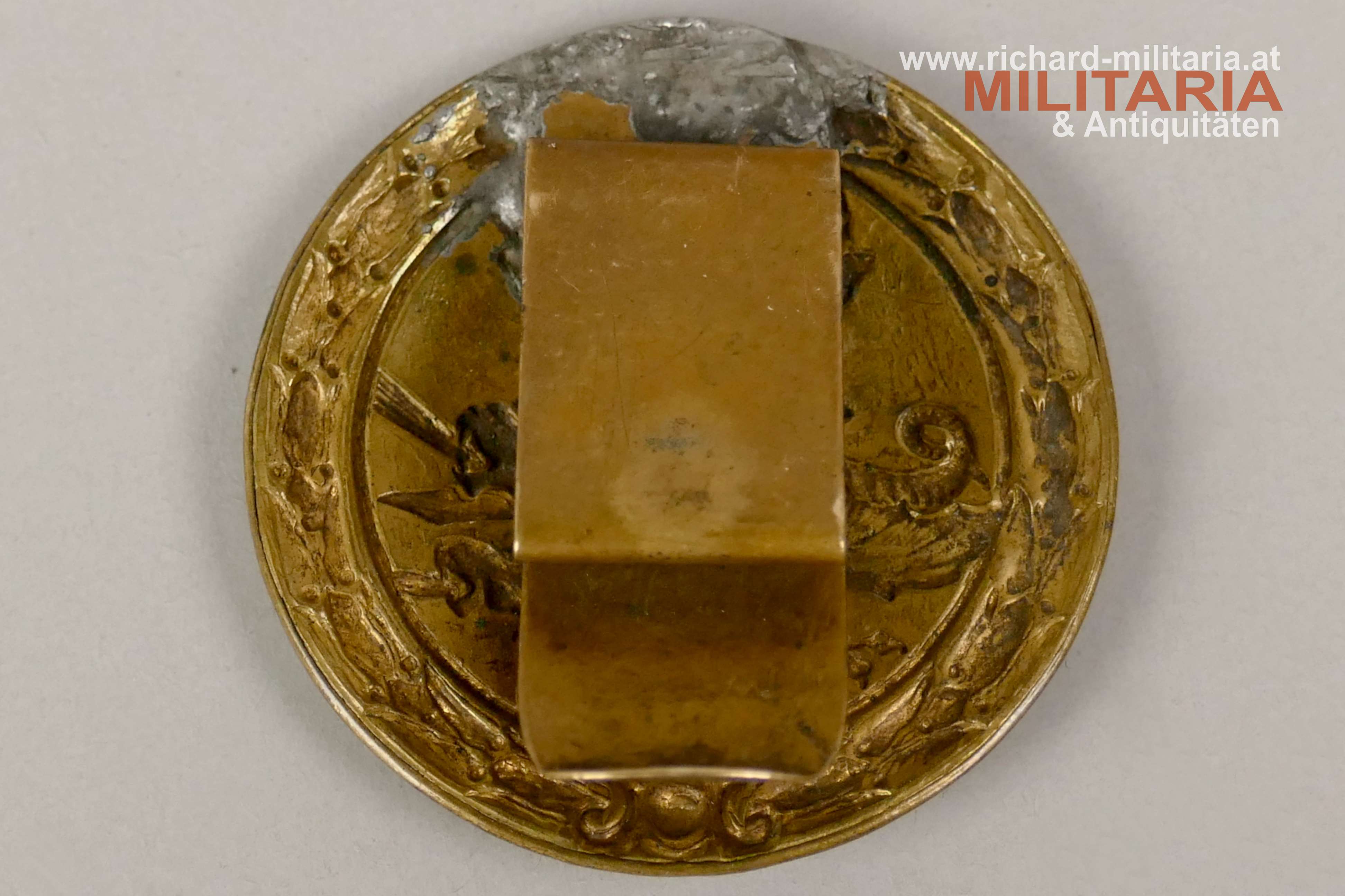 k.u.k. Schützenauszeichnung für Maschinengewehrschützen; Tombak vergoldet; durchgeprägte Variante; originale Tragelasche mit Lötspuren;