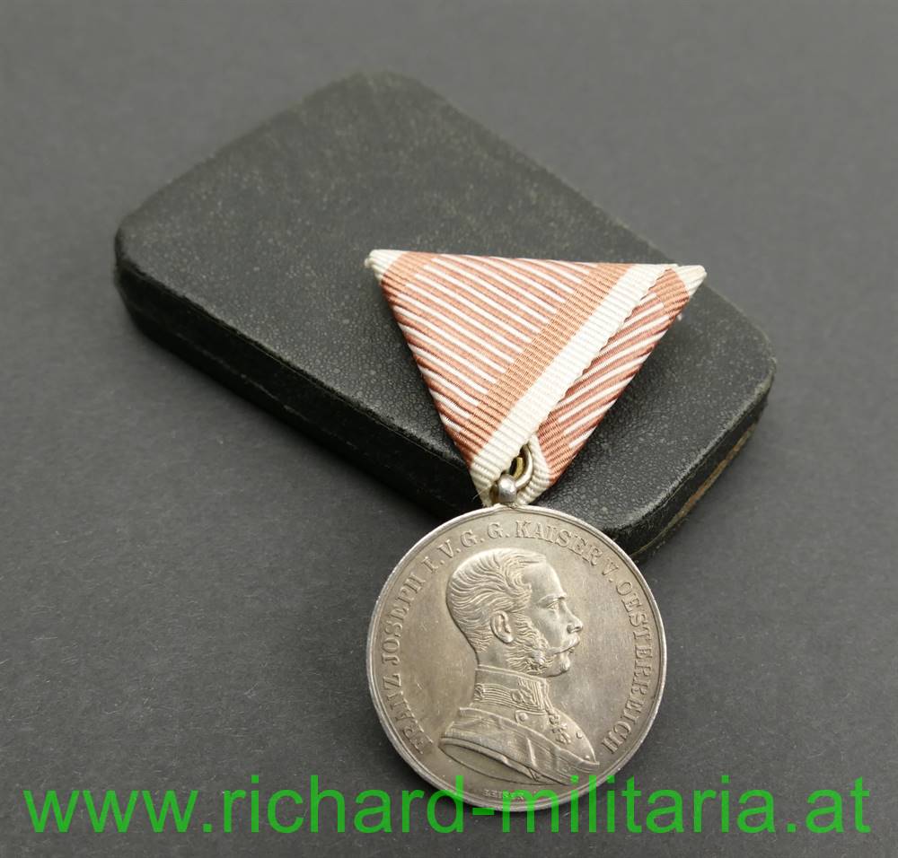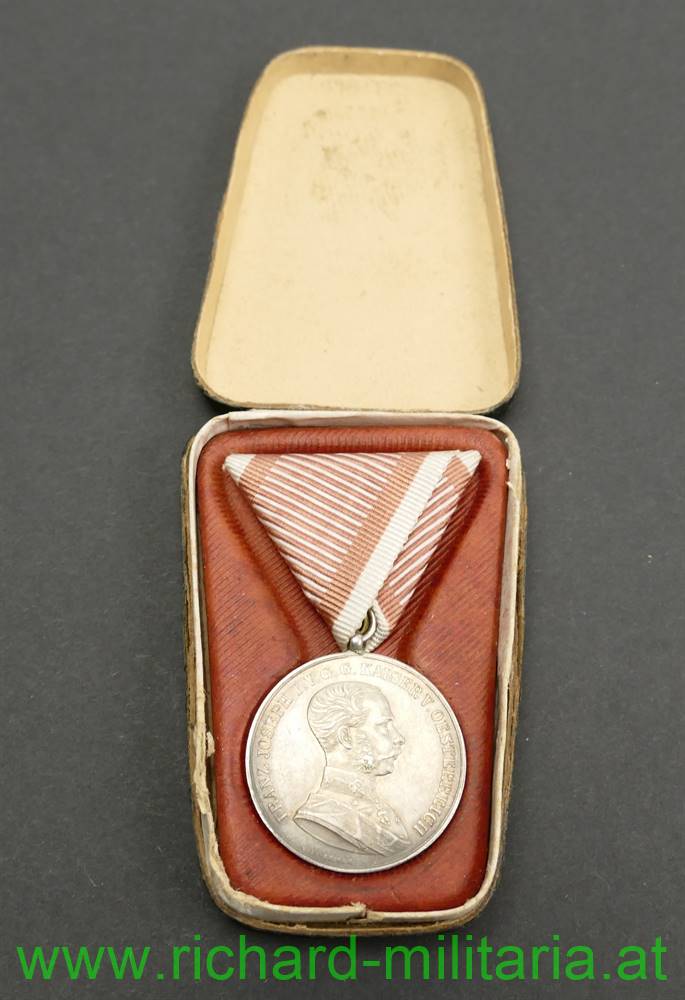 k.u.k. Silberne Tapferkeitsmedaille 1. Klasse FJ mit Verkaufsetui
