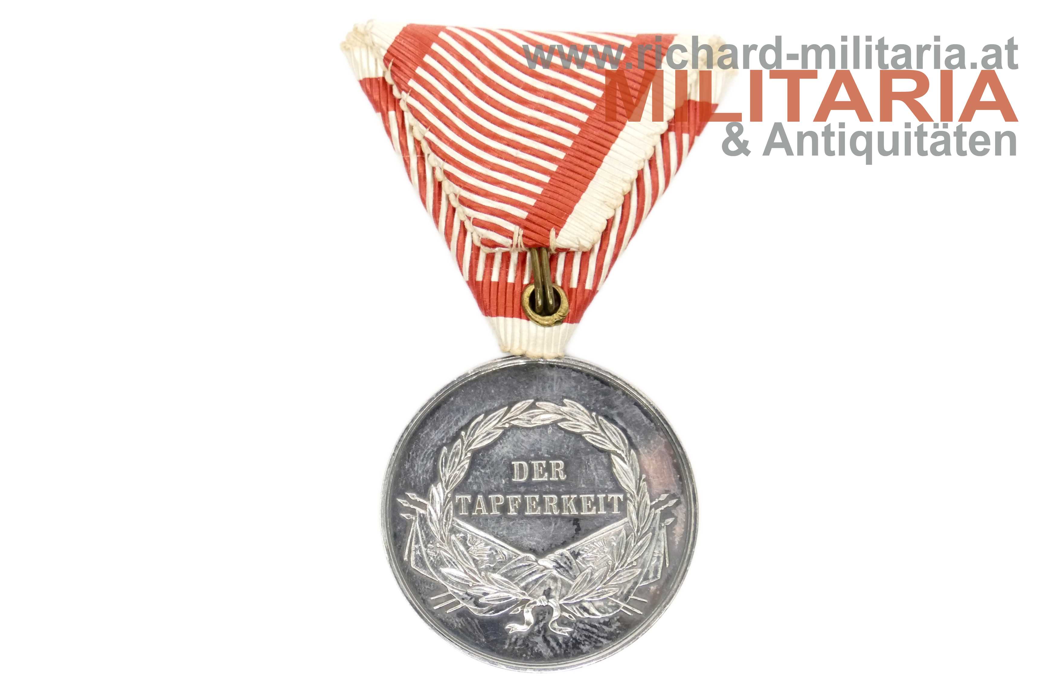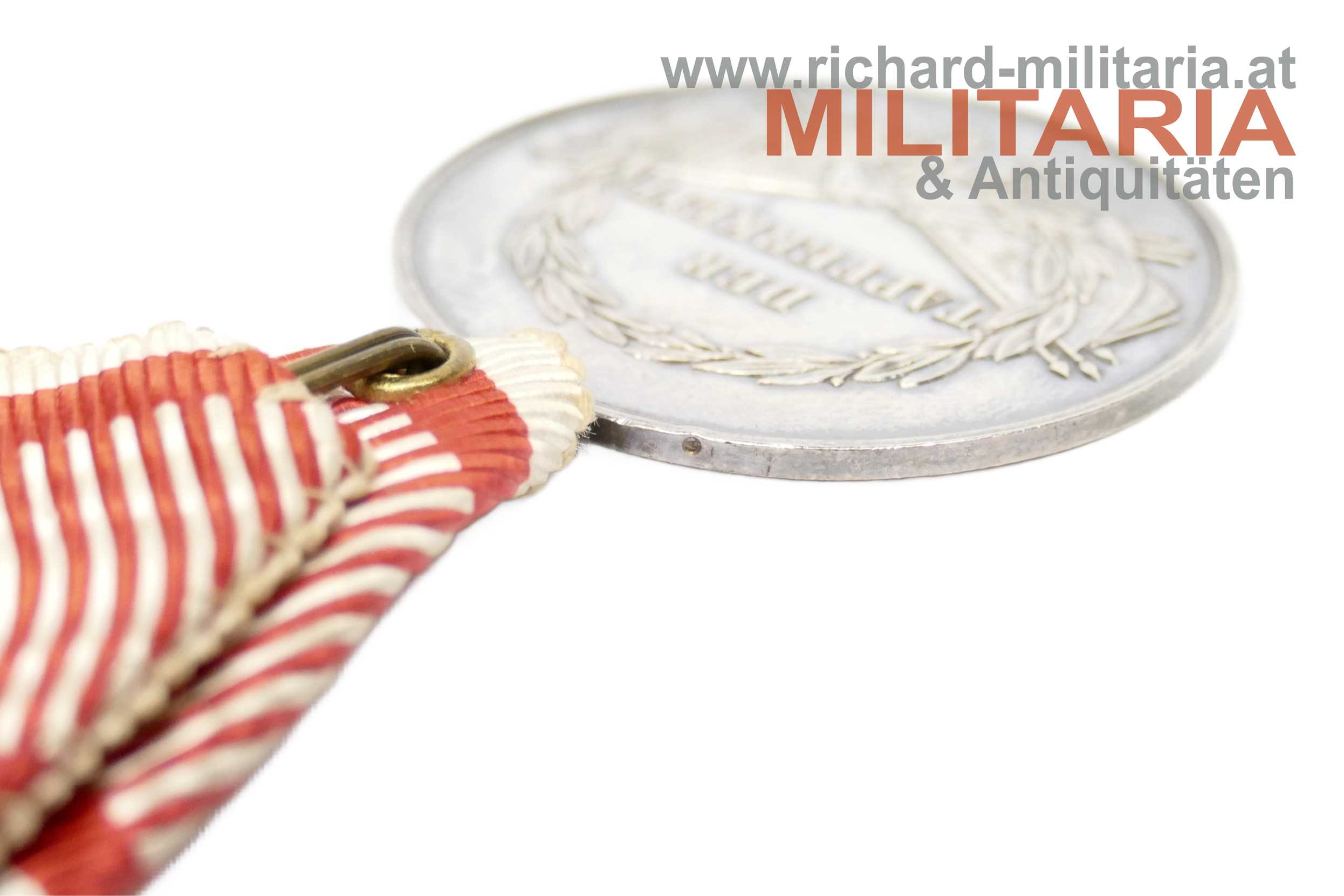 k.u.k. Silberne Tapferkeitsmedaille 1. Klasse - Kaiser Franz Josef; mit Kontrollamtspunzierung "A"; am originalen gut erhaltenen Band; STEMPELGLANZ!
