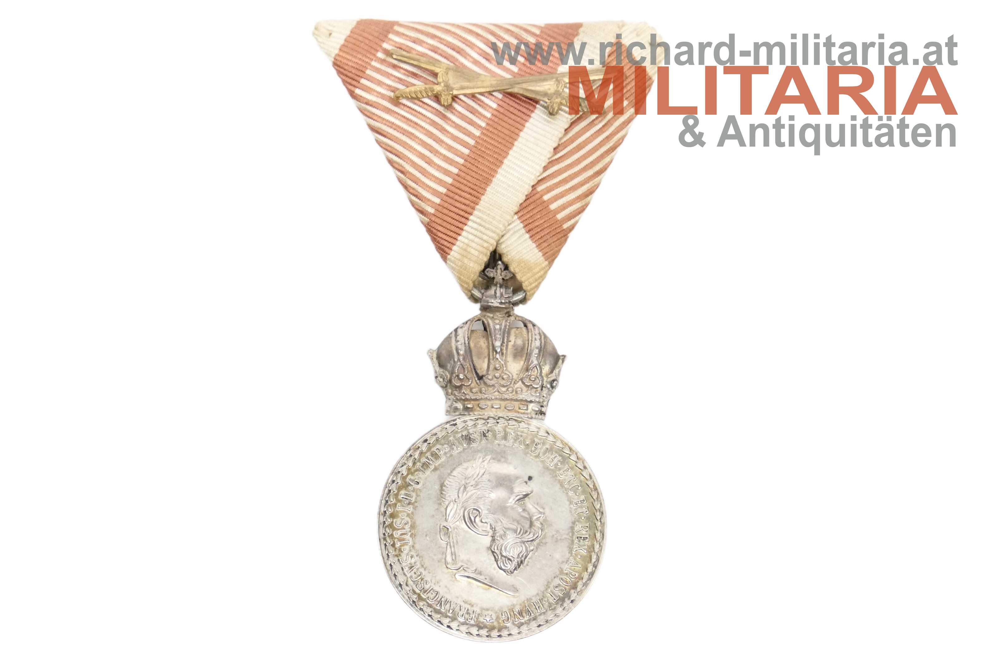 k.u.k. Silbernes Signum Laudis FJ1 mit Schwertern - WIDMUNGSSTÜCK