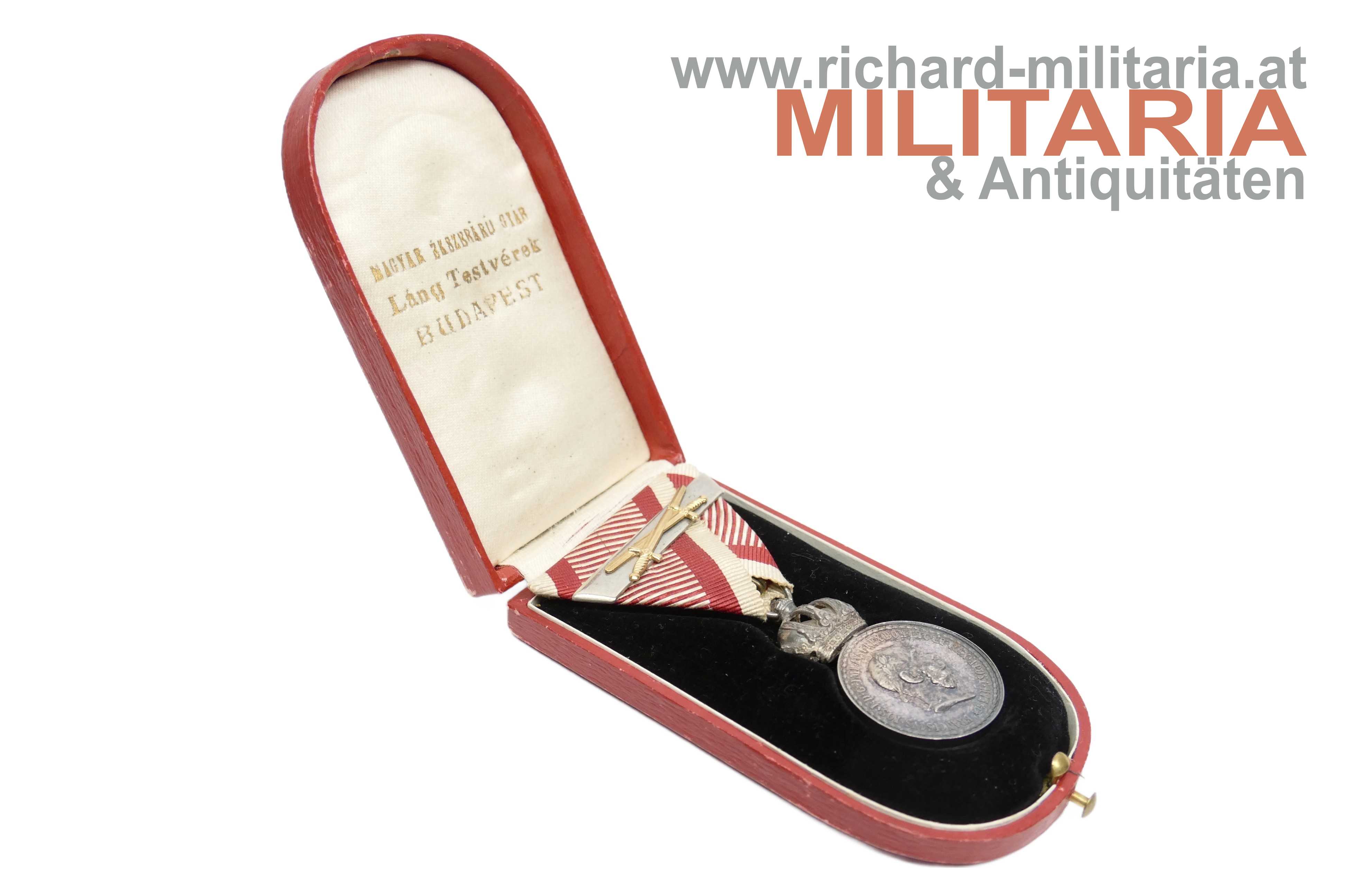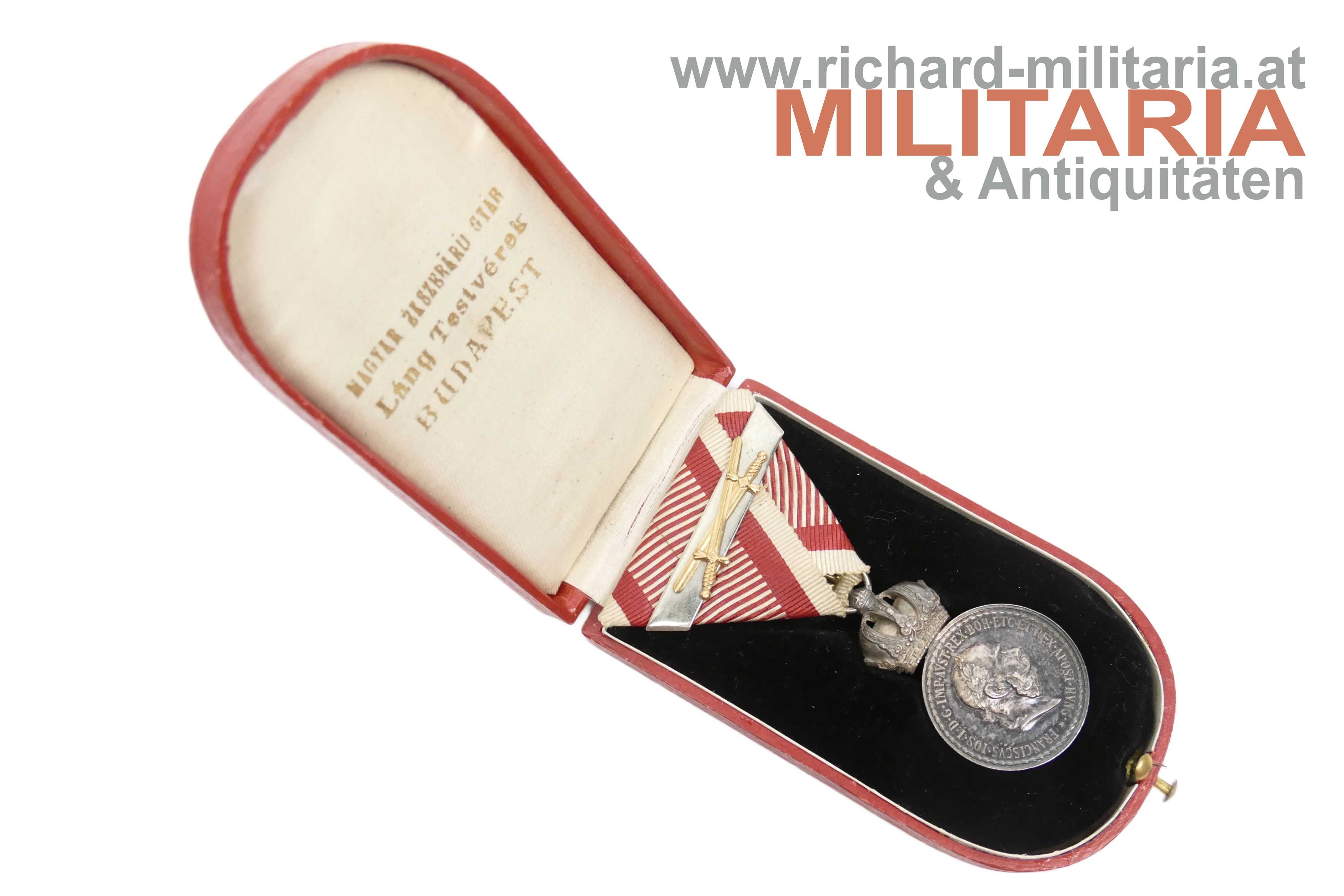 k.u.k. Silbernes Signum Laudis FJ1 mit WH-Spange u. Schw. im Etui