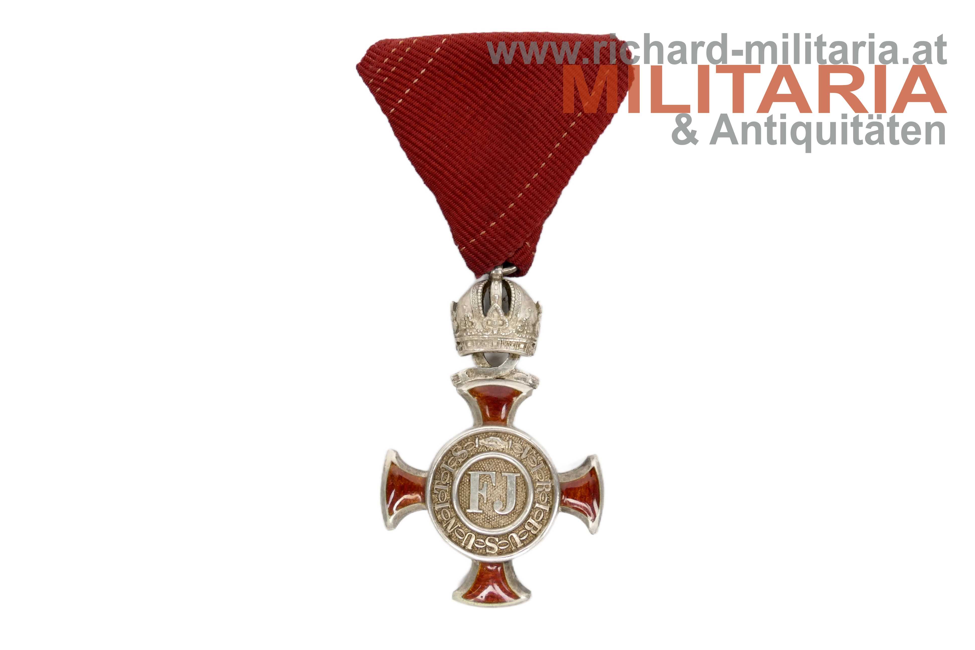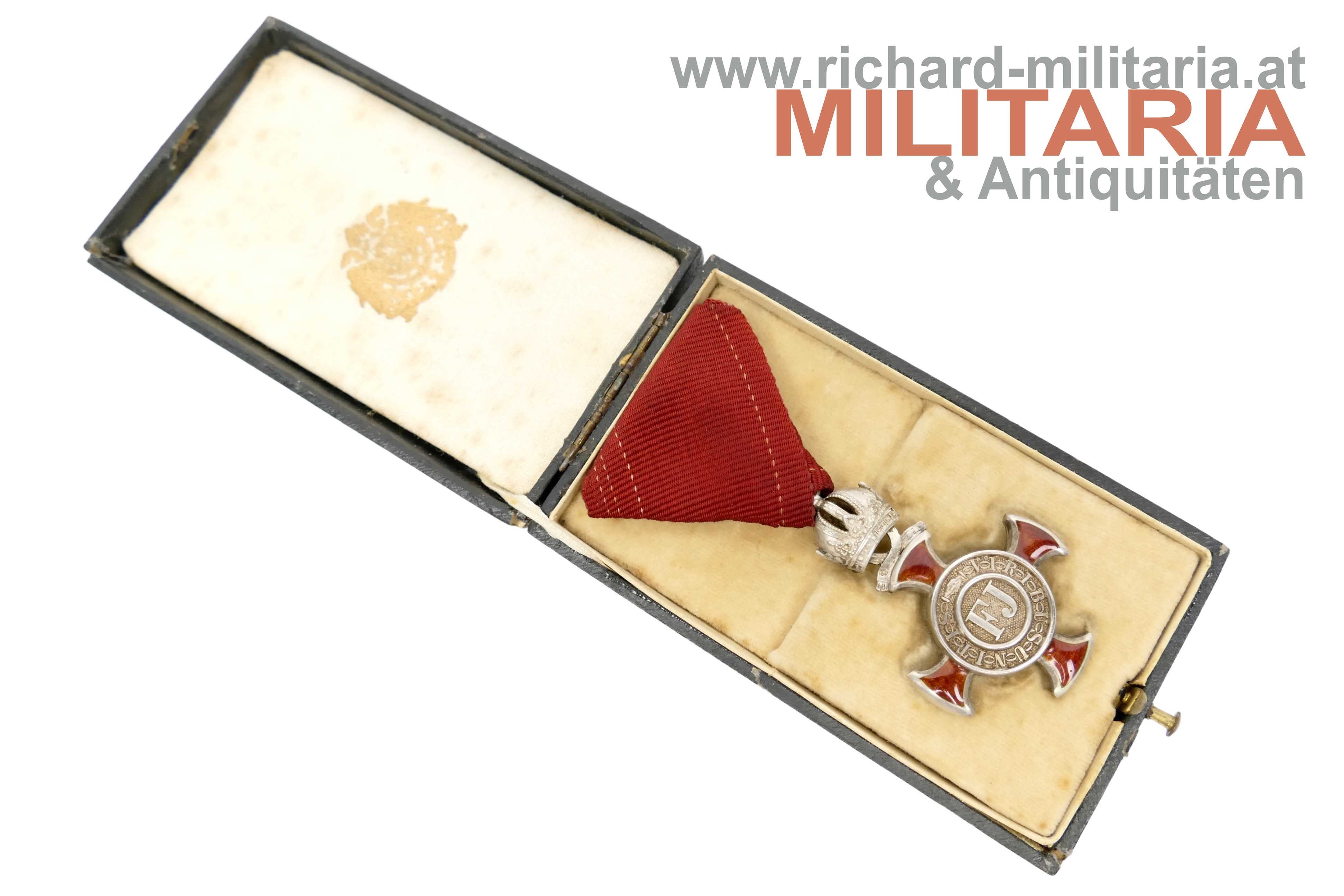 k.u.k. Silbernes Verdienstkreuz m.d.K. mit Etui - RUDOLFSKRONE
