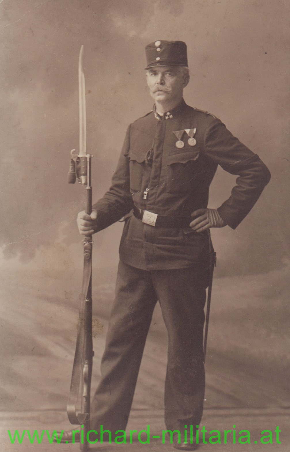 k.u.k. Soldat mit WERNDL-Gewehr und aufgepflanztem Bajonett