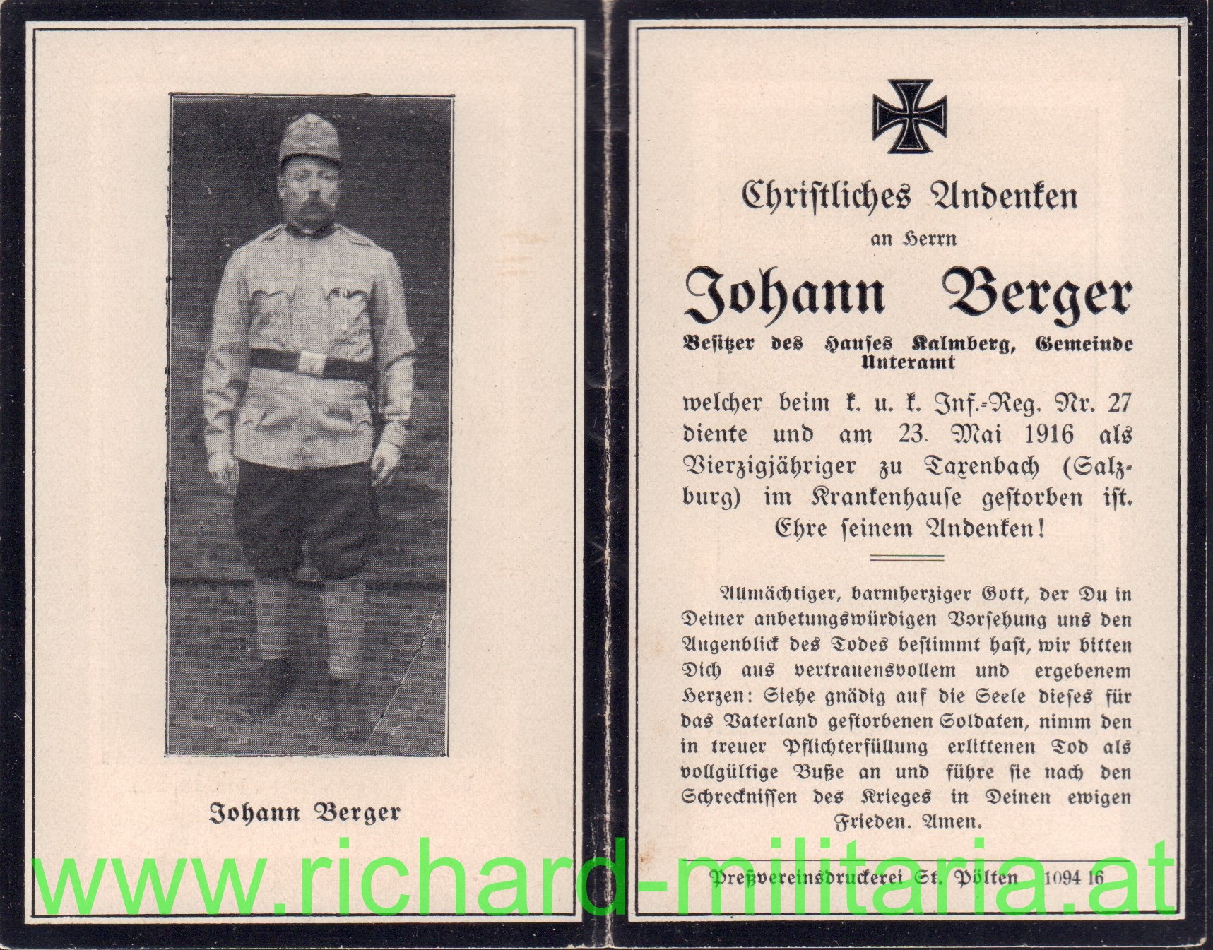 Produktinformationen "k.u.k. Sterbebild "k.u.k. Inf.-Reg.Nr.27""