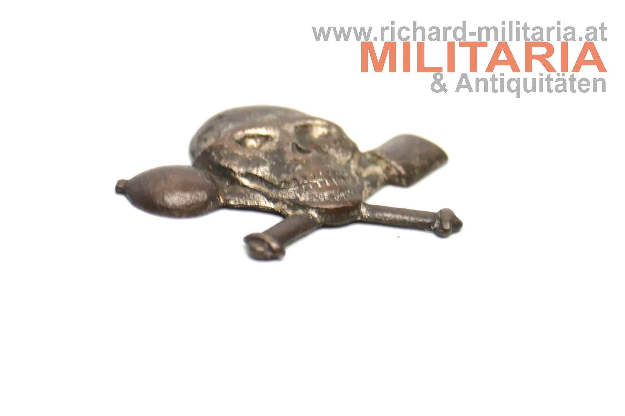 Einzelne Kragenspiegelauflage der k.u.k. Sturmtruppe; Tombak geprägt und versilbert; auf der Vorderseite ist die Versilberung bereits stärker abgetragen; zum Aufnähen auf die Kragenspiegel.