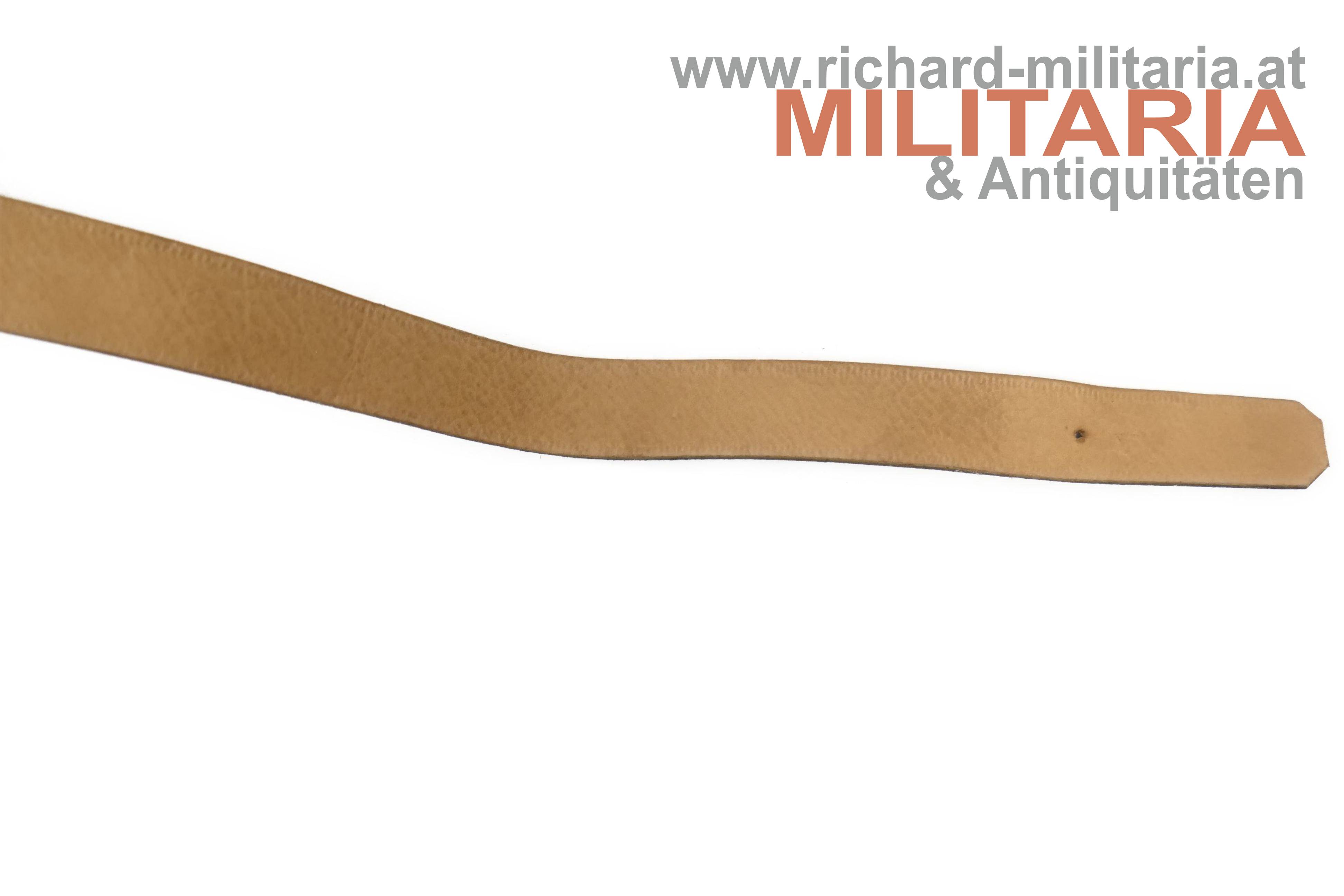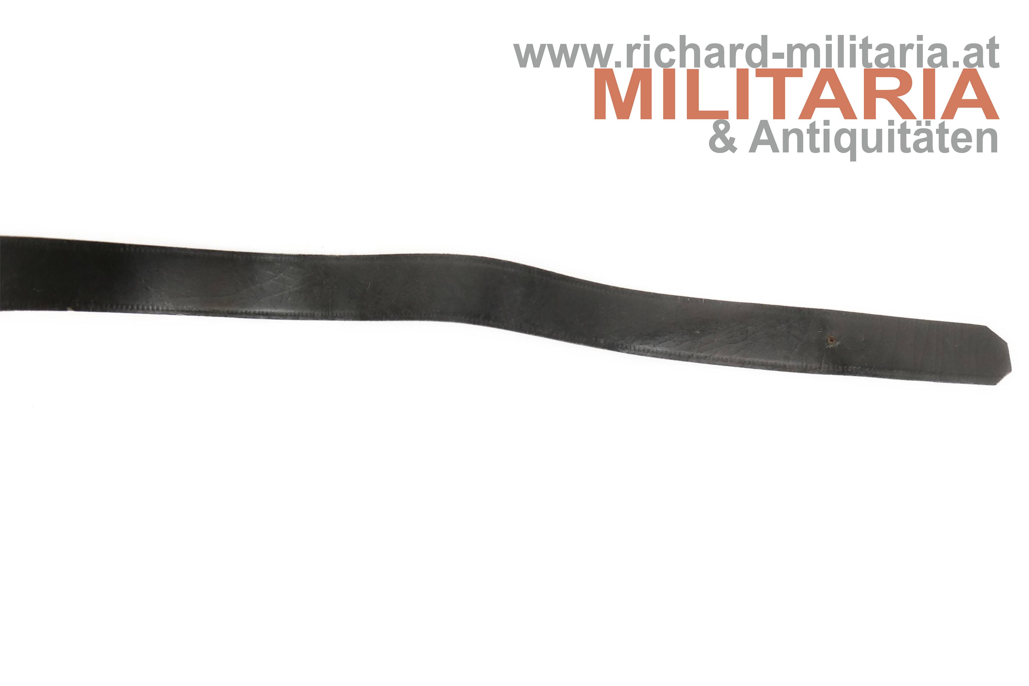 k.u.k. Tschako-Kinnriemen; schwarzes Lackleder auf der Unterseite hellbraun; vergoldeter Messingverschluss; nur ein gestochenes Loch; geschmeidiges, weiches Leder;