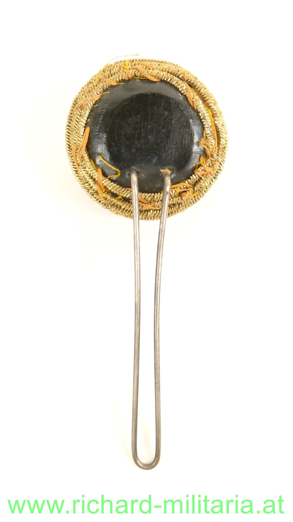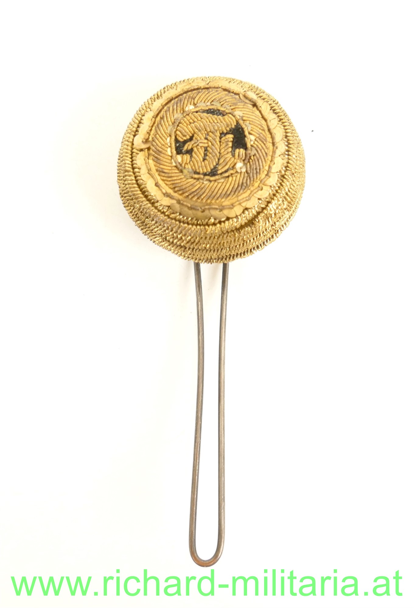 k.u.k. - Tschako Kokarde für Offiziere FJI - Kokarde aus Goldbouillon mit den Initialen FJI; minimale tragebedingte Beschädigung/Reparaturen auf der Rückseite;
