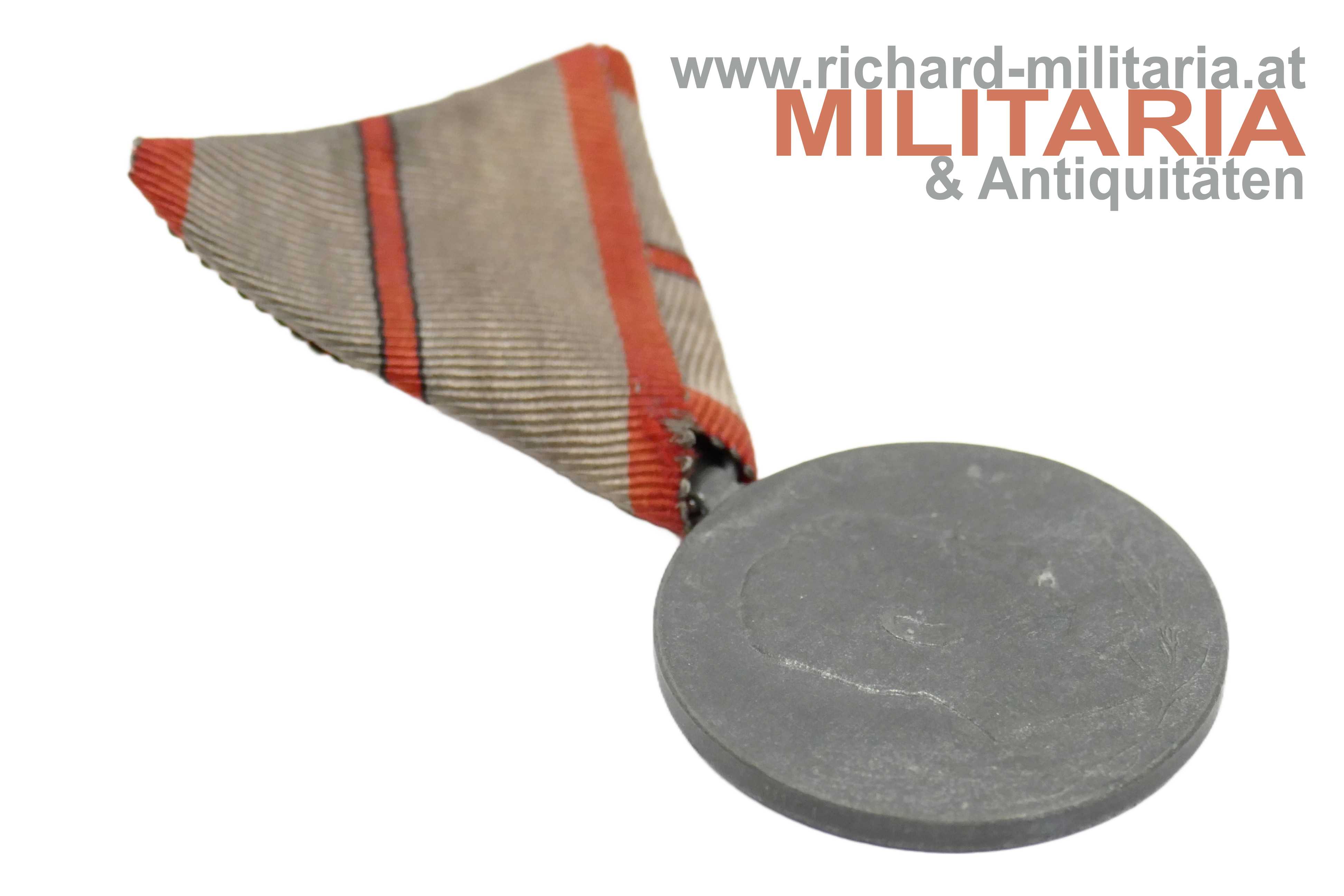 k.u.k. Verwundetenmedaille - einfache Verwundung; Zink; Randpunzierungen "WuA" sowie "1918"; am originalen Band;