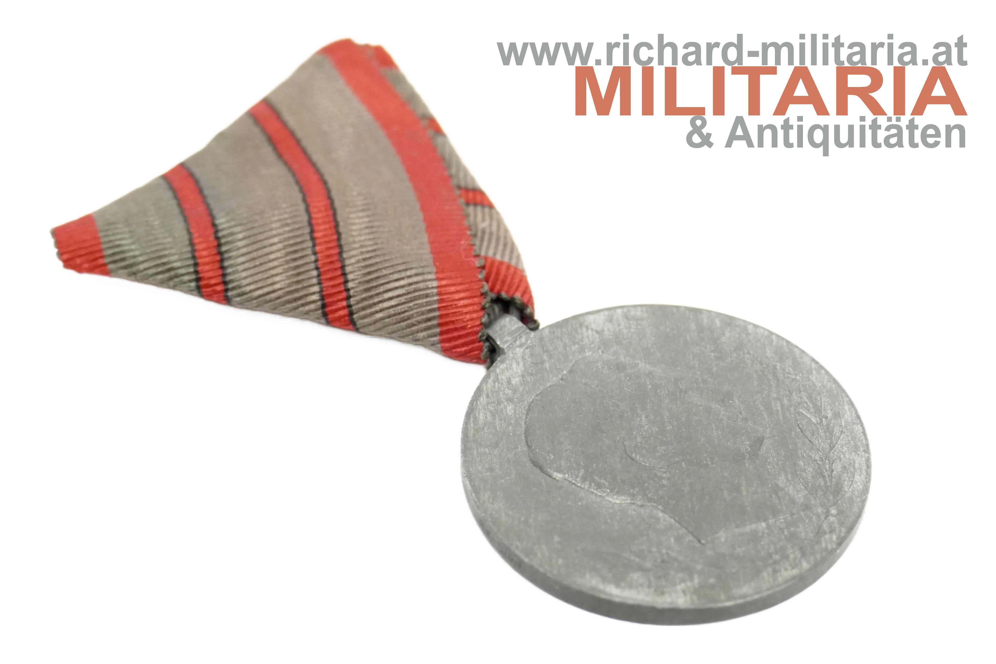 k.u.k. Verwundetenmedaille - 2-fache Verwundung; Zink; Randpunzierungen "HMA" und "1918"; am originalen sehr gut erhaltenen Band mit zwei Streifen;