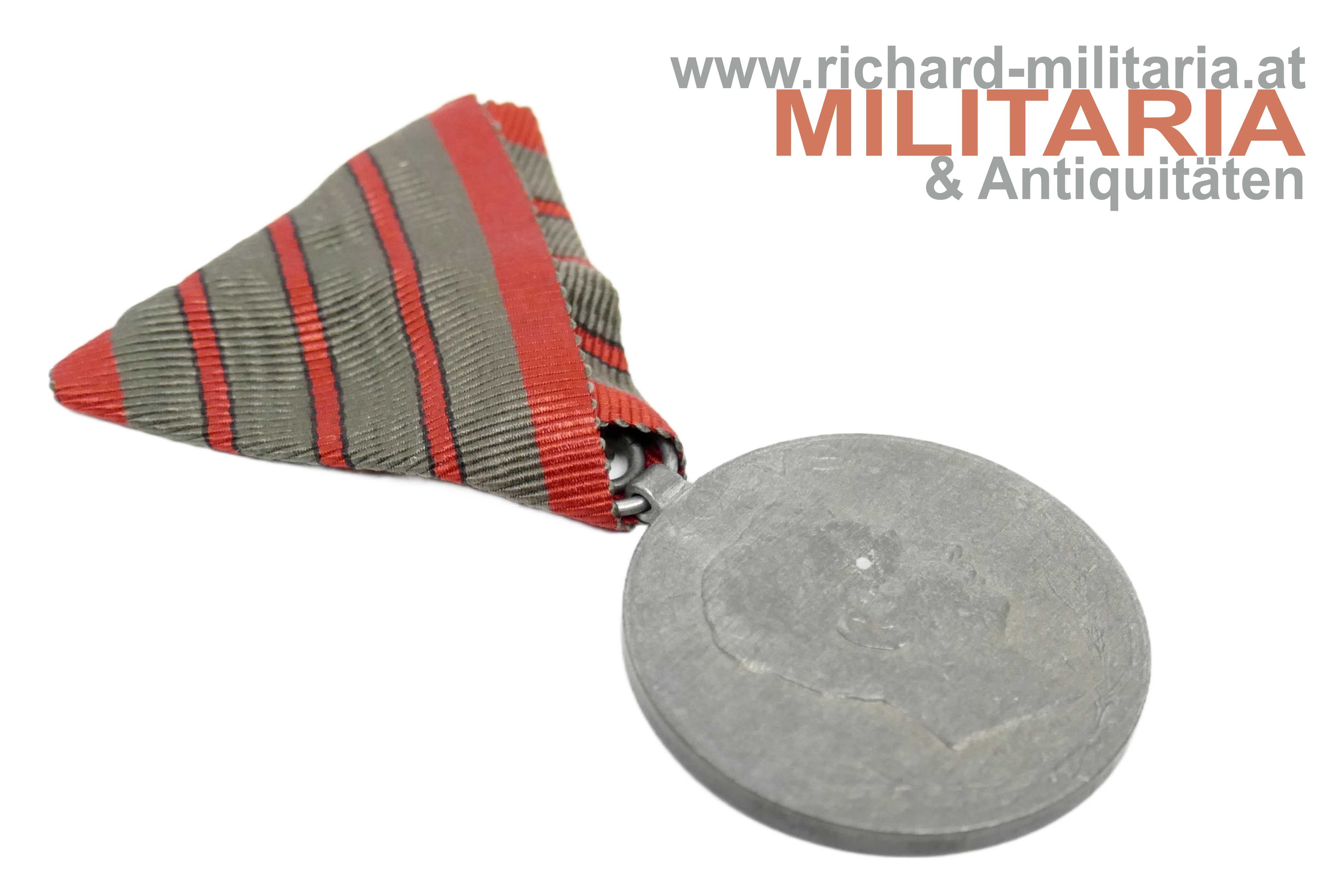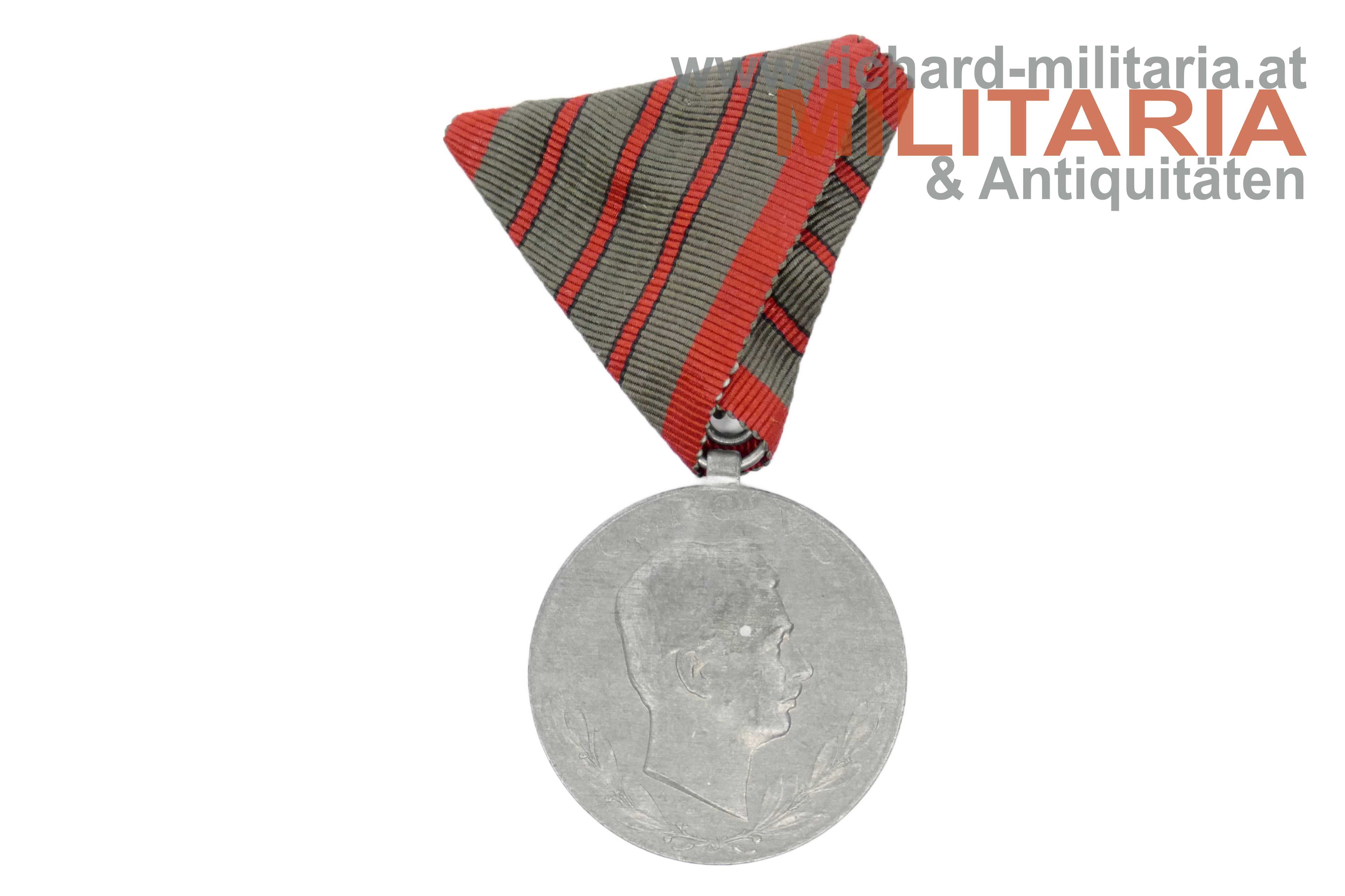 k.u.k. Verwundetenmedaille - 3-fache Verwundung; Zink; Randpunzierungen "WuA" (Winter & Adler) und "1918"; am originalen sehr gut erhaltenen Band mit 3 Streifen;