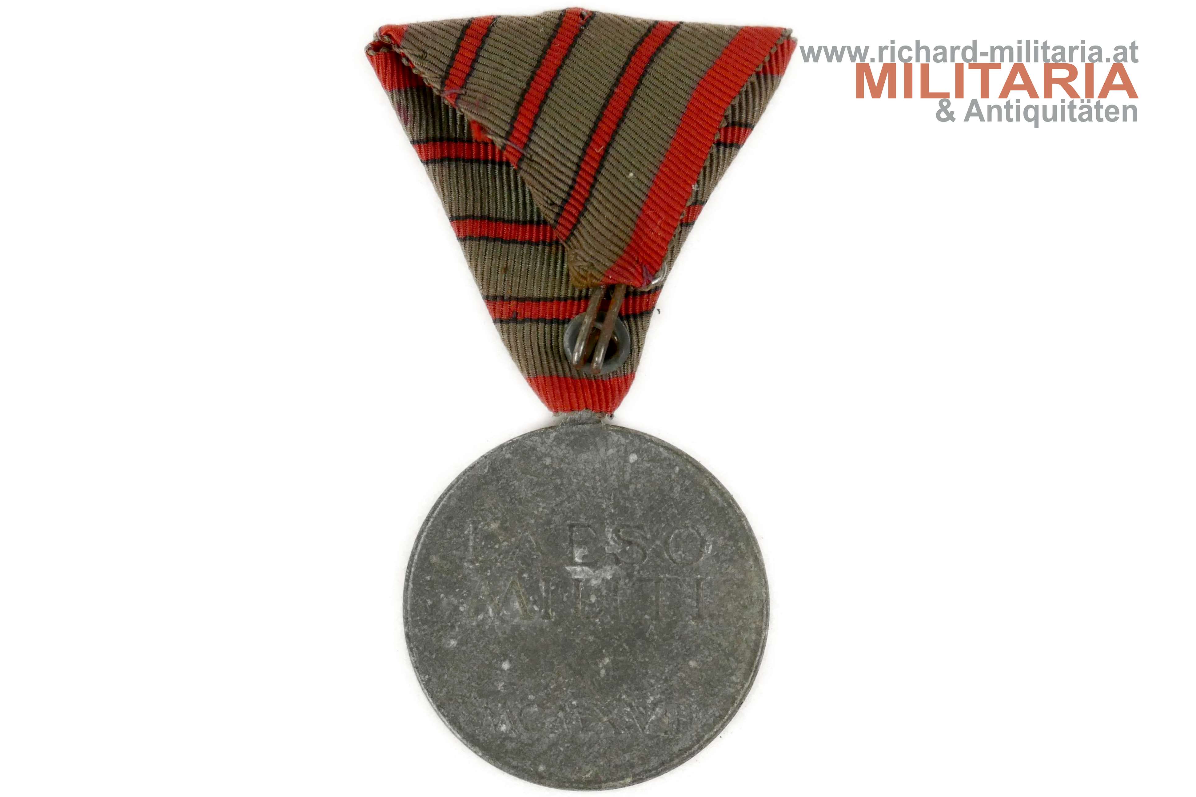 k.u.k. Verwundetenmedaille; Zink; am Band für dreimalige Verwundung; mit aufgesplinteter "5" aus Tombak versilbert; Zustand 2-3