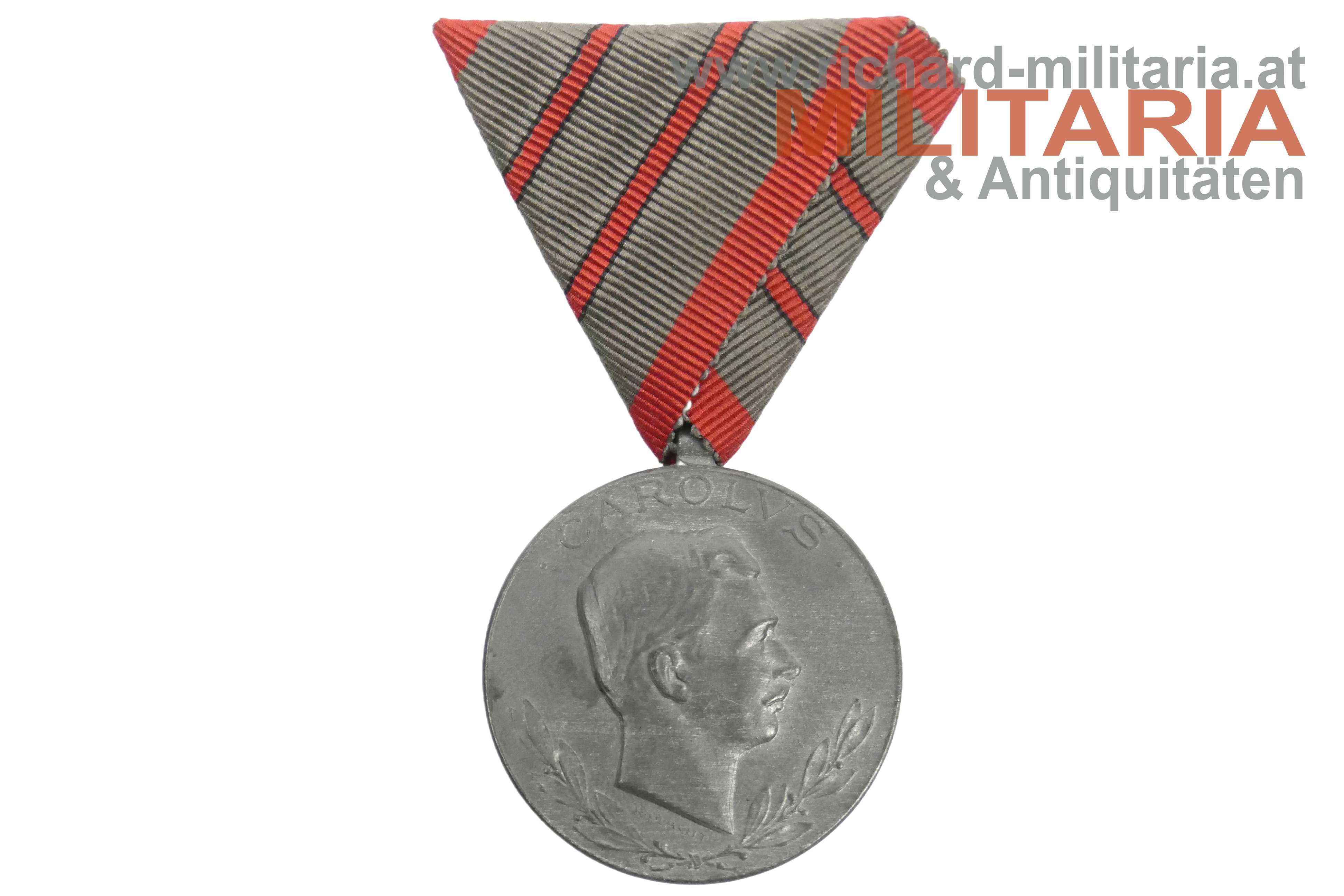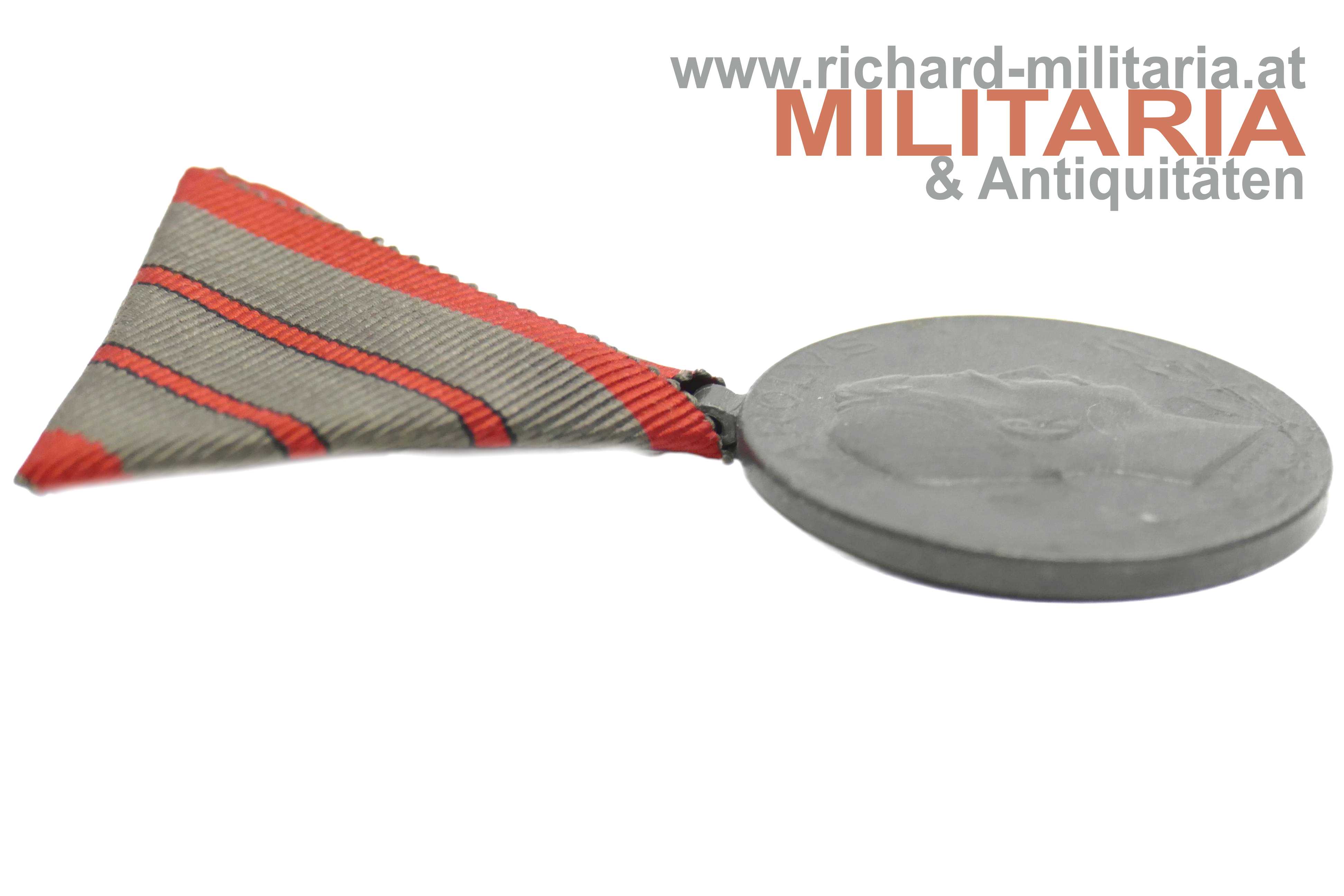 k.u.k. Verwundetenmedaille - zweifache Verwundung; Zink mit Randpunzierung "W&A" (Winter & Adler); originales Band mit zwei Streifen in sehr guter Erhaltung;