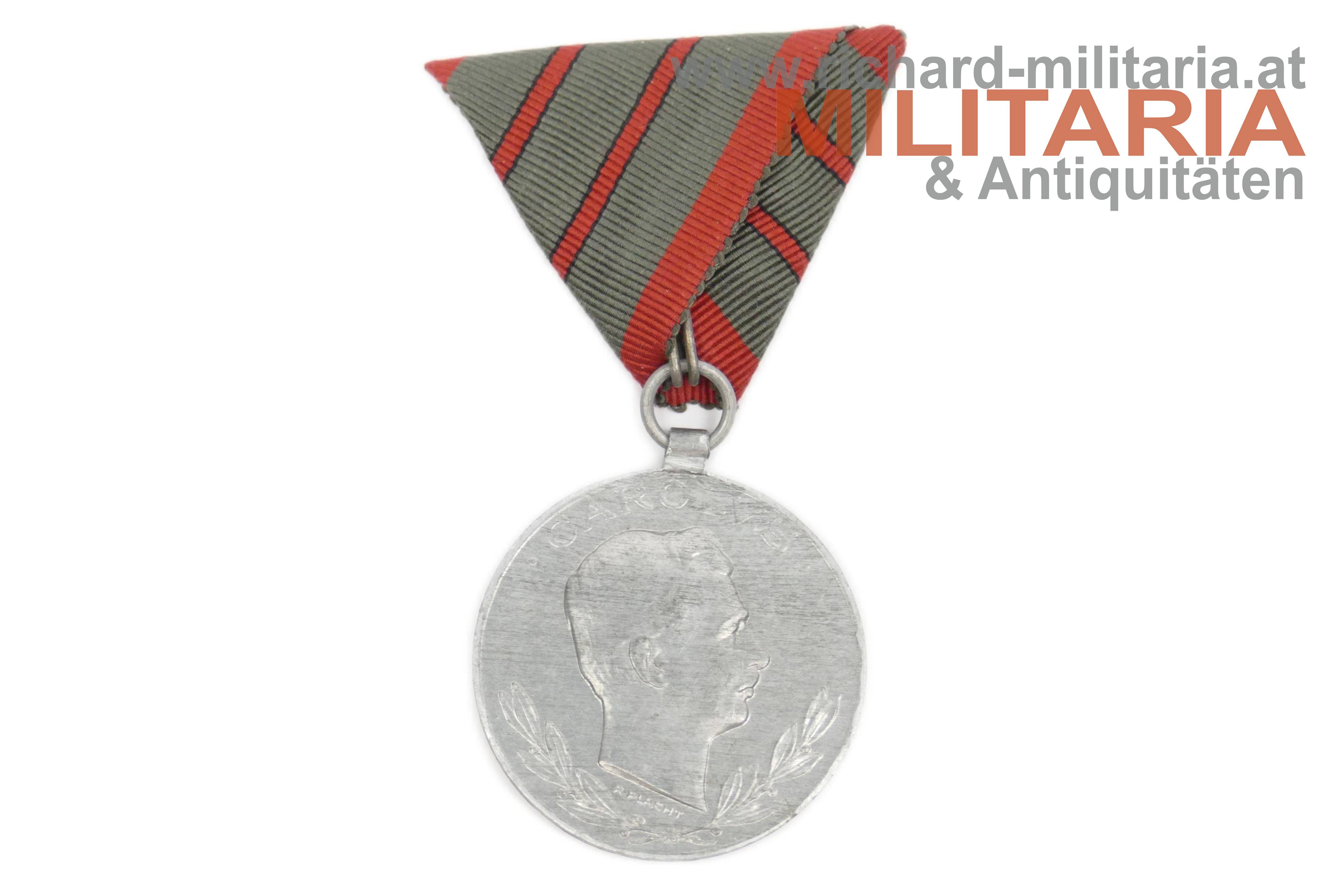 k.u.k. Verwundetenmedaille - zweimalige Verwundung; Randpunzierungen "18" und "GW"; Zink; am originalen Band;