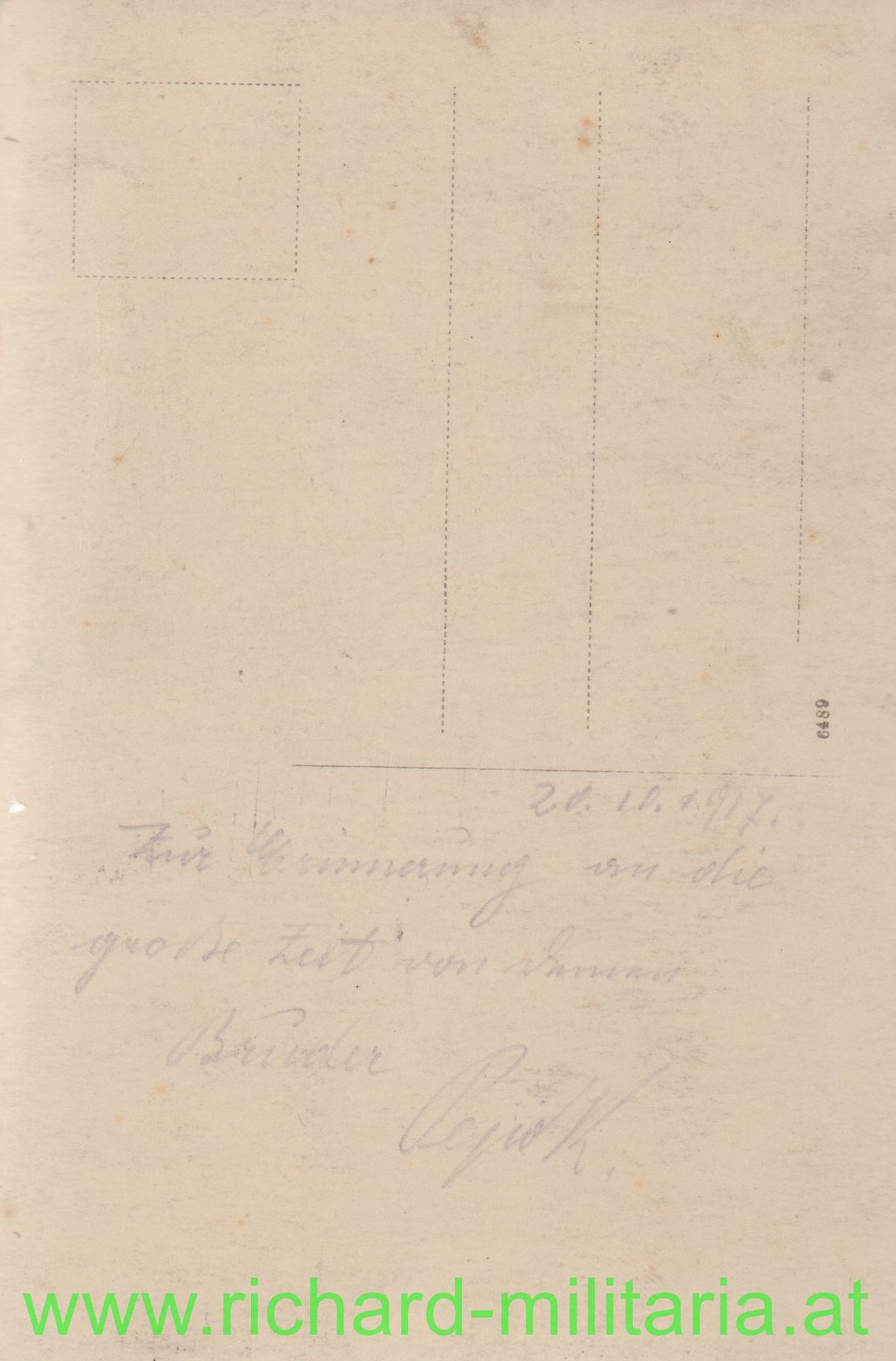 Postkartenformat - Rückseite mit Erinnerungswidmung 1917
