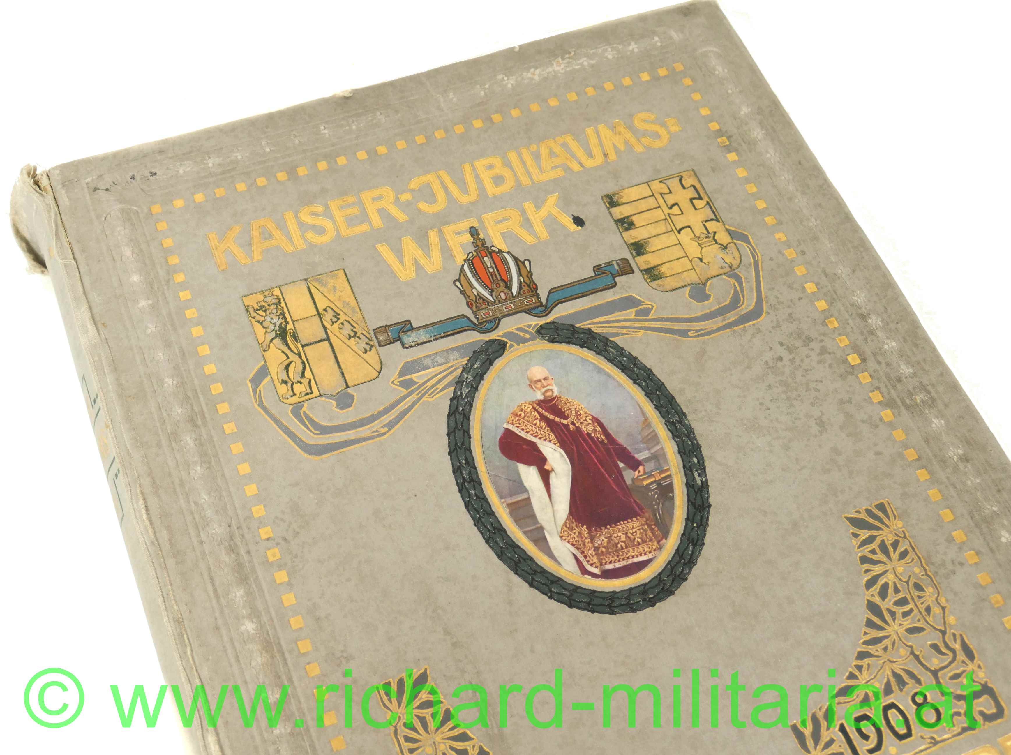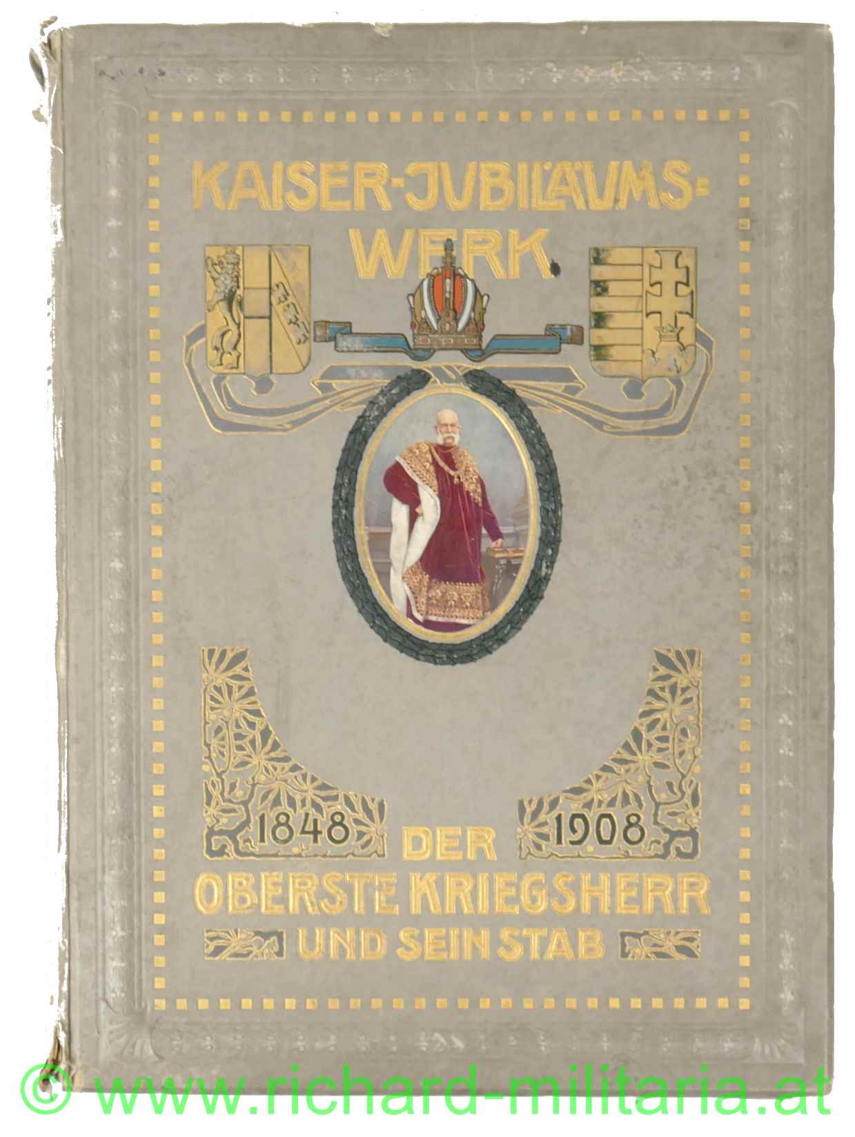 Der oberste Kriegsheer und sein Stab - Die k.u.k. Wehrmacht in Wort und Bild - 1908; militärisches Huldigungswerk zur 60-jährigen Jubiläumsfeier von Kaiser Franz Josef; rund 400 Seiten; Prunkeinband seitlich etwas zerschlissen;