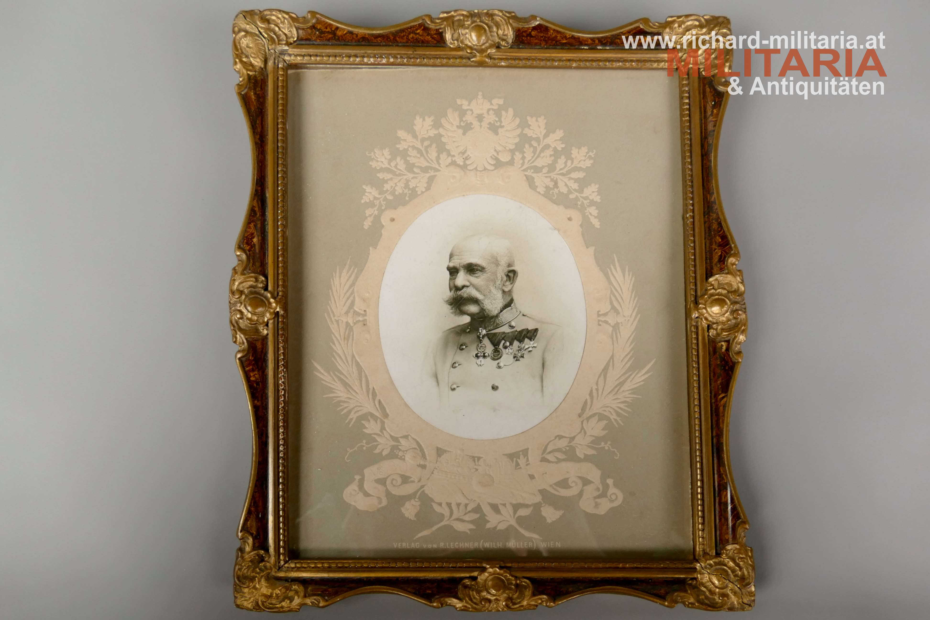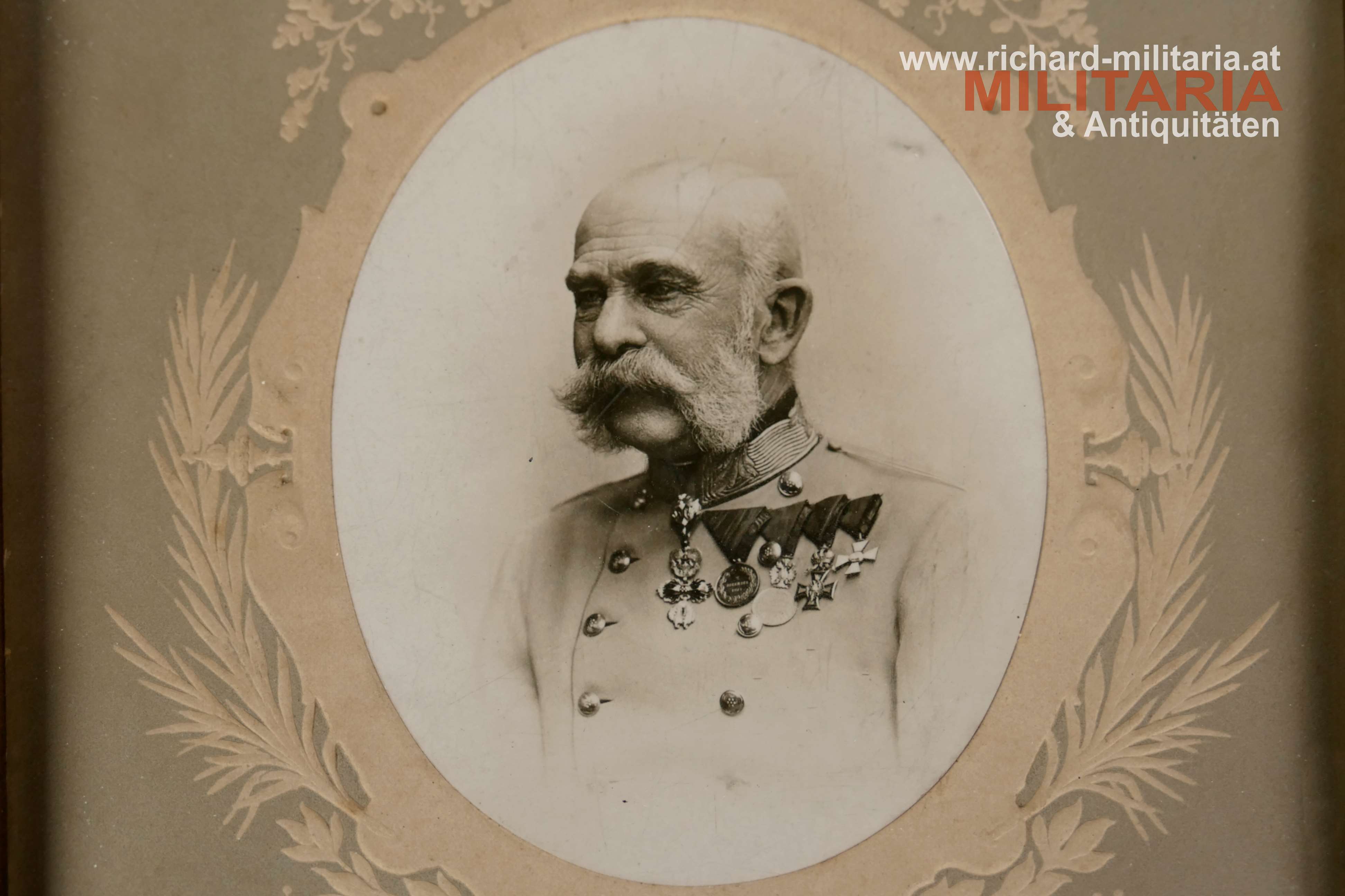 Kaiser Franz Josef - gerahmter Fotodruck, Kaiser Franz Josef unter ovalem verzierten Passepartout, hinter Glas, auf der Rückseite Aufhängevorrichtung;