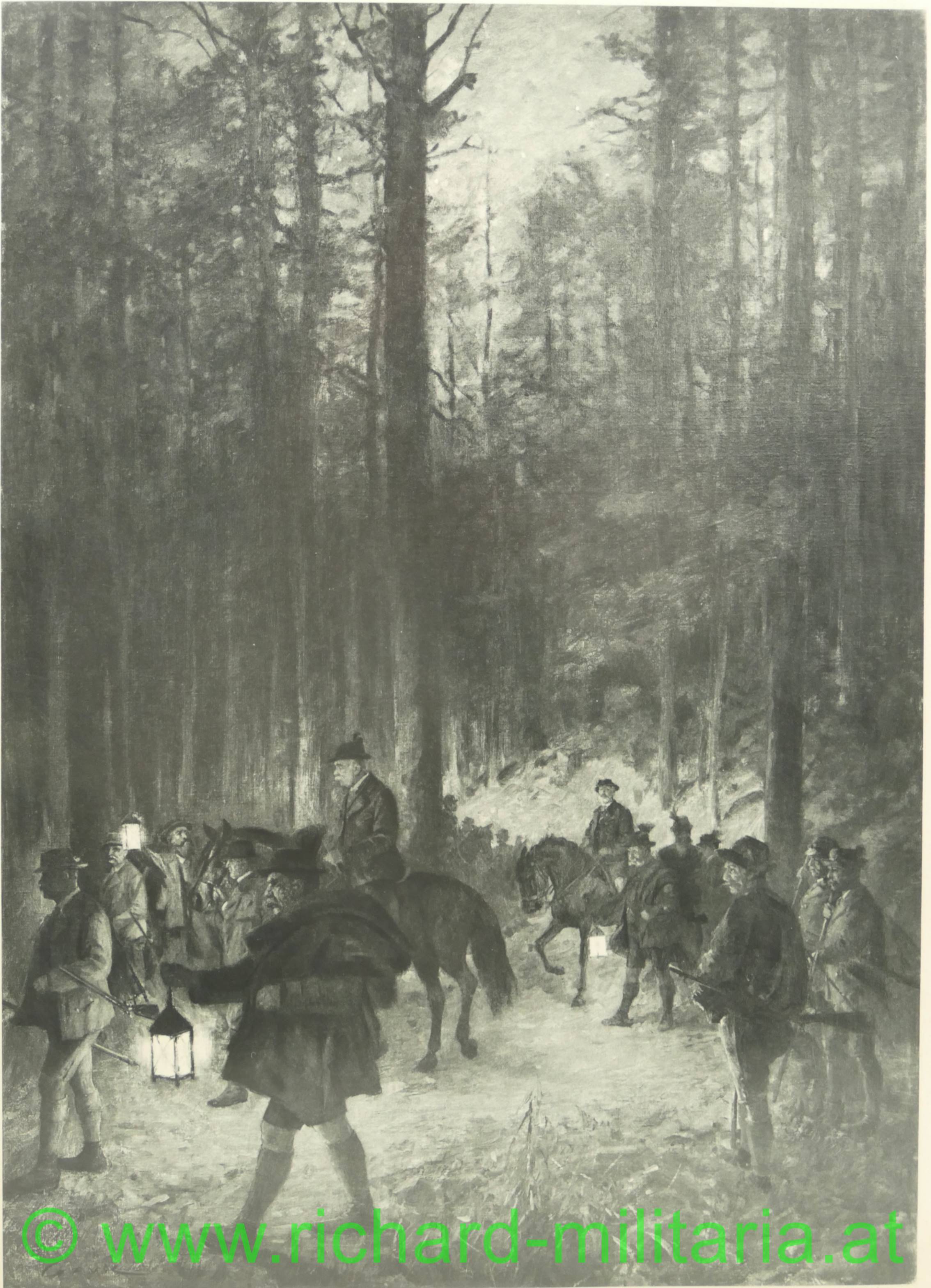 Kaiser Franz Josef - Nachtpirsch, schwarz/weiß Druck - signiert hinter Glas im neuen Rahmen;