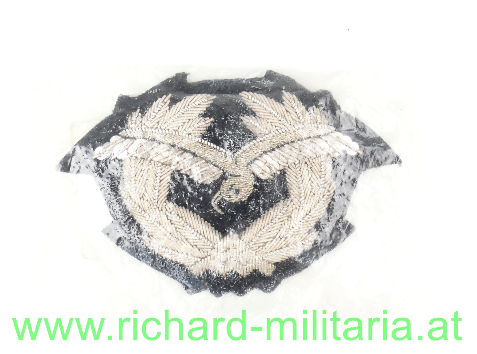 Kappenemblem - Luftstreitkräfte - gestickt - Unteroffizier, gesticktes Kappenemblem für die Tellerkappe der österreichischen Luftstreitkräfte, original verpackt, mit Herstelleretikett;