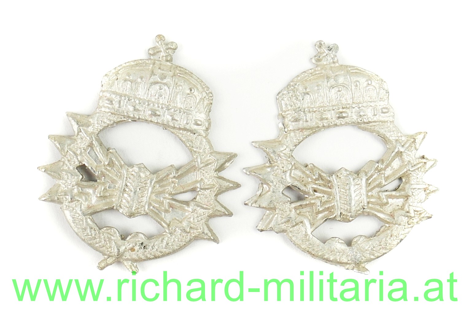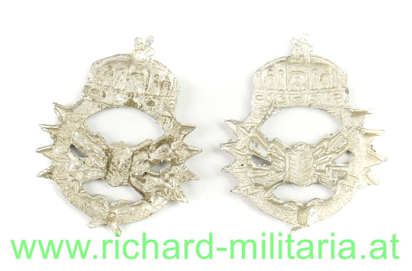 Paar Kragenspiegelauflagen der Telegraphentruppe für Mannschaften und UO der königlich ungarischen Honvèd - Weissmetall geprägt