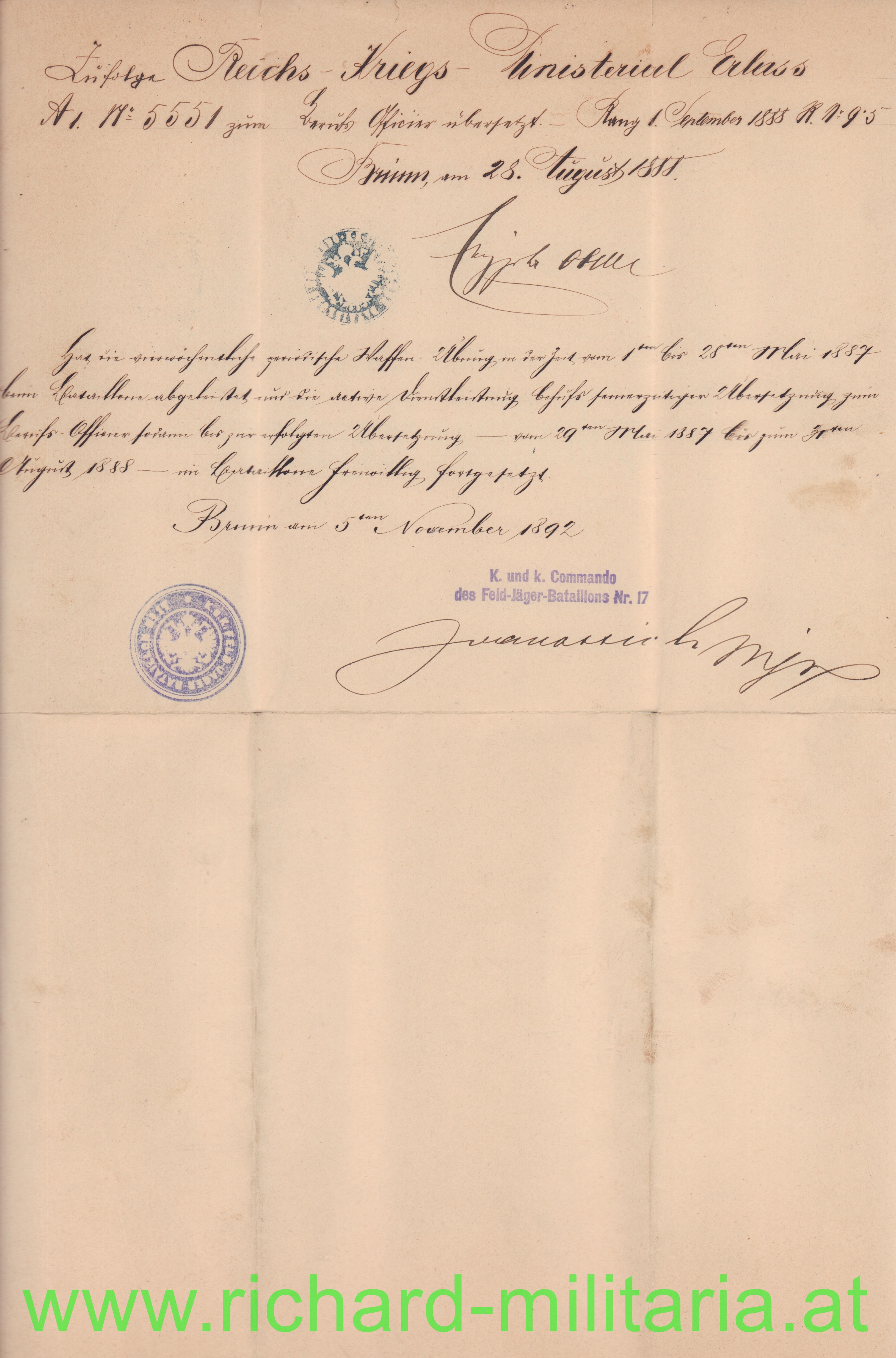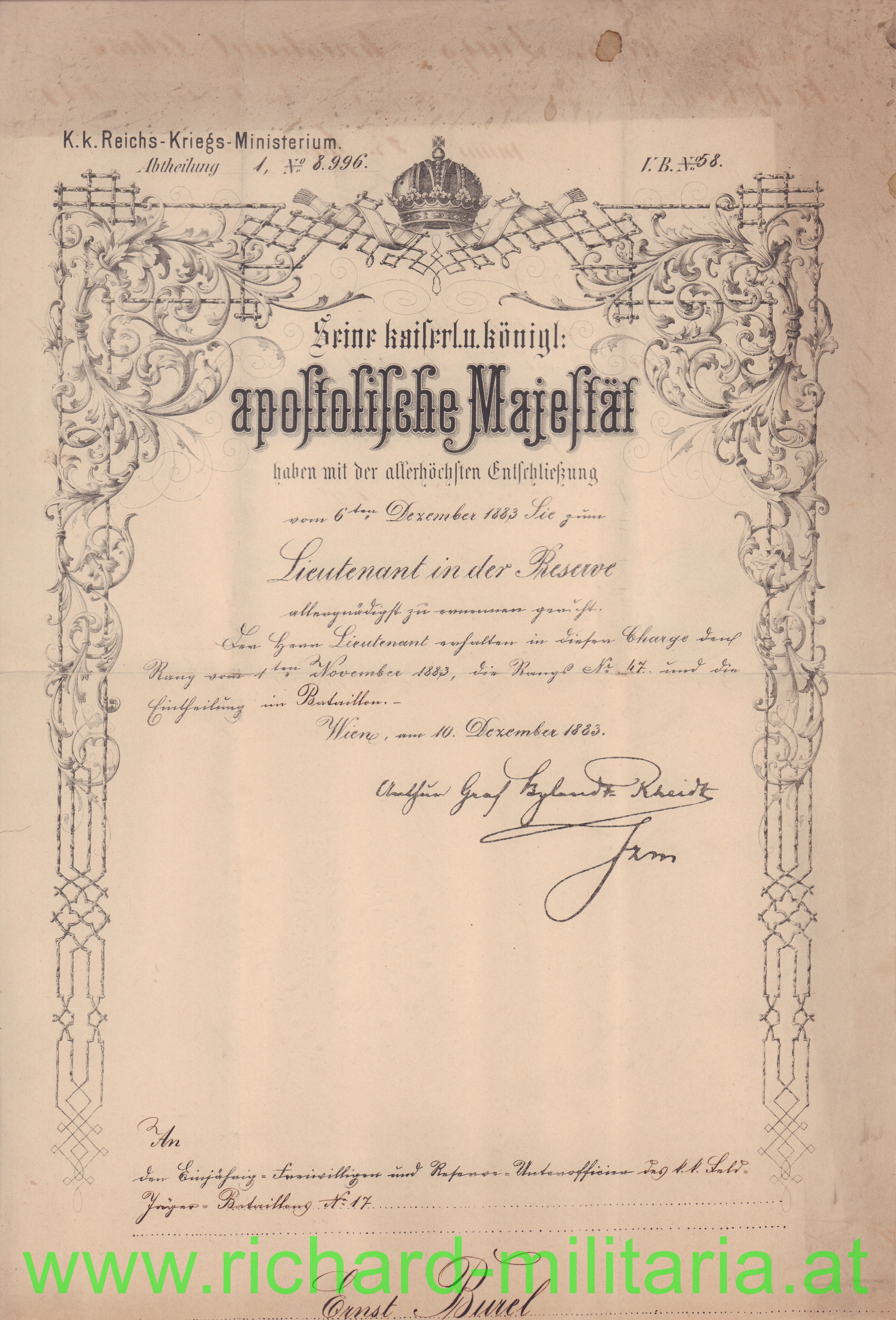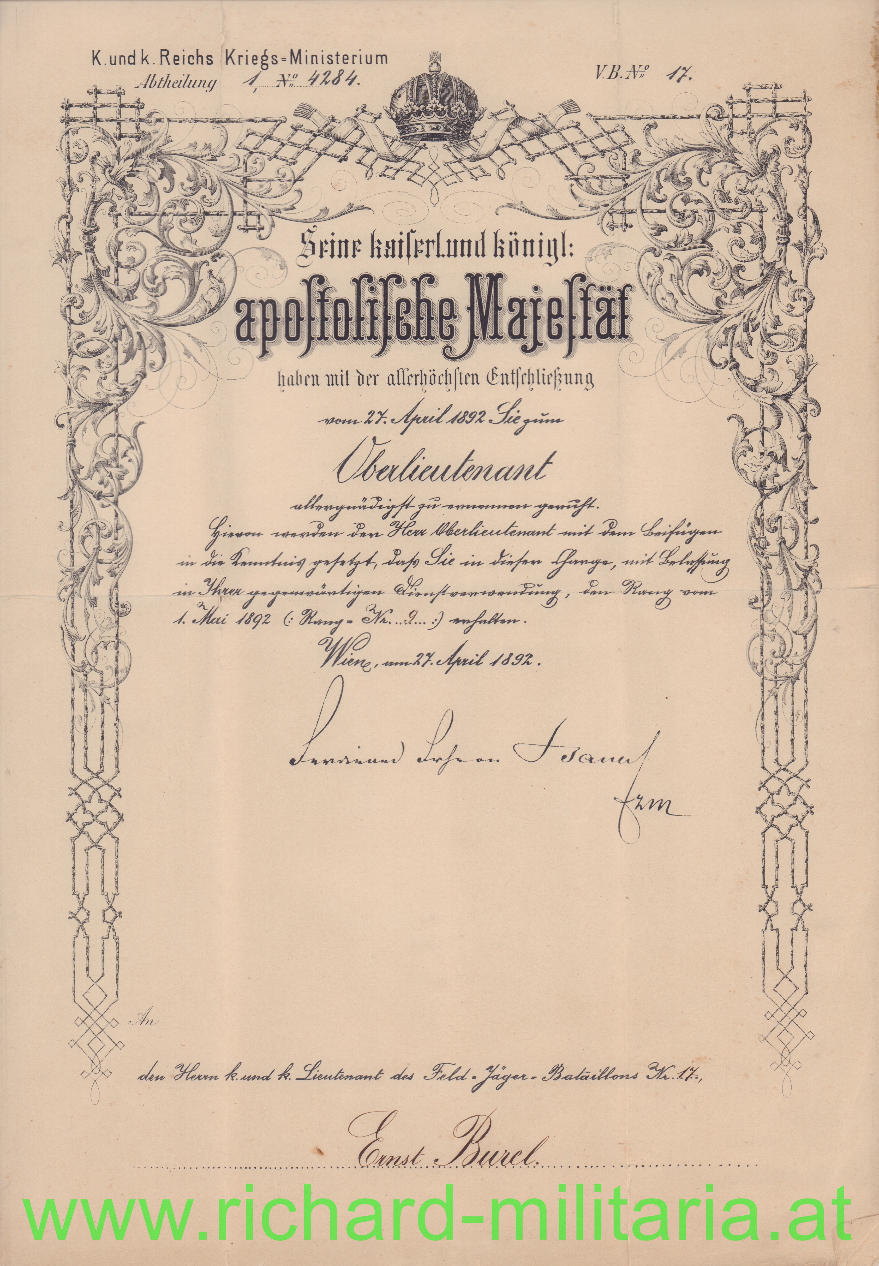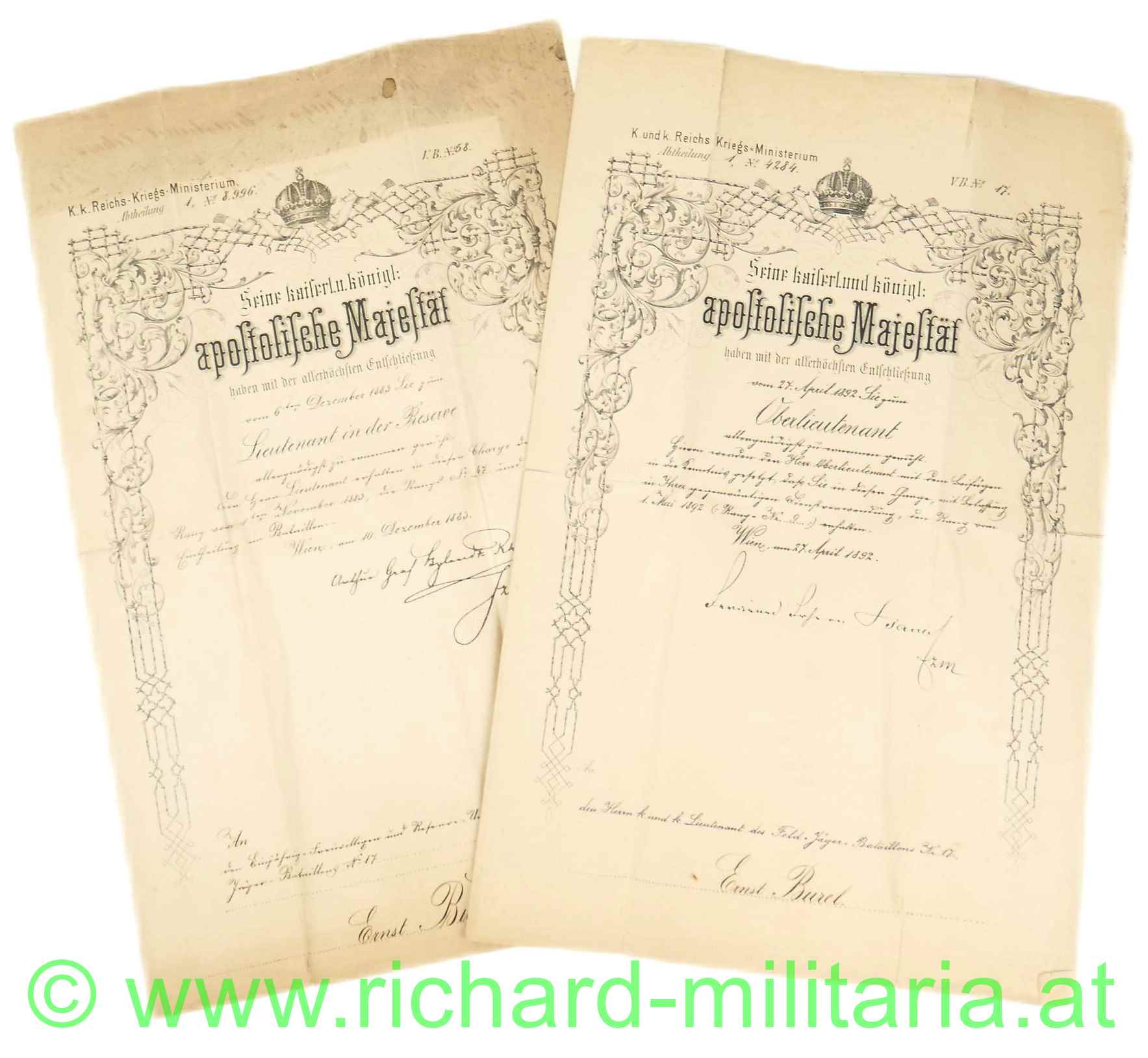 - Oberleutnant beim kk Feld-Jäger-Bataillon Nr. 17