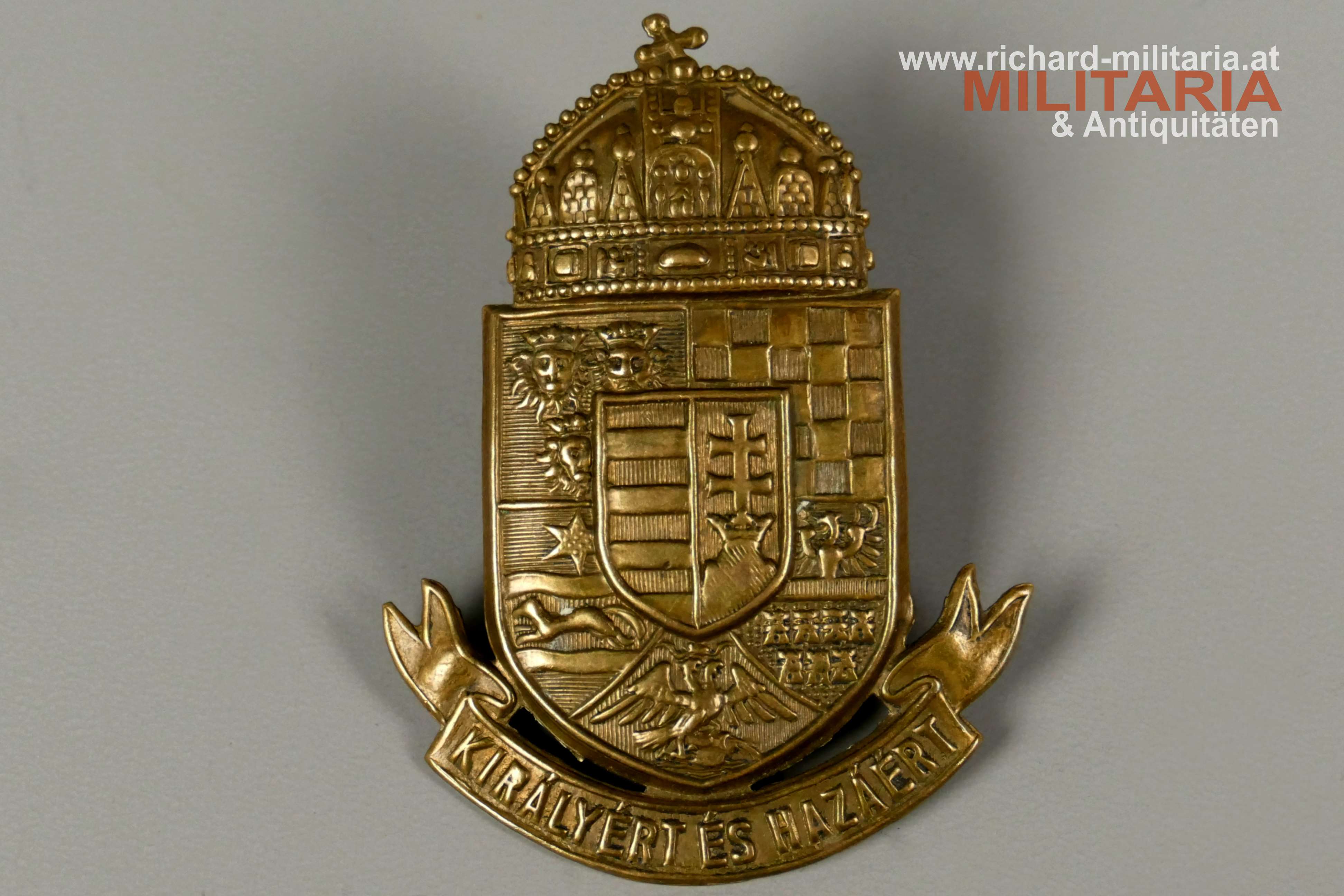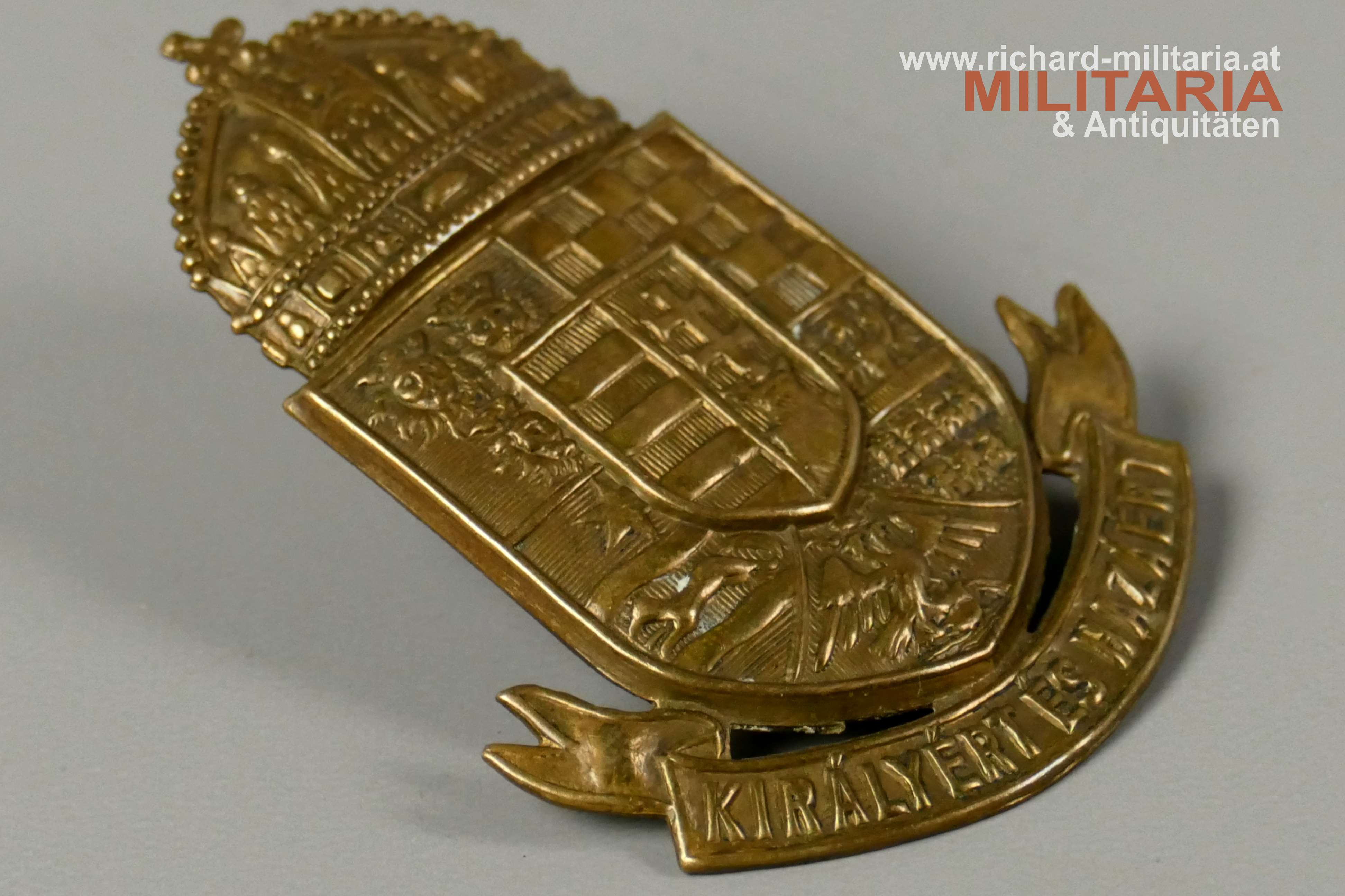 königlich-ungarische Honvèd - Tschakokokarde, Tombak hohl geprägt, auf der Rückseite 2 Befestigungsösen,