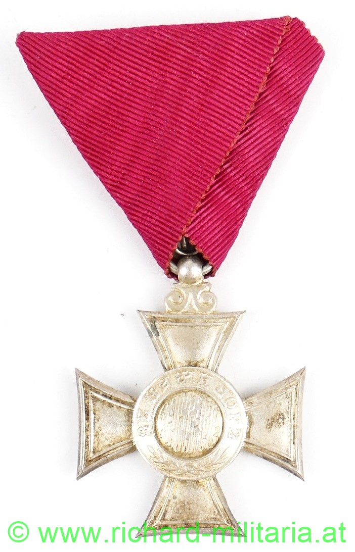 Königreich Bulgarien - St. Alexander Orden, Silbernes Verdienstkreuz; unpunziert, mit originalem Band