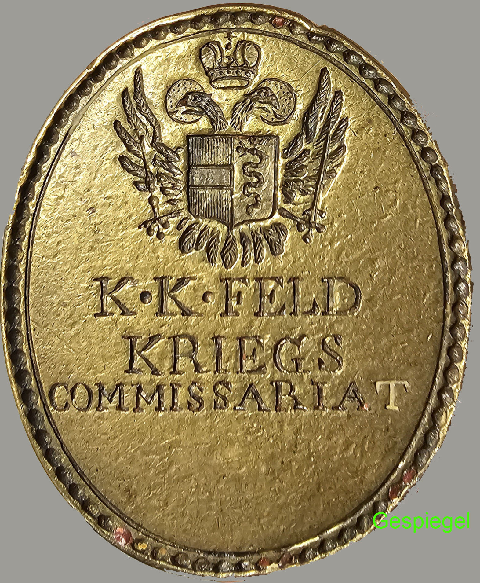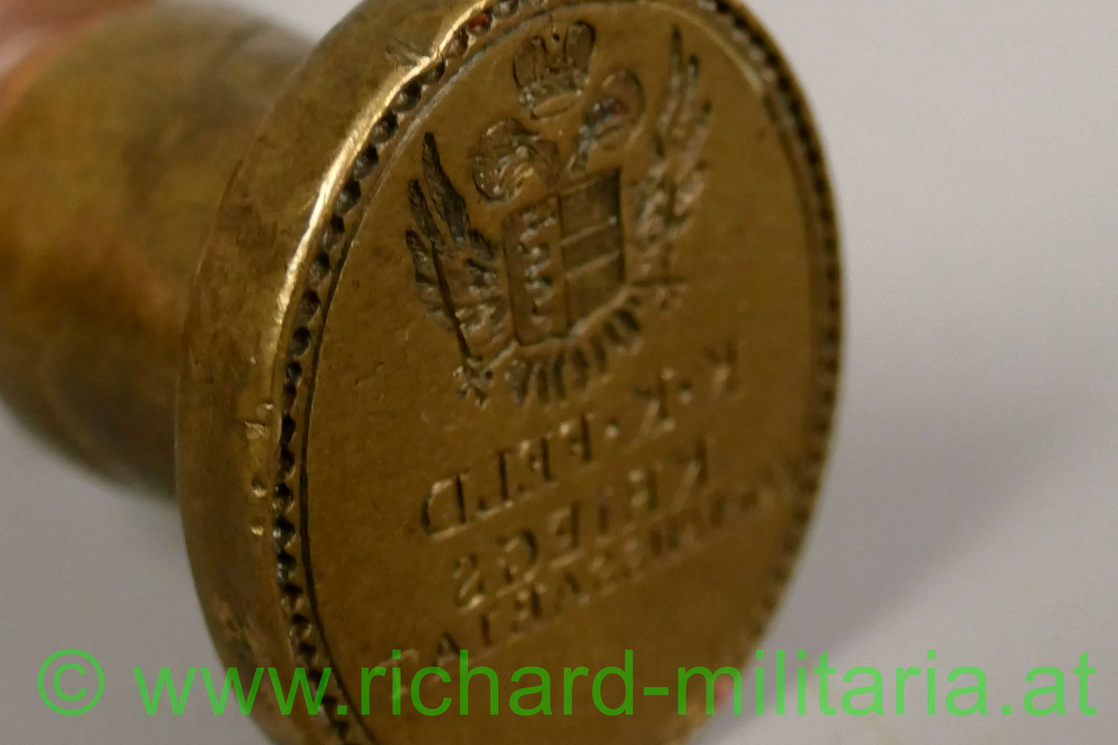 k.k. Feld-Kriegs-Commissariat" (bei den Ansichtsbildern auch eine gespiegelte Darstellung zur leichteren Bestimmung); Höhe: 8,5cm; Maße Stempelfläche: 4 x 3,5cm; SELTEN!