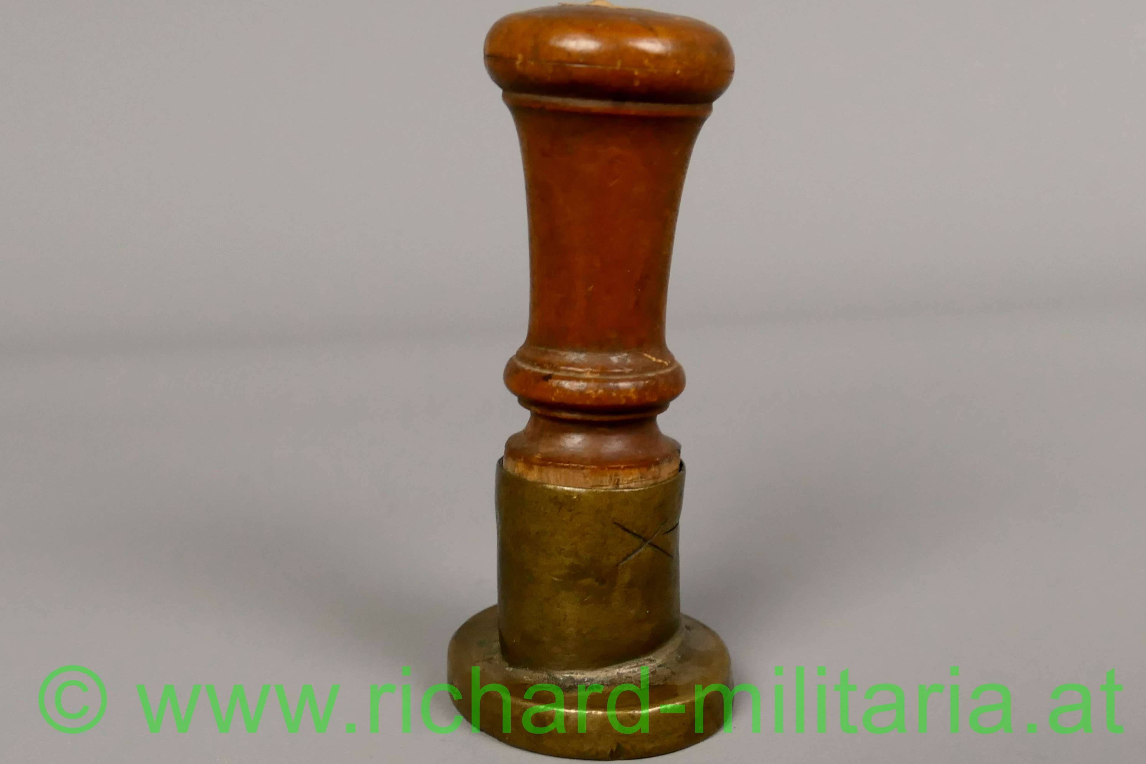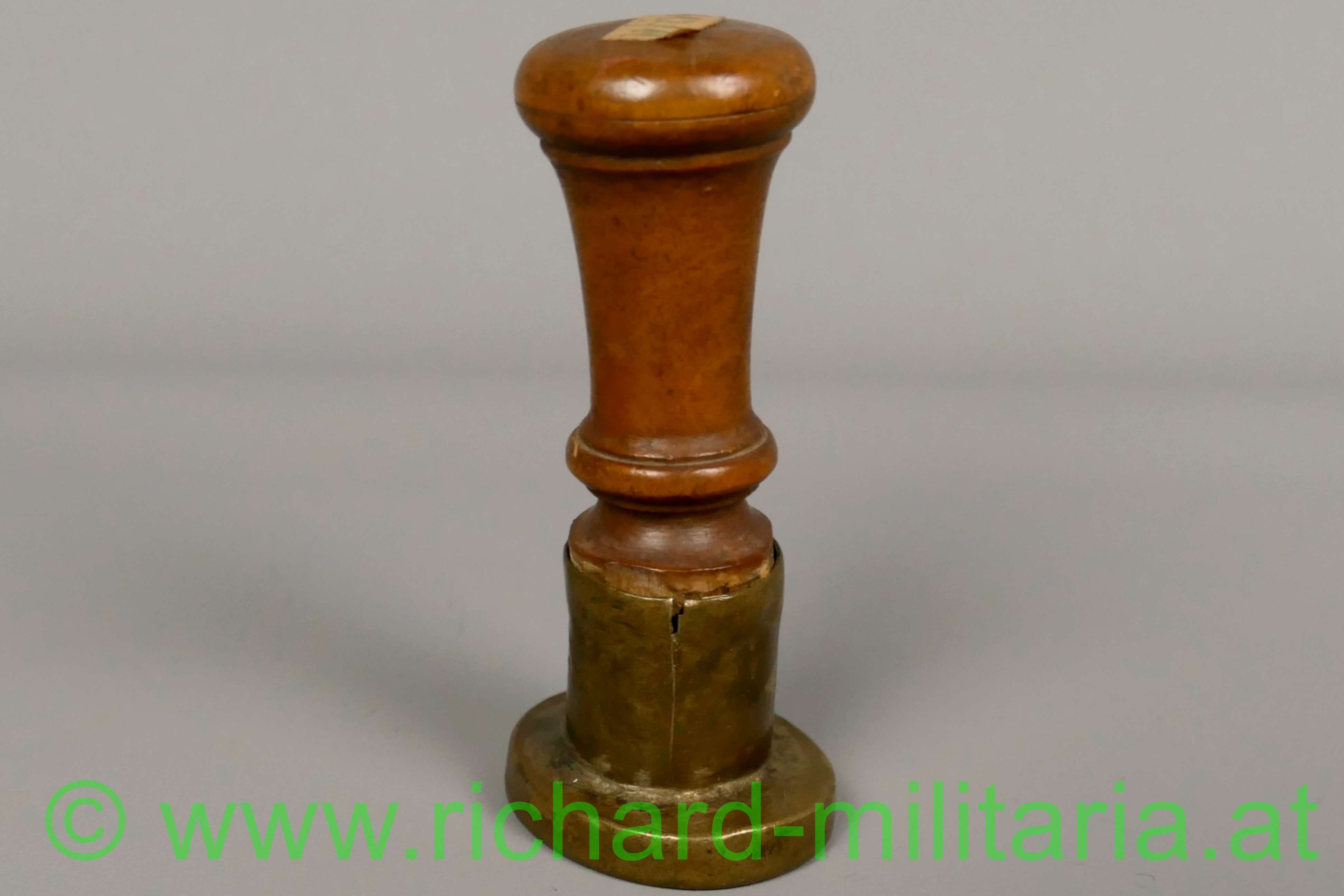 Petschaft "k.k. Feld-Kriegs-Commissariat" aus der Zeit des zum Kaiserreich Österreich gehörenden Königreichs Lombardo-Venetien (1815 - 1859); aus Holz und Messing; Stempel mit bekröntem Doppeladler mit dem Wappenschild der Visconti als Herrscher von Mailand und dem Text "
