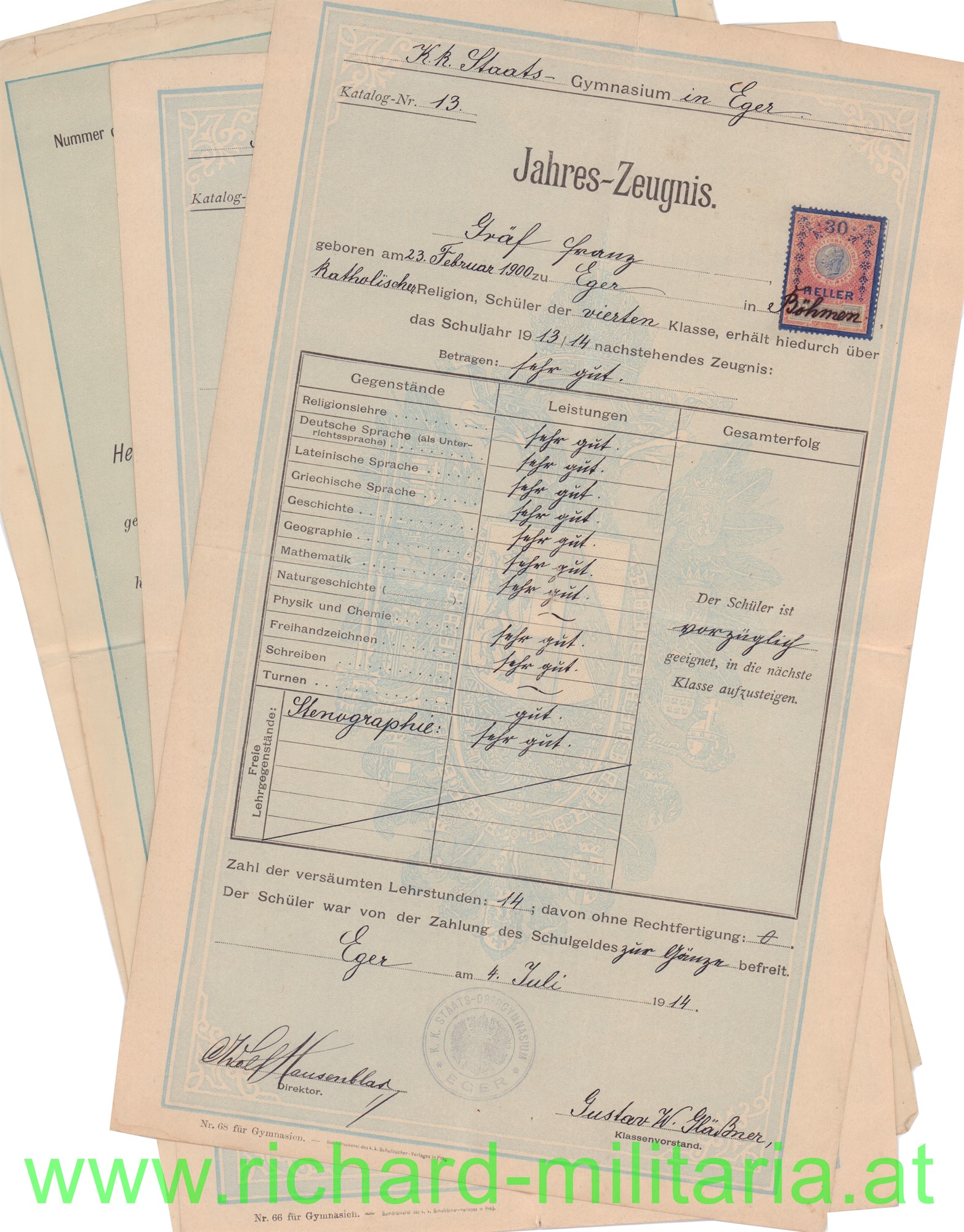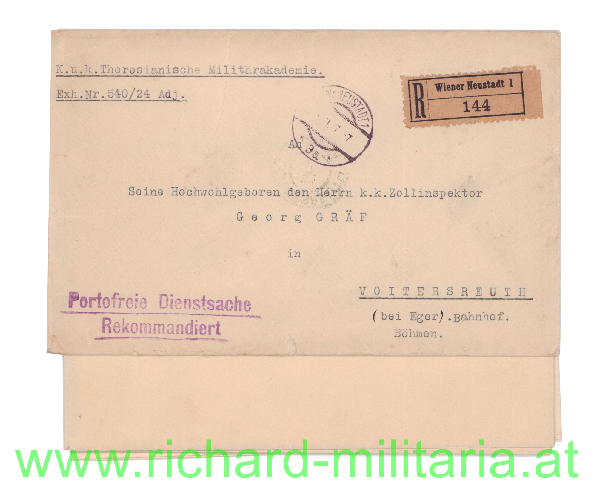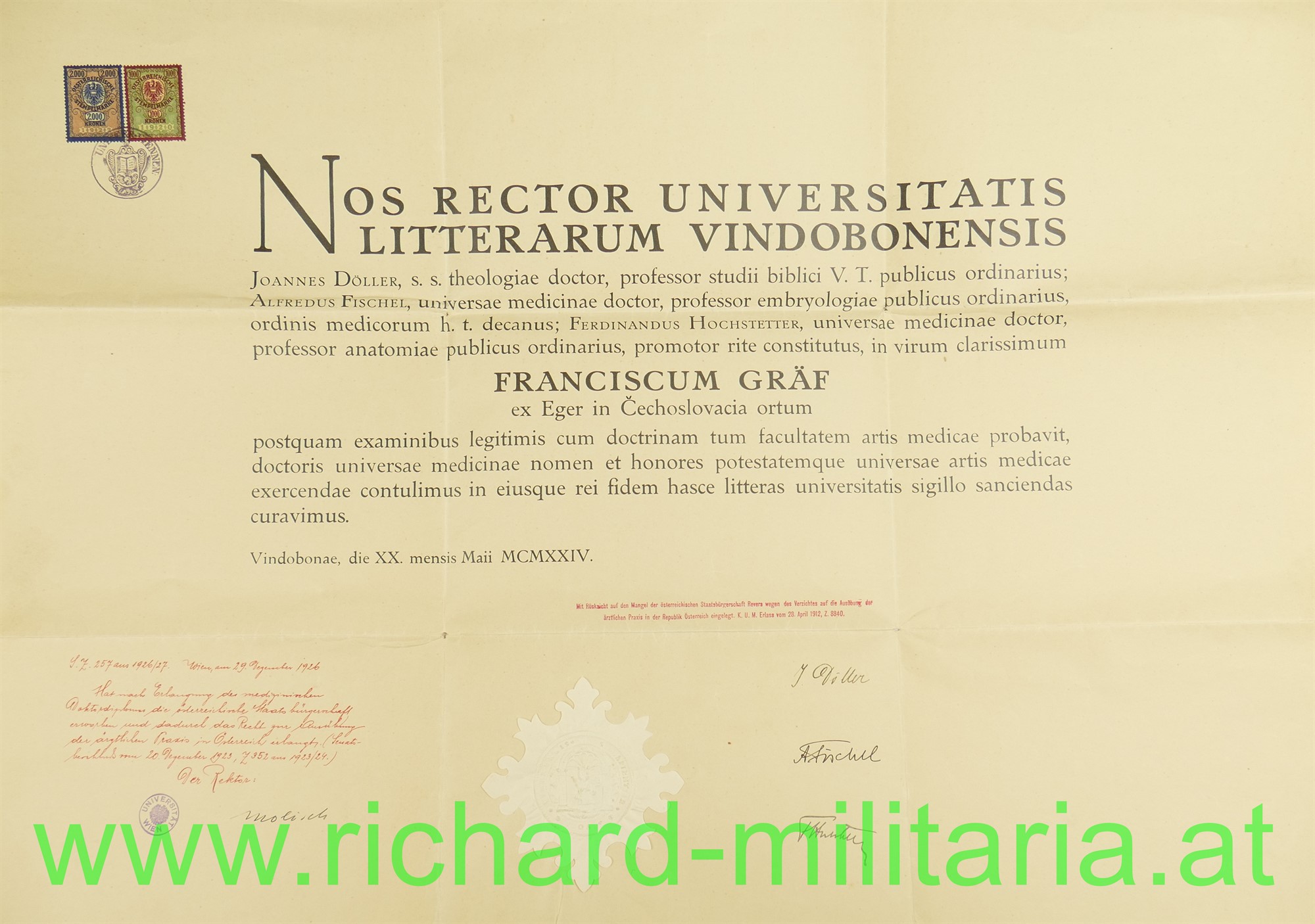 umfangreiches Papierkonvolut des Dr. Franz Gräf; Eger bzw. Tulln; u.a. Eintritt MILAK 1917; k.u.k. Feldartillerie-Regt. 19; Aufnahmebescheinigung für die Universität Wien, Schriftverkehr, Fotos -