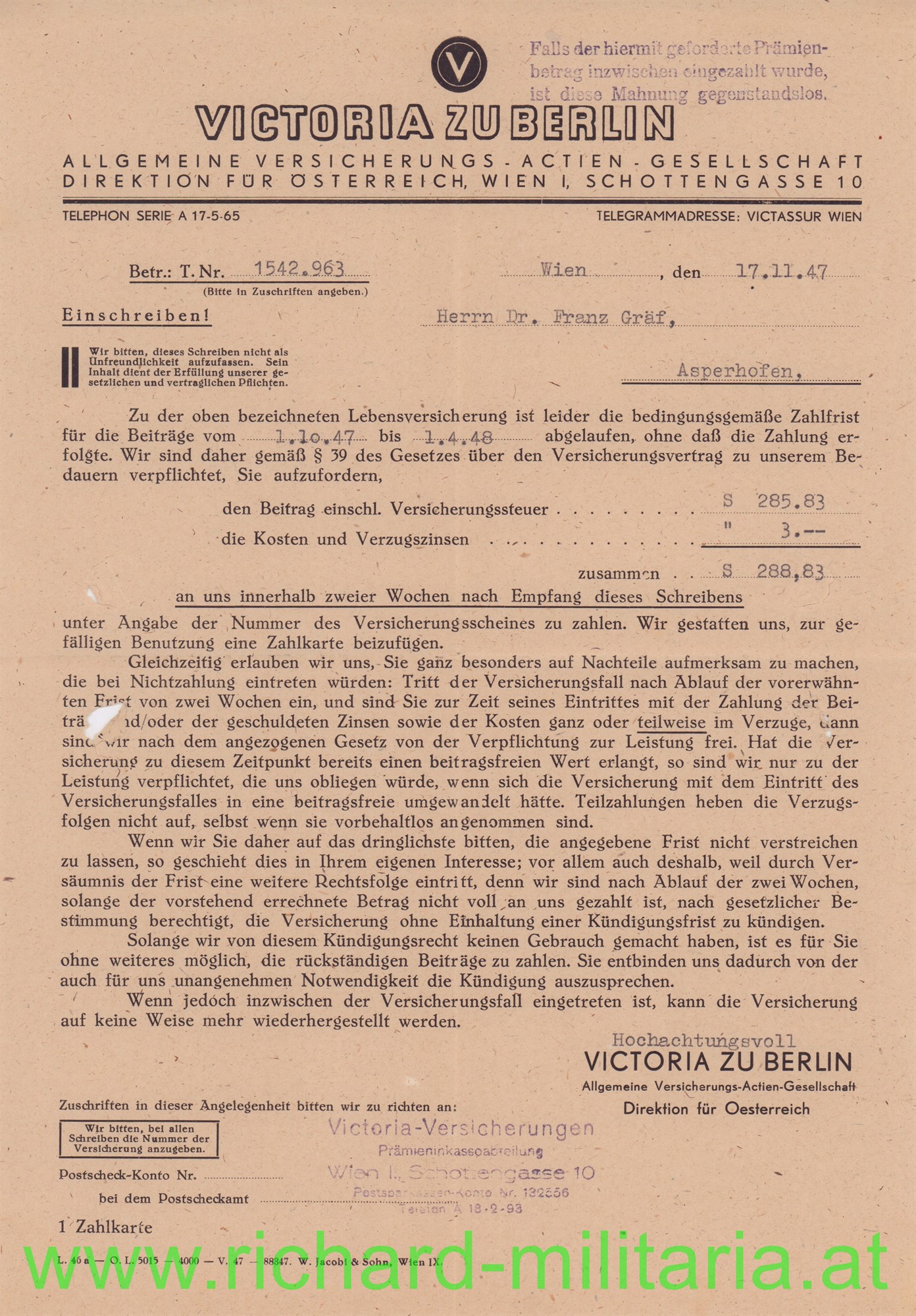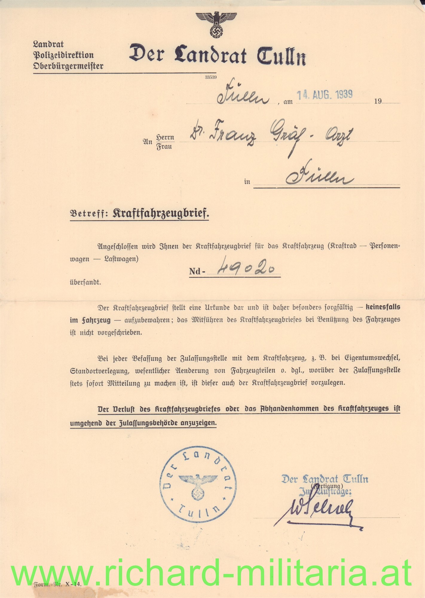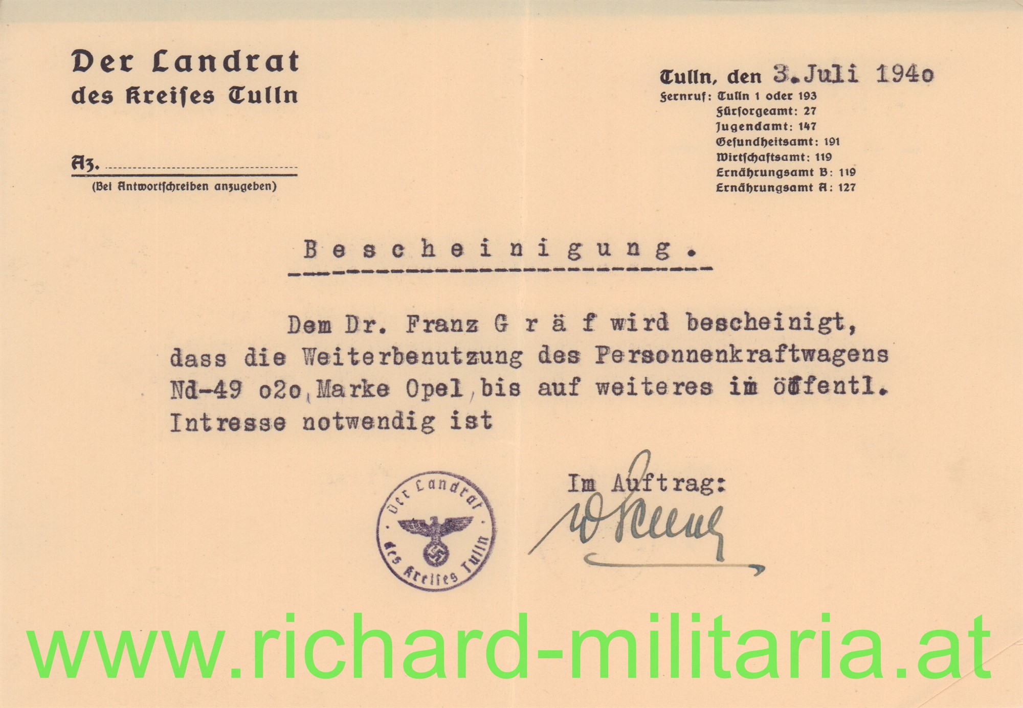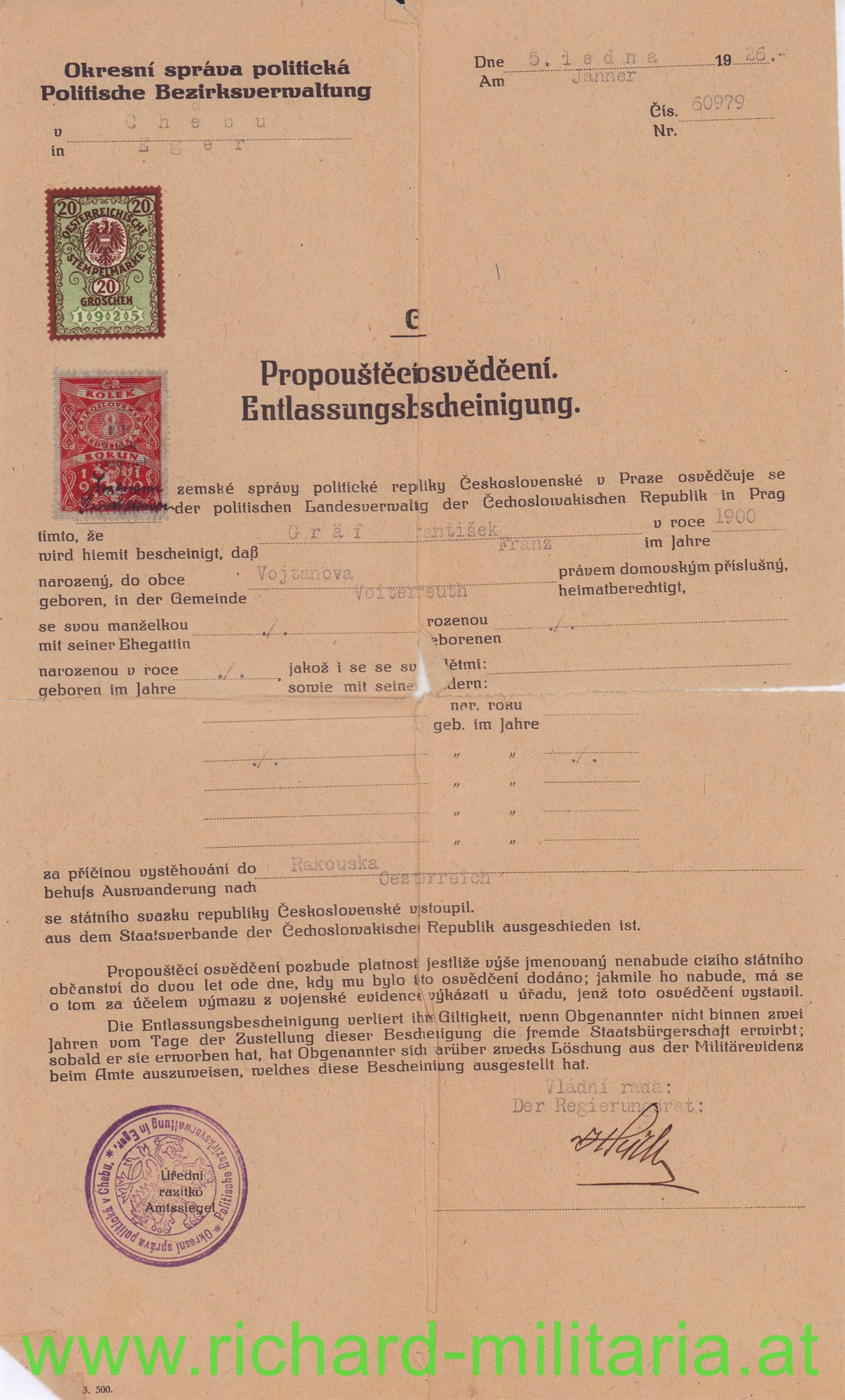umfangreiches Papierkonvolut des Dr. Franz Gräf; Eger bzw. Tulln; u.a. Eintritt MILAK 1917; k.u.k. Feldartillerie-Regt. 19; Aufnahmebescheinigung für die Universität Wien, Schriftverkehr, Fotos -
