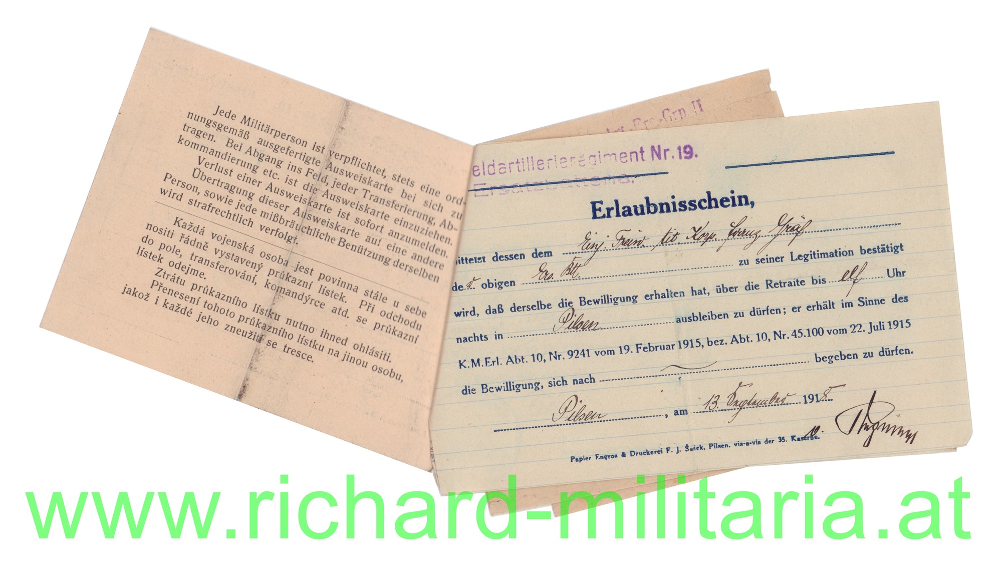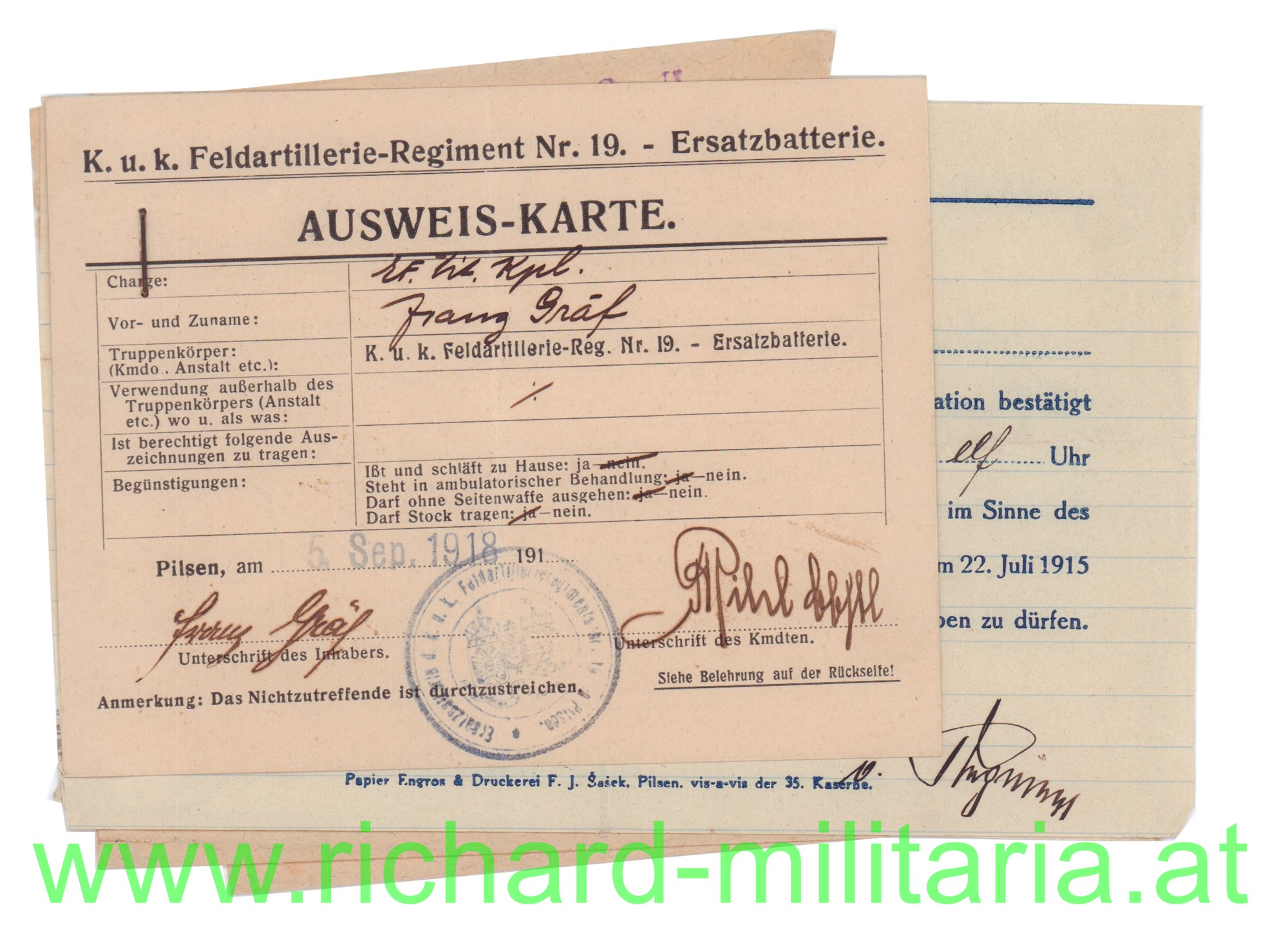 Produktinformationen "Konvolut - Dr. Franz Gräf - MILAK 1917 / Feldart.Rgt. 19"